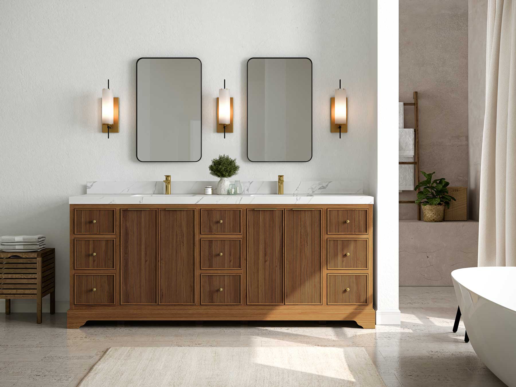 1. Classic Reeded Design: this bathroom vanity with brass hardware is a masterpiece of classic design, featuring an exquisite reeded pattern that adds a touch of sophistication to your bathroom decor. Its timeless aesthetics make it a standout piece in any interior.