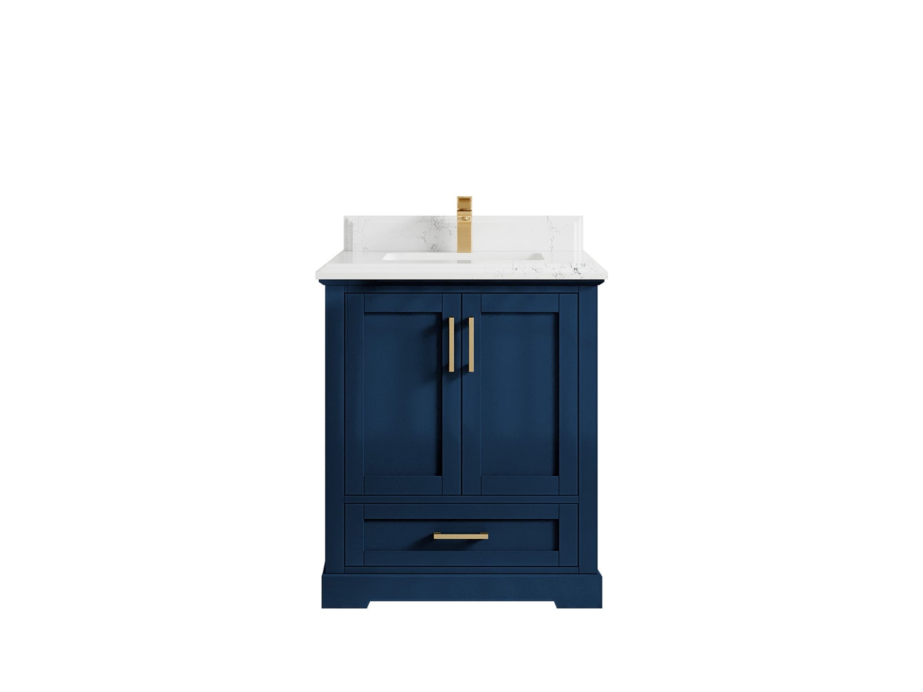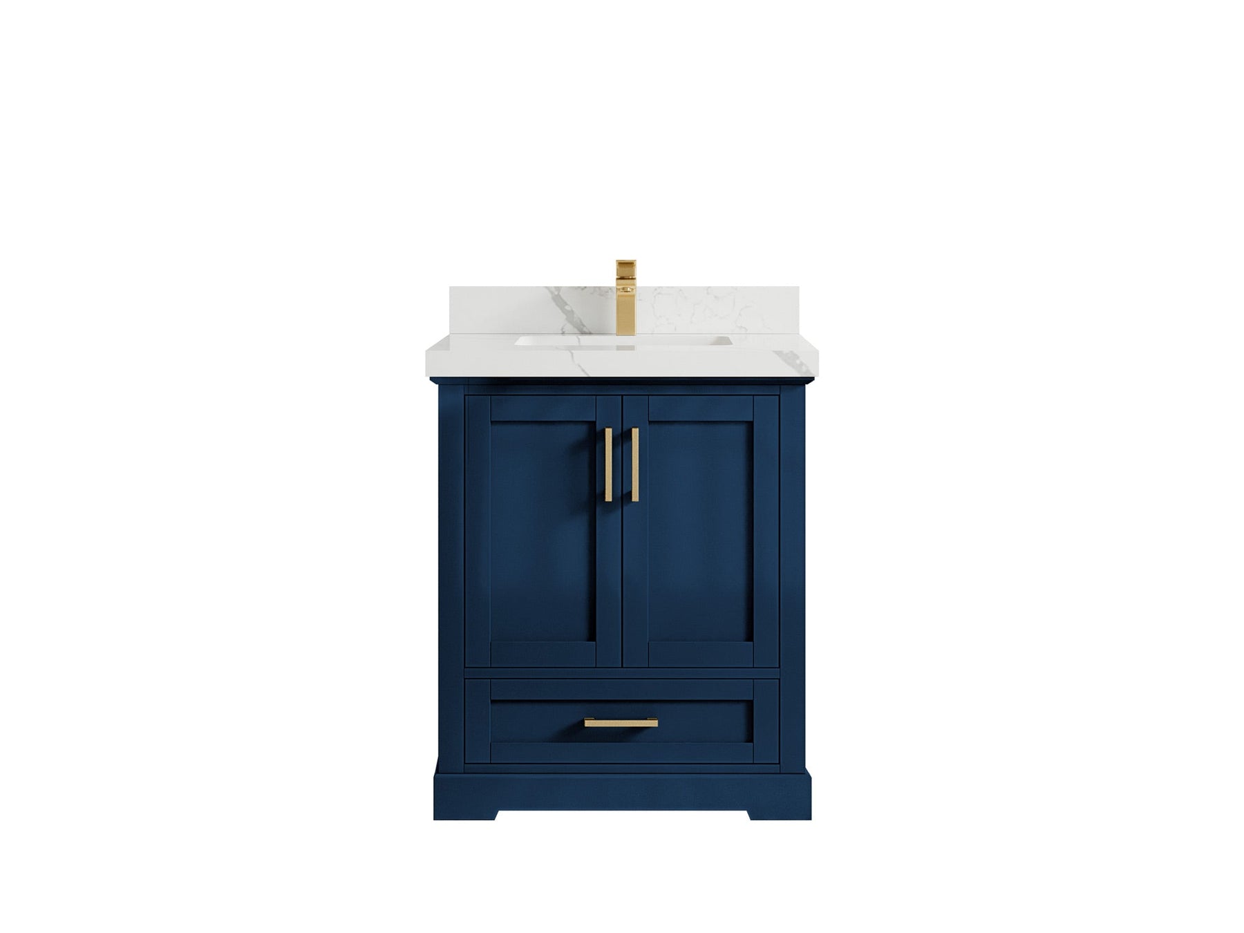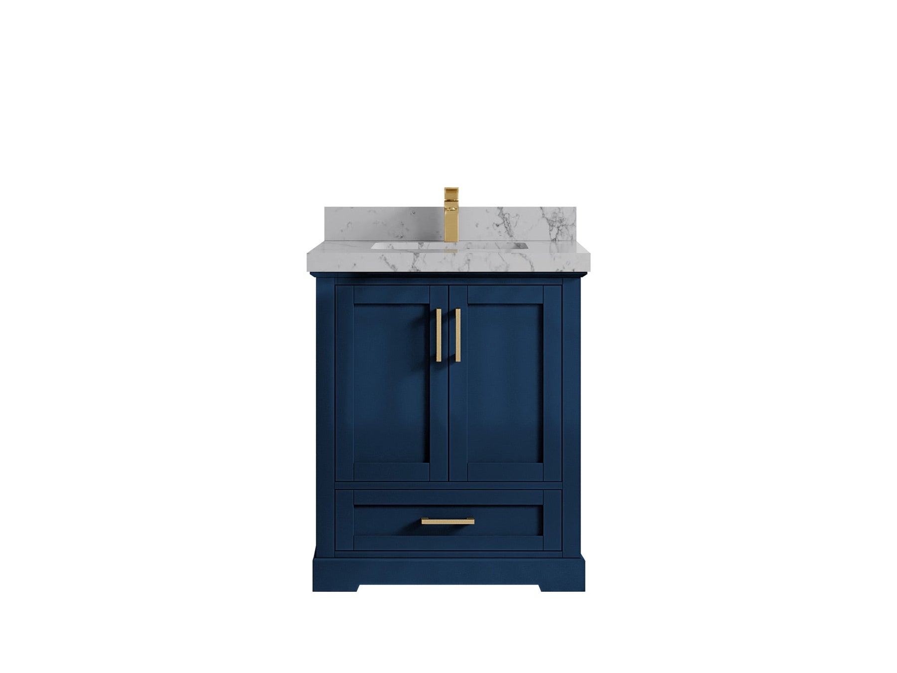 Boston 30 in. W x 22 in. D Single Sink Bathroom Vanity in Navy Blue with 2 in Calacatta Gold Quartz Countertop - Top View
