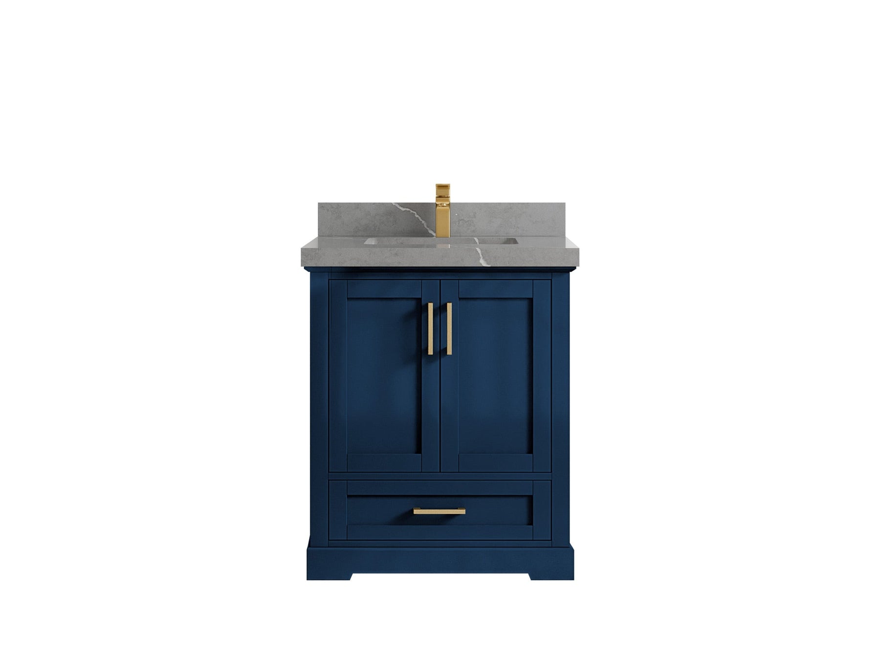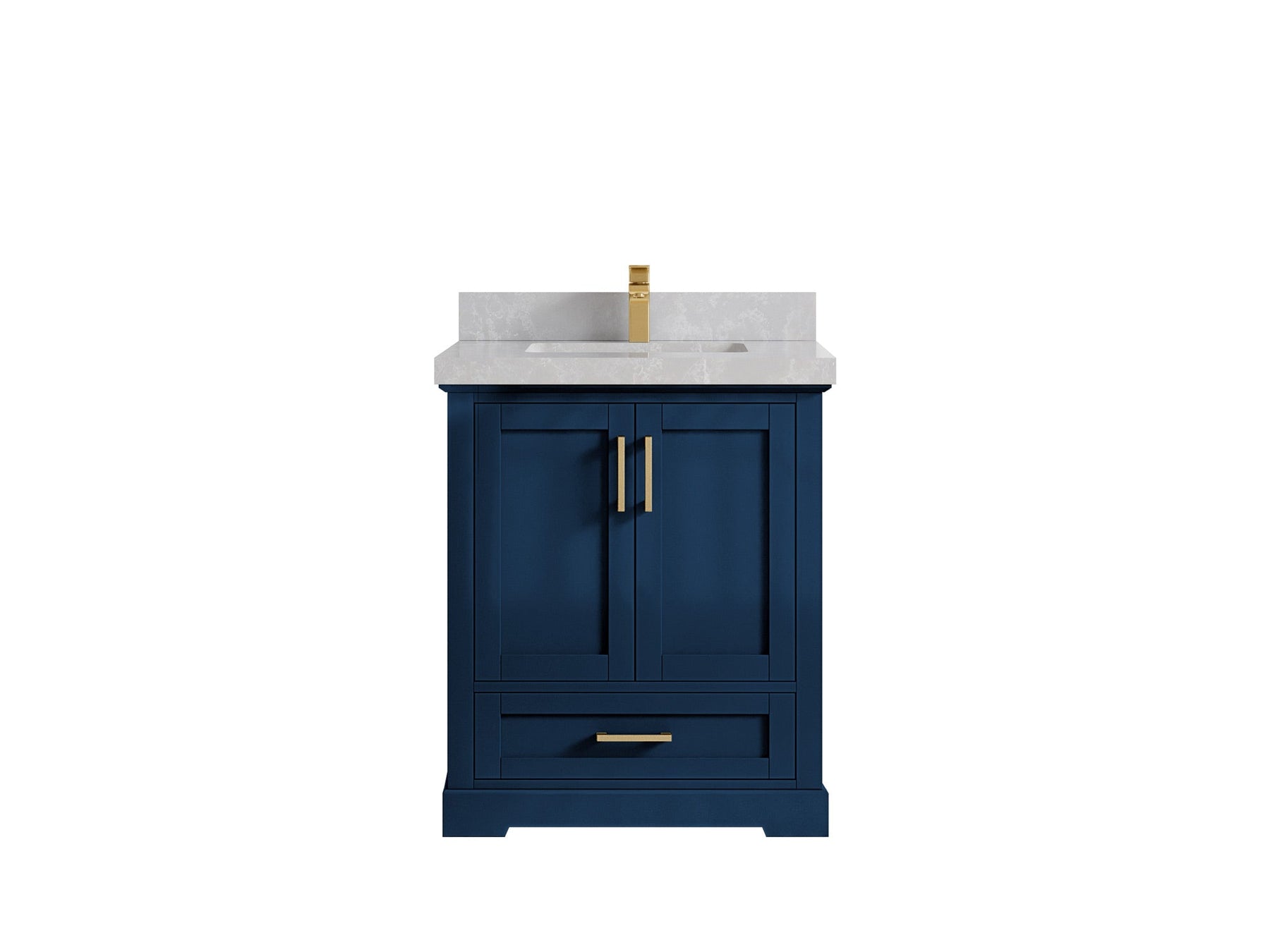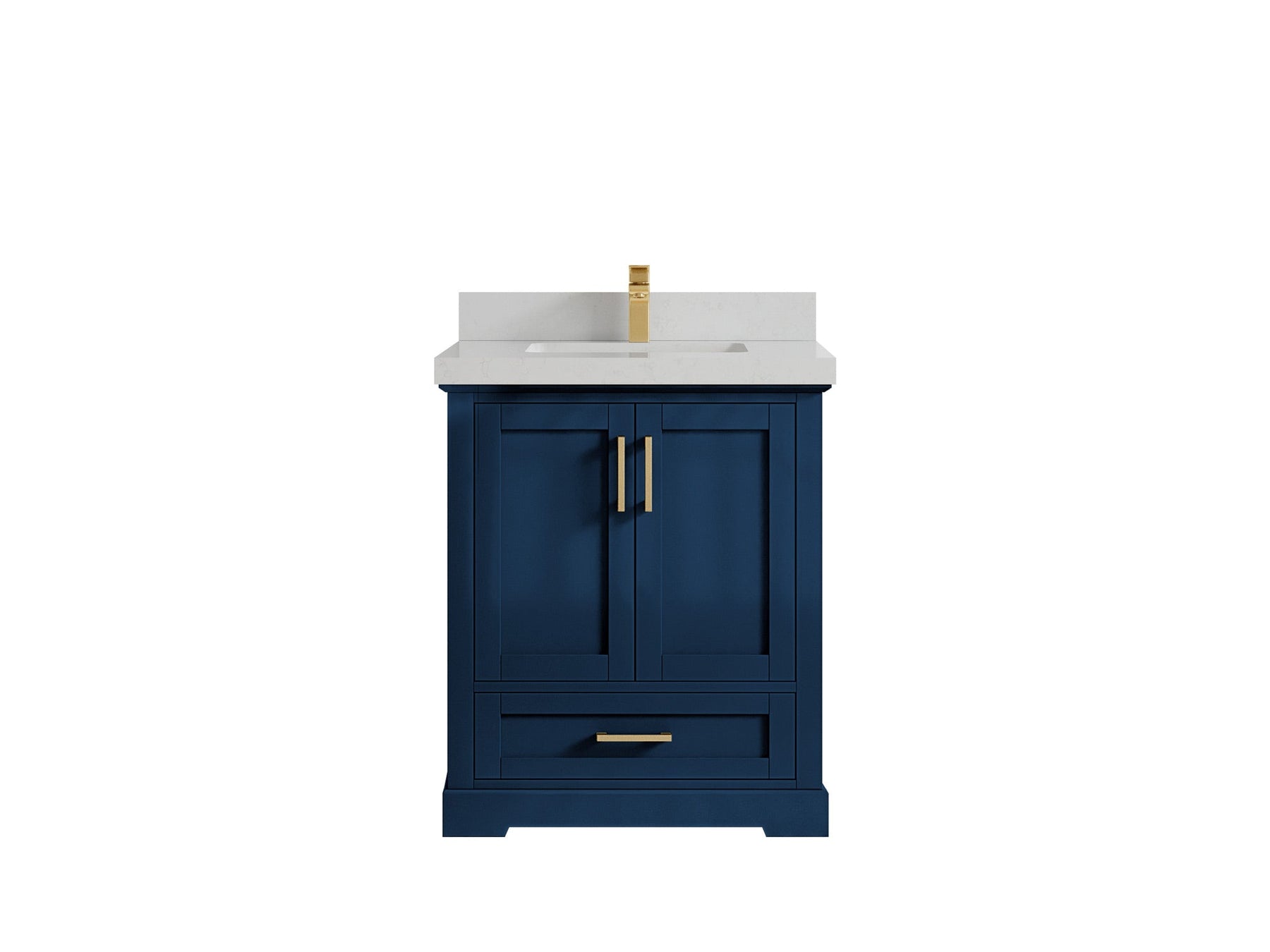 Boston 30 in. W x 22 in. D Single Sink Bathroom Vanity in Navy Blue with 2 in Calacatta Gold Quartz Countertop - Top View