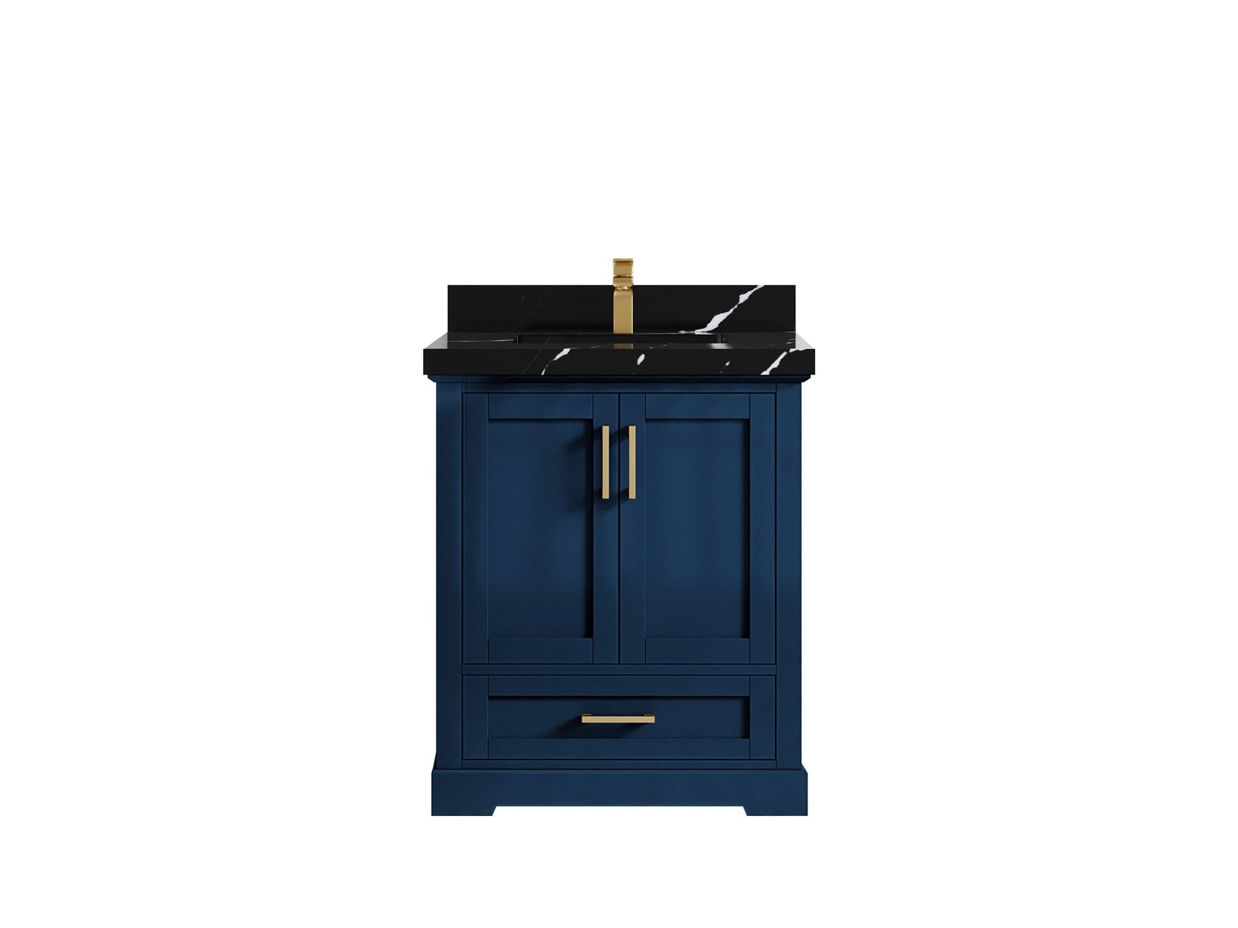 Boston 30 in. W x 22 in. D Single Sink Bathroom Vanity in Navy Blue with 2 in Calacatta Black Quartz Countertop - Top View