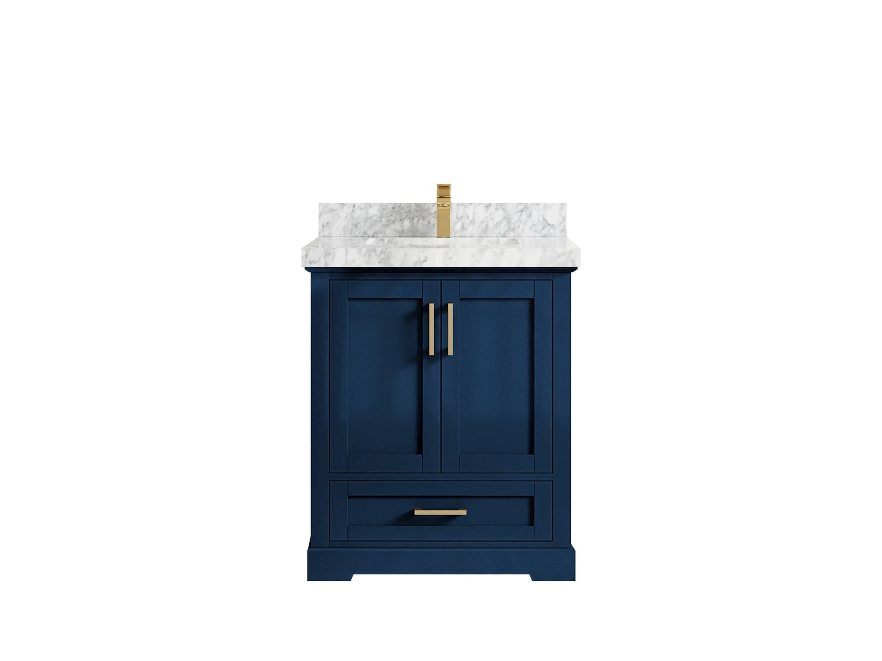 Boston 30 in. W x 22 in. D Single Sink Bathroom Vanity in Navy Blue with 2 in Carrara Marble Countertop - Top View