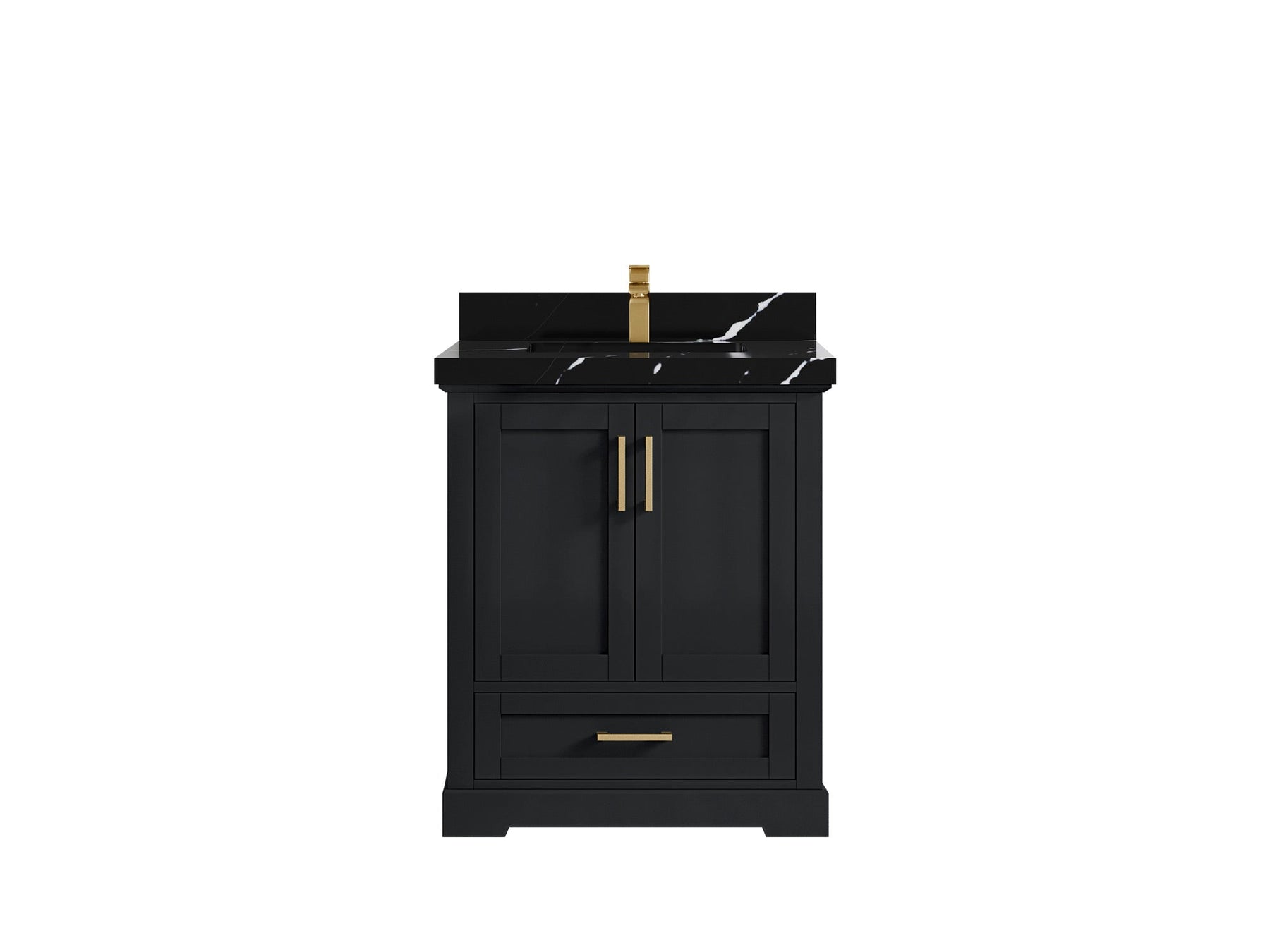 Boston 30 in. W x 22 in. D Single Sink Bathroom Vanity in Wrought Iron with 2 in Calacatta Black Quartz Countertop - Top View