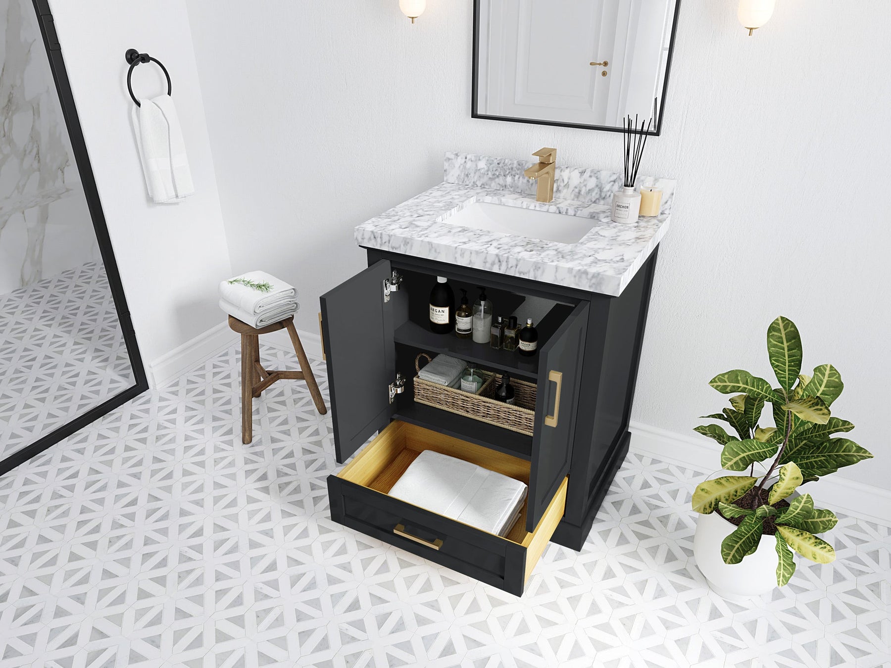 Bathroom Vanity - Frosty Carrara Quartz Countertop
