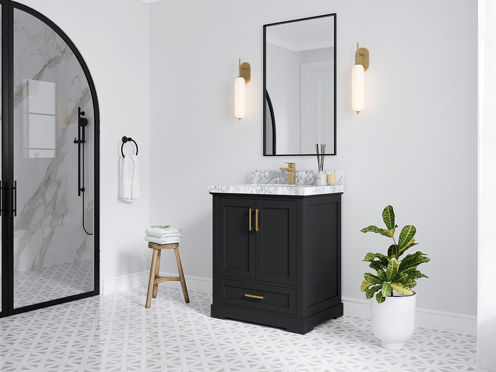 Boston 30 in. W x 22 in. D Single Sink Bathroom Vanity in Wrought Iron with 2 in Carrara Marble Countertop - Top View