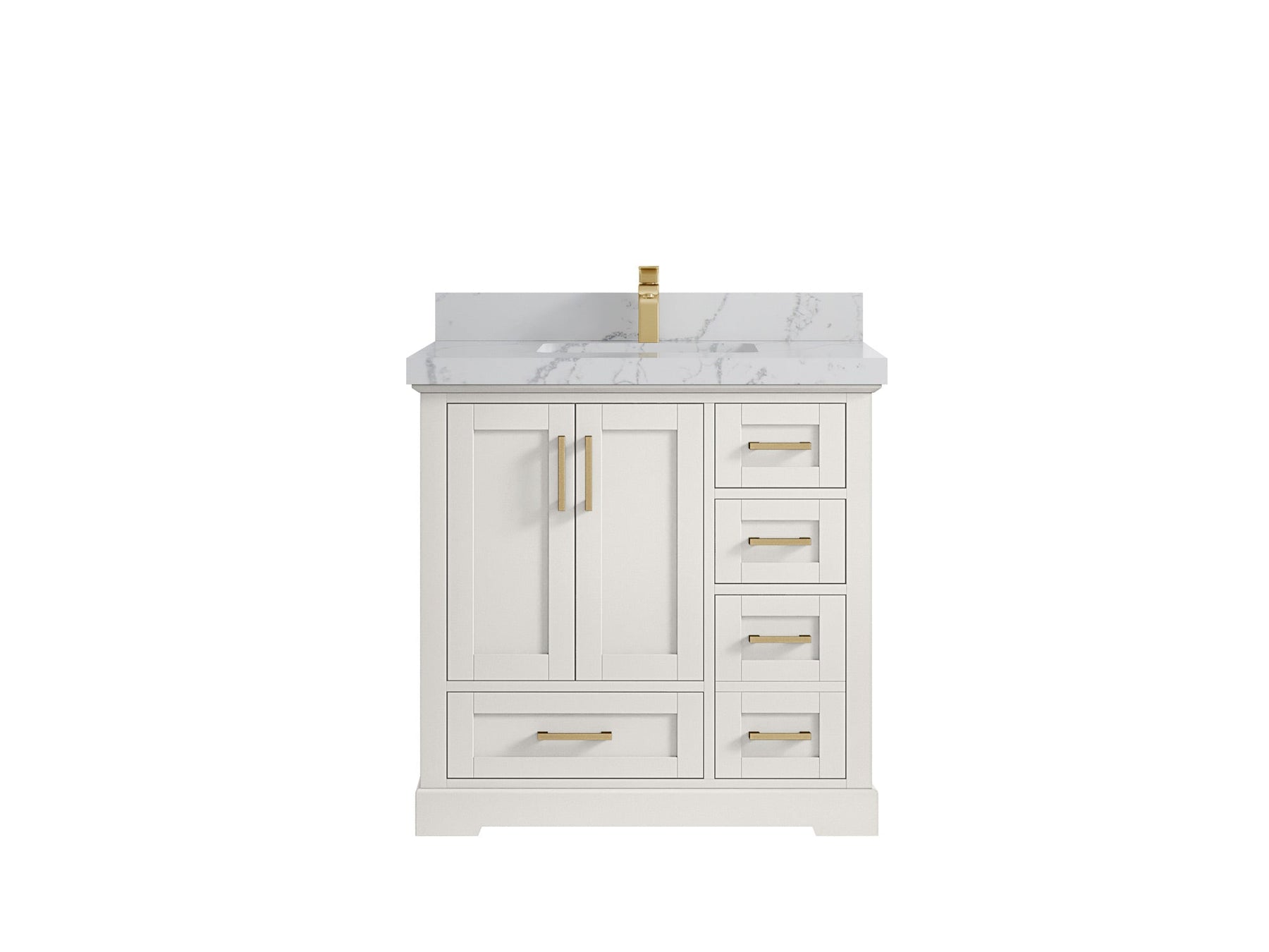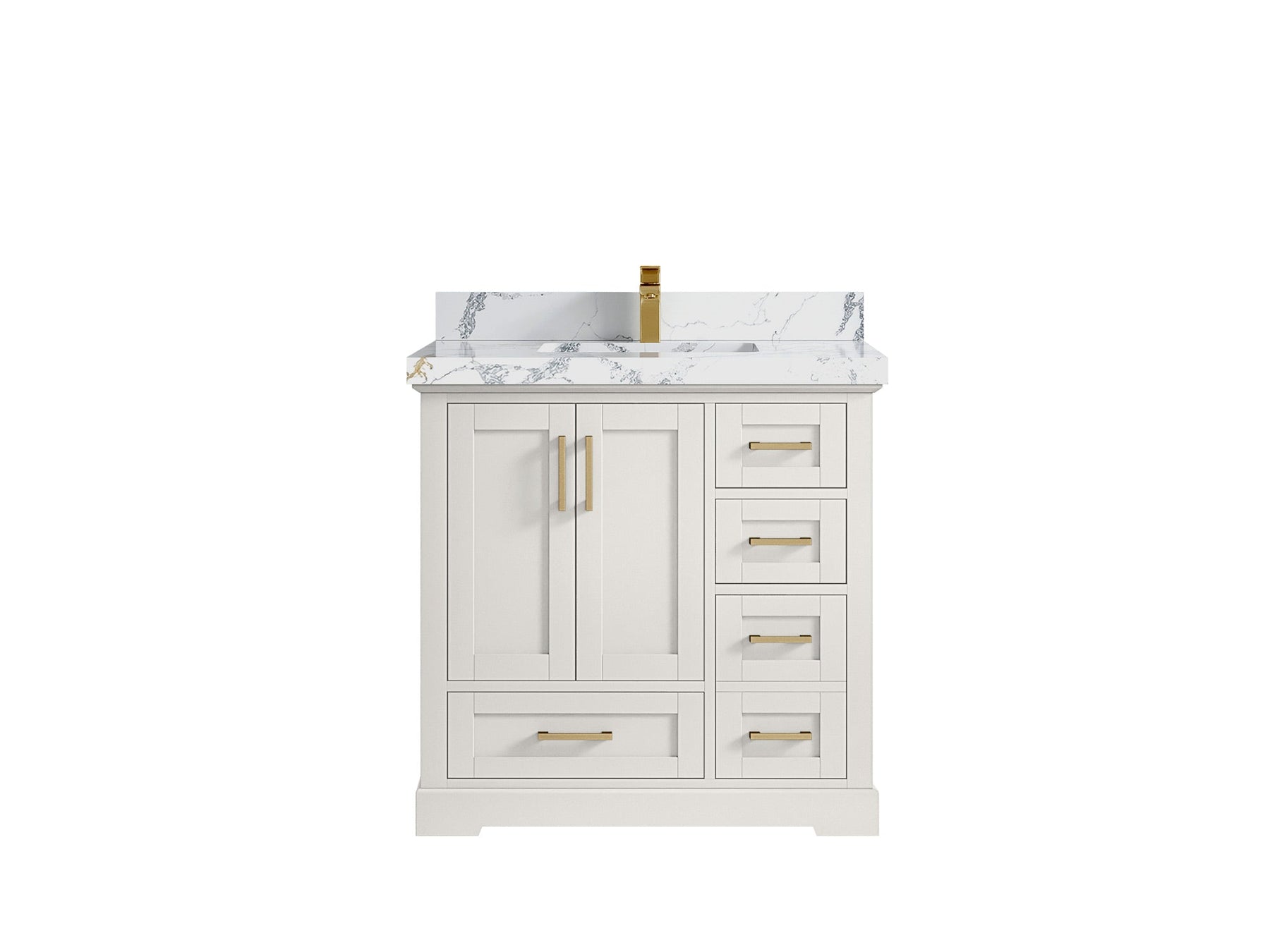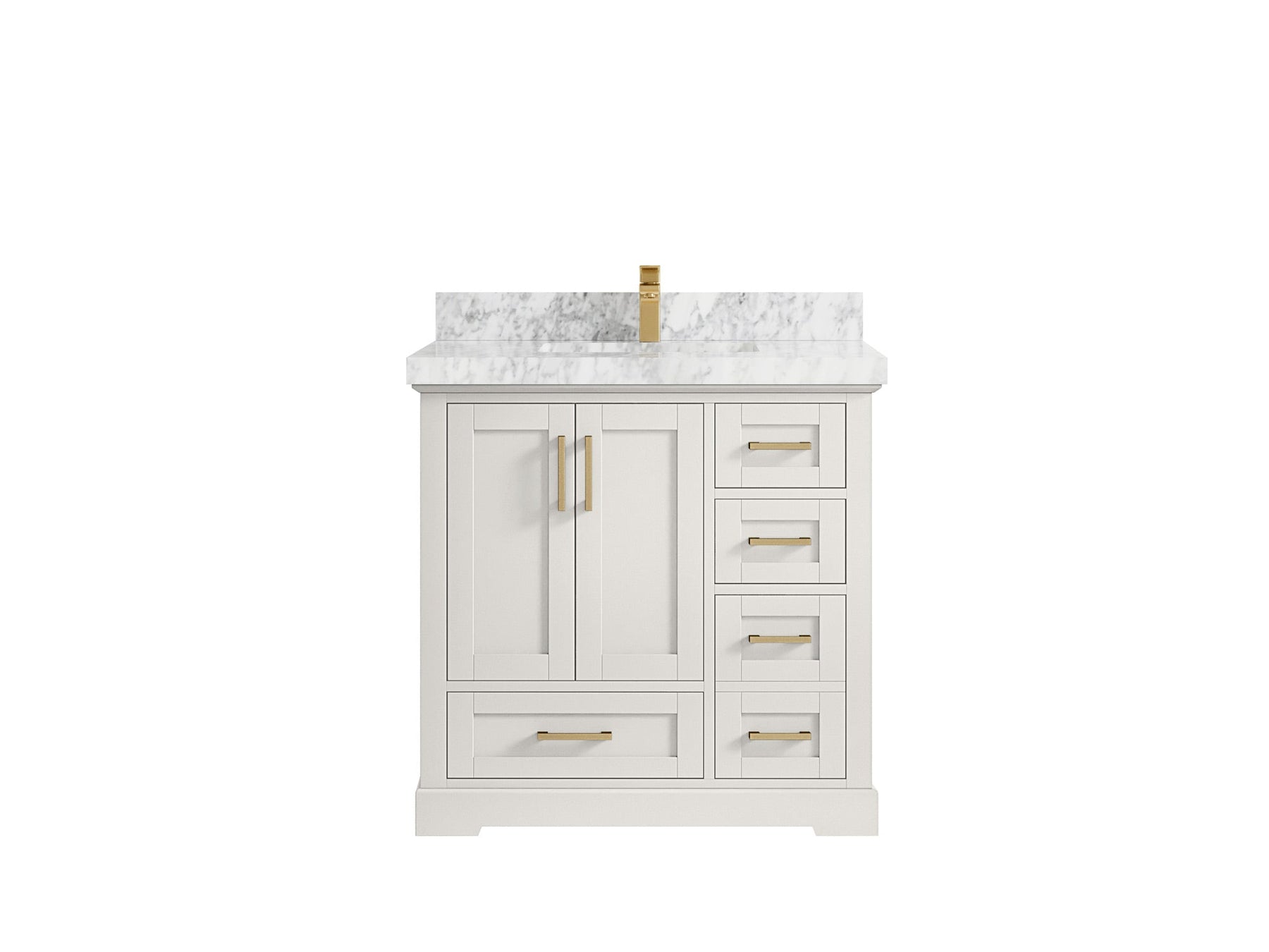 Faucet Hole(S): Comes with Single Faucet, 8 (in.) Widespread Faucet, Wall mount Faucets - Only Available for White Quartz and Carrara Quartz. (PLEASE ADD THIS CONFIGURATION UNDER COUNTERTOPS SECTION )