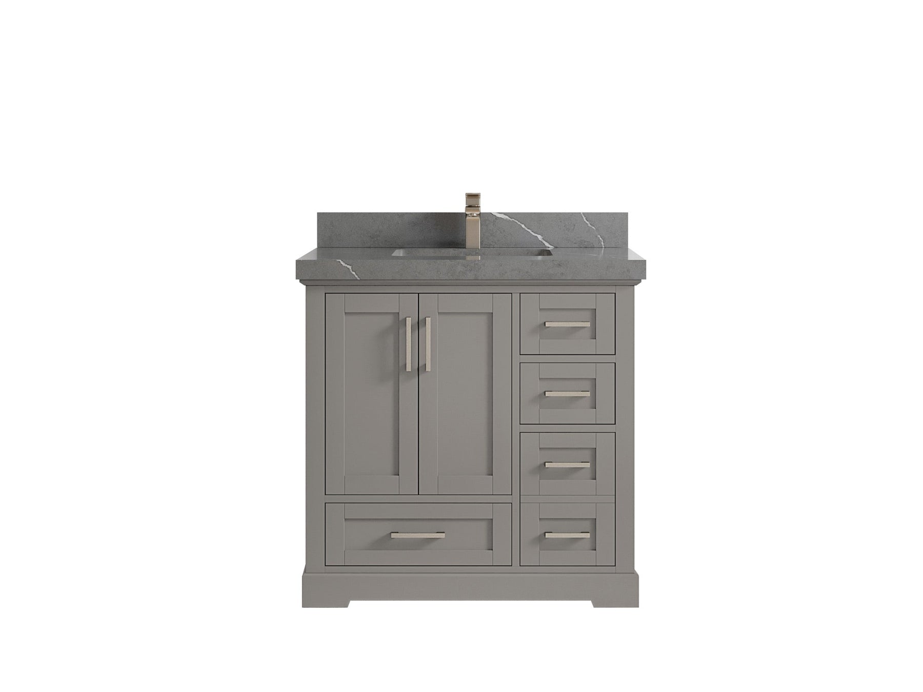 Boston 36 in. W x 22 in. D Single Sink Bathroom Vanity in Elephant Skin Gray with Countertop - Dimensions