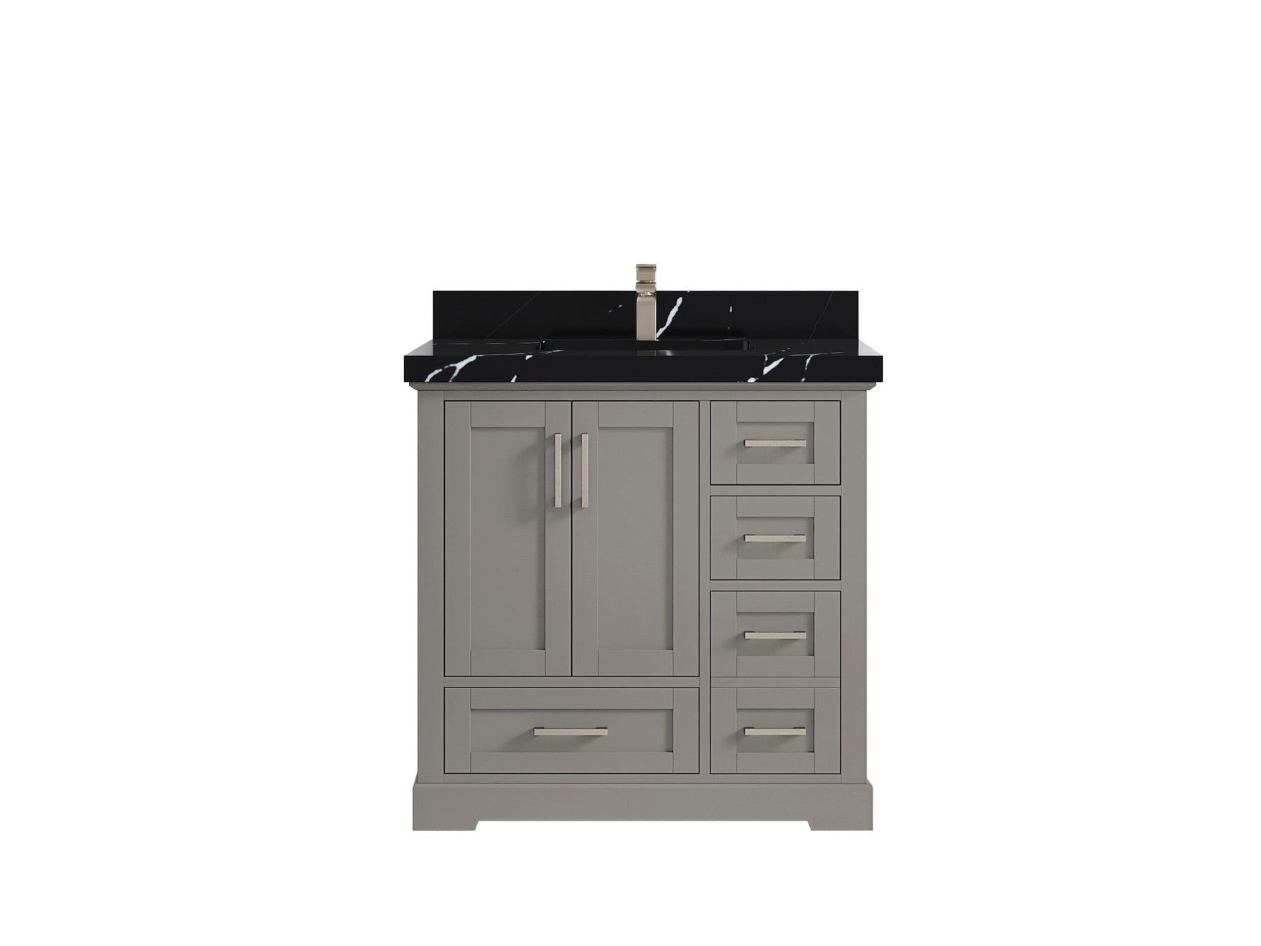 Boston 36 in. W x 22 in. D Single Sink Bathroom Vanity in Elephant Skin Gray with 2 in Calacatta Black Quartz Countertop - Top View