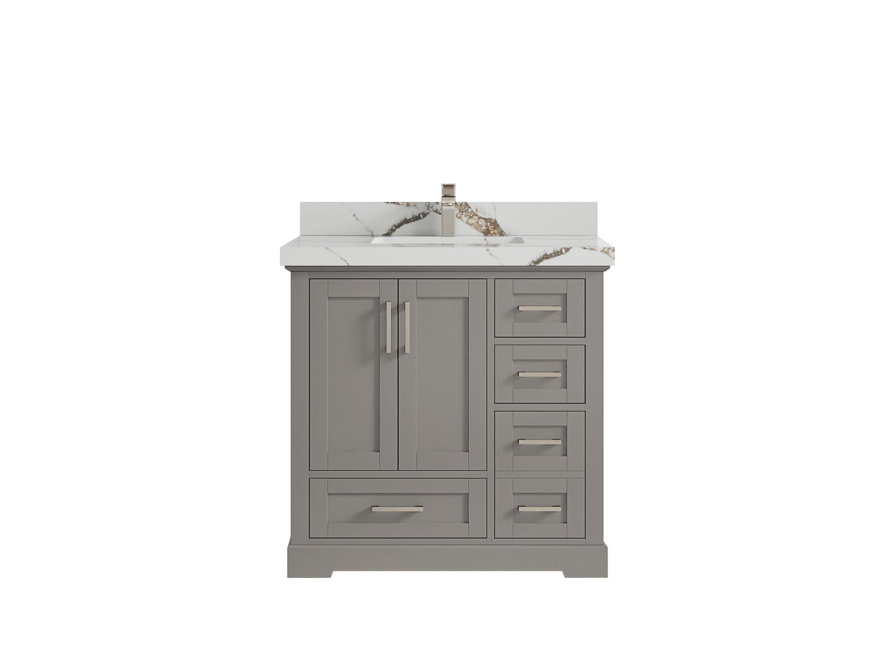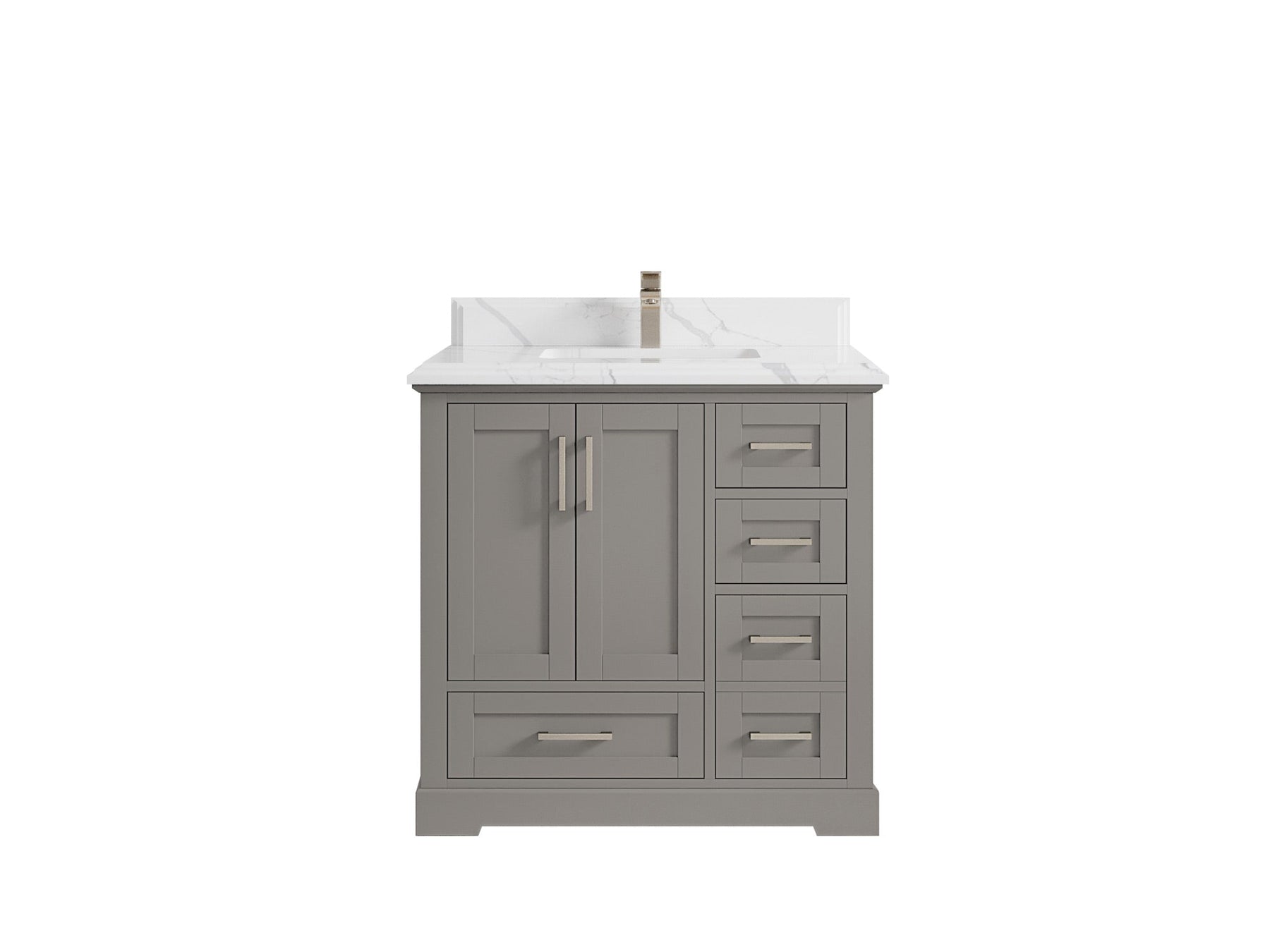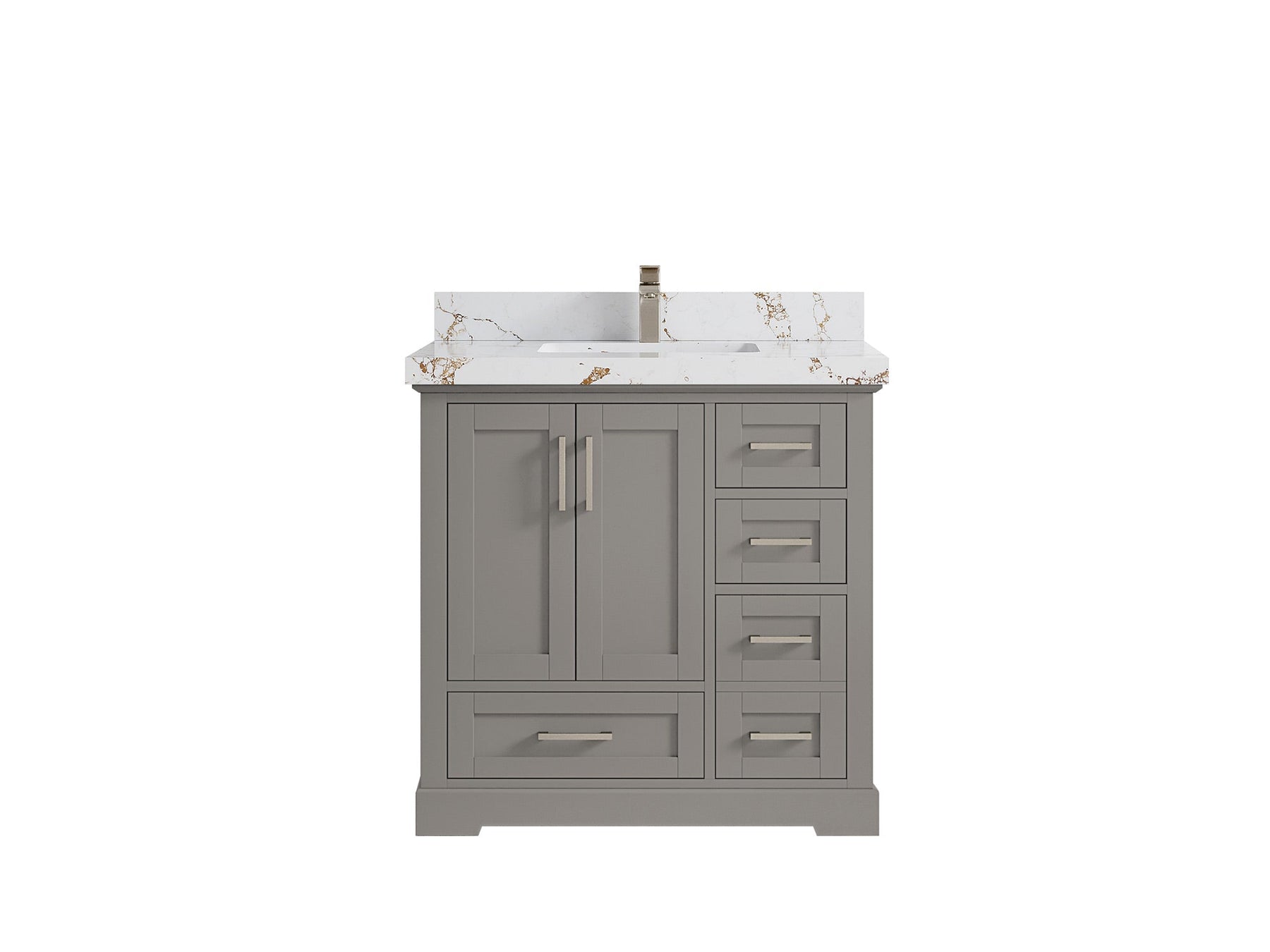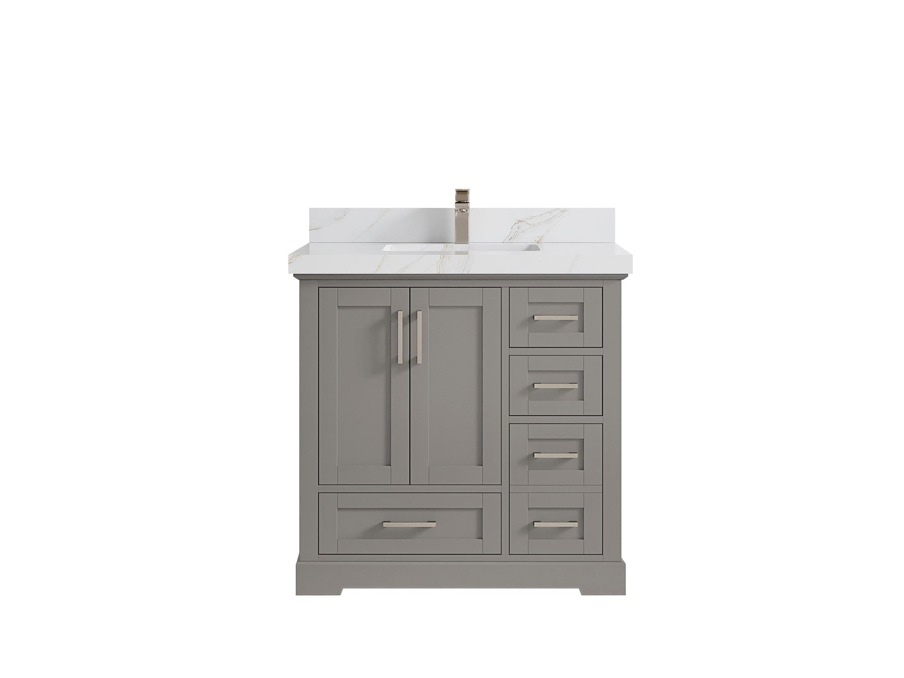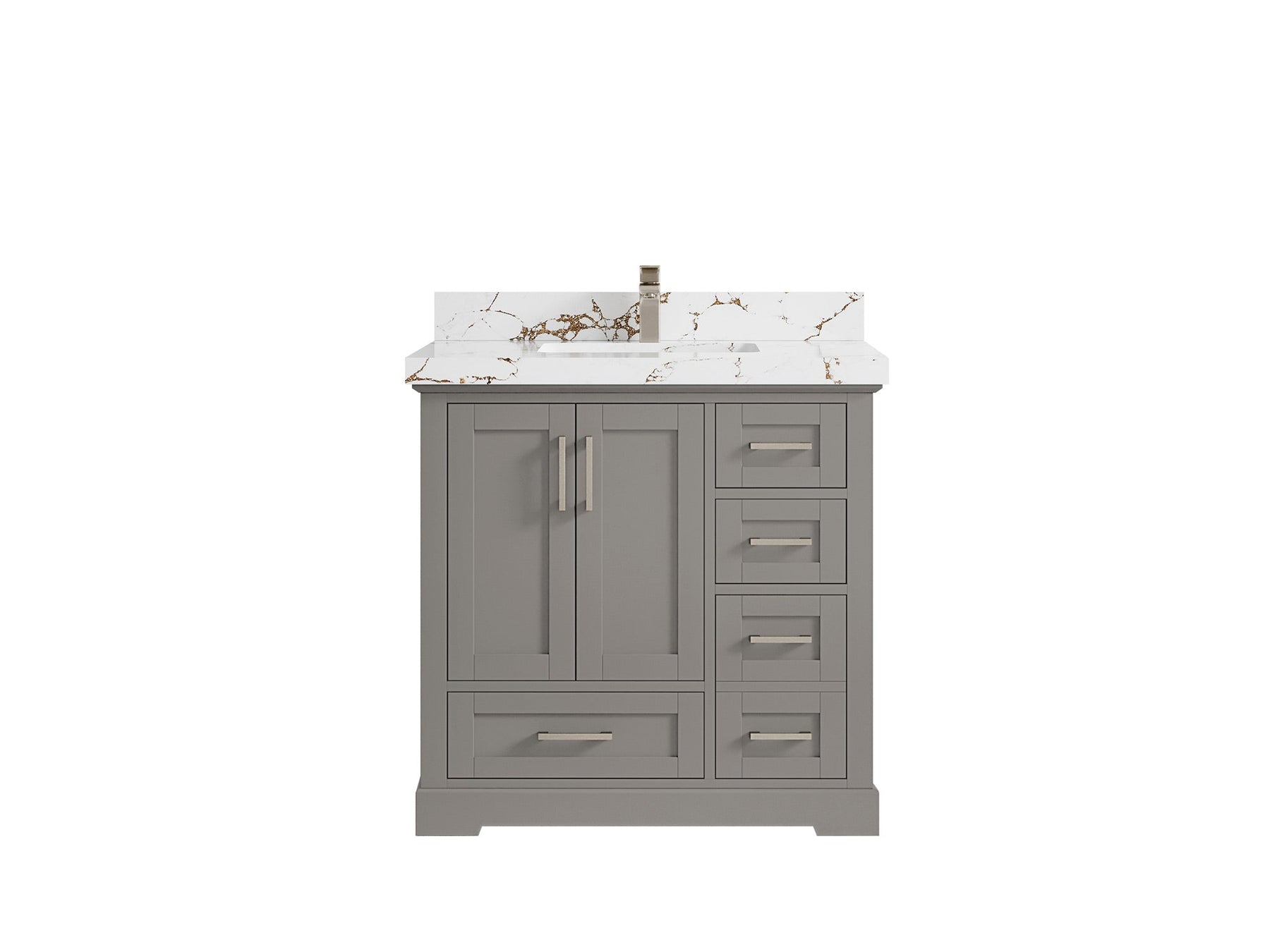 Boston 36 in. W x 22 in. D Single Sink Bathroom Vanity in Elephant Skin Gray with 1.5 in Double Cove Edge Calacatta Laza Quartz Countertop - Top View
