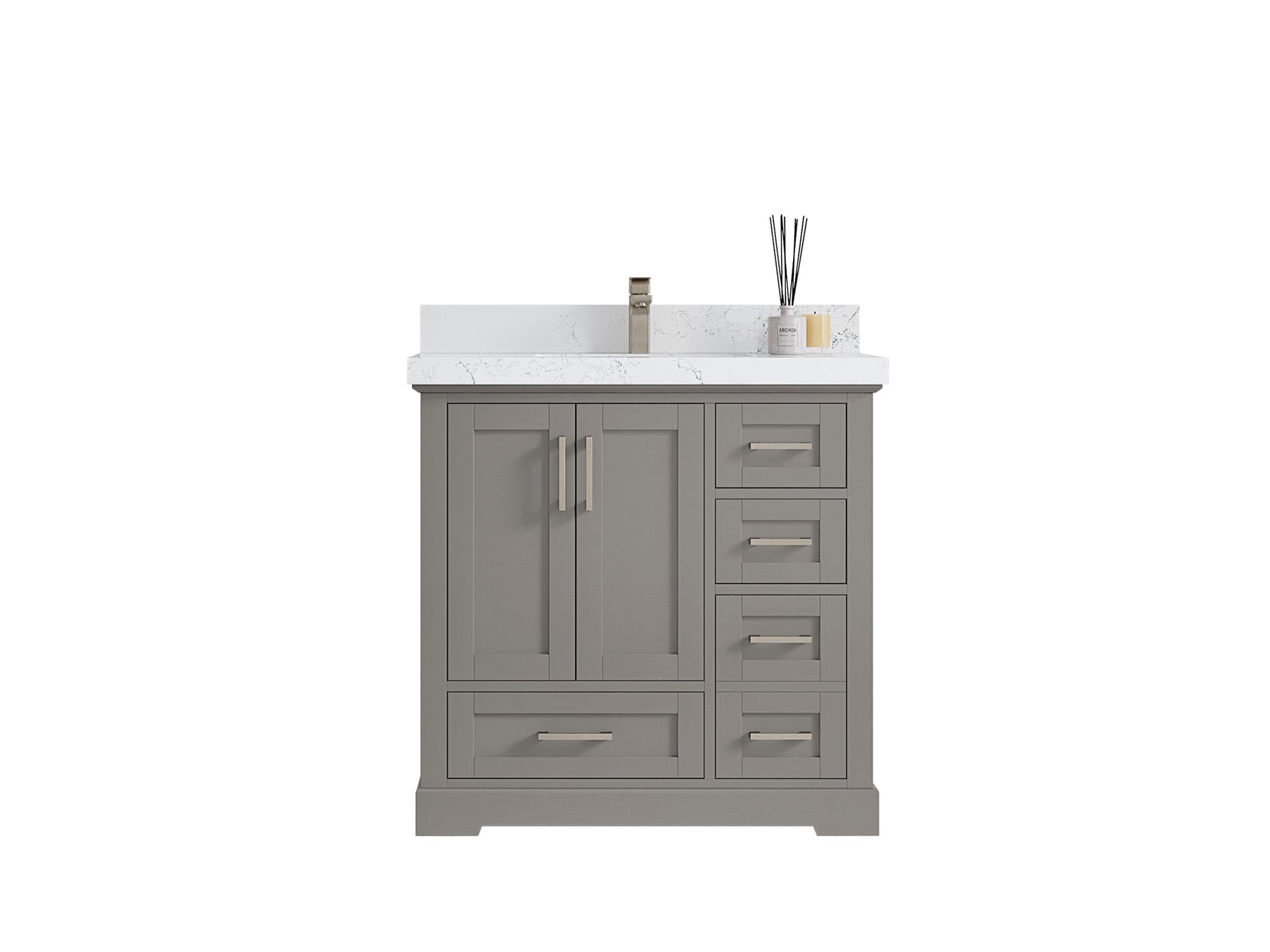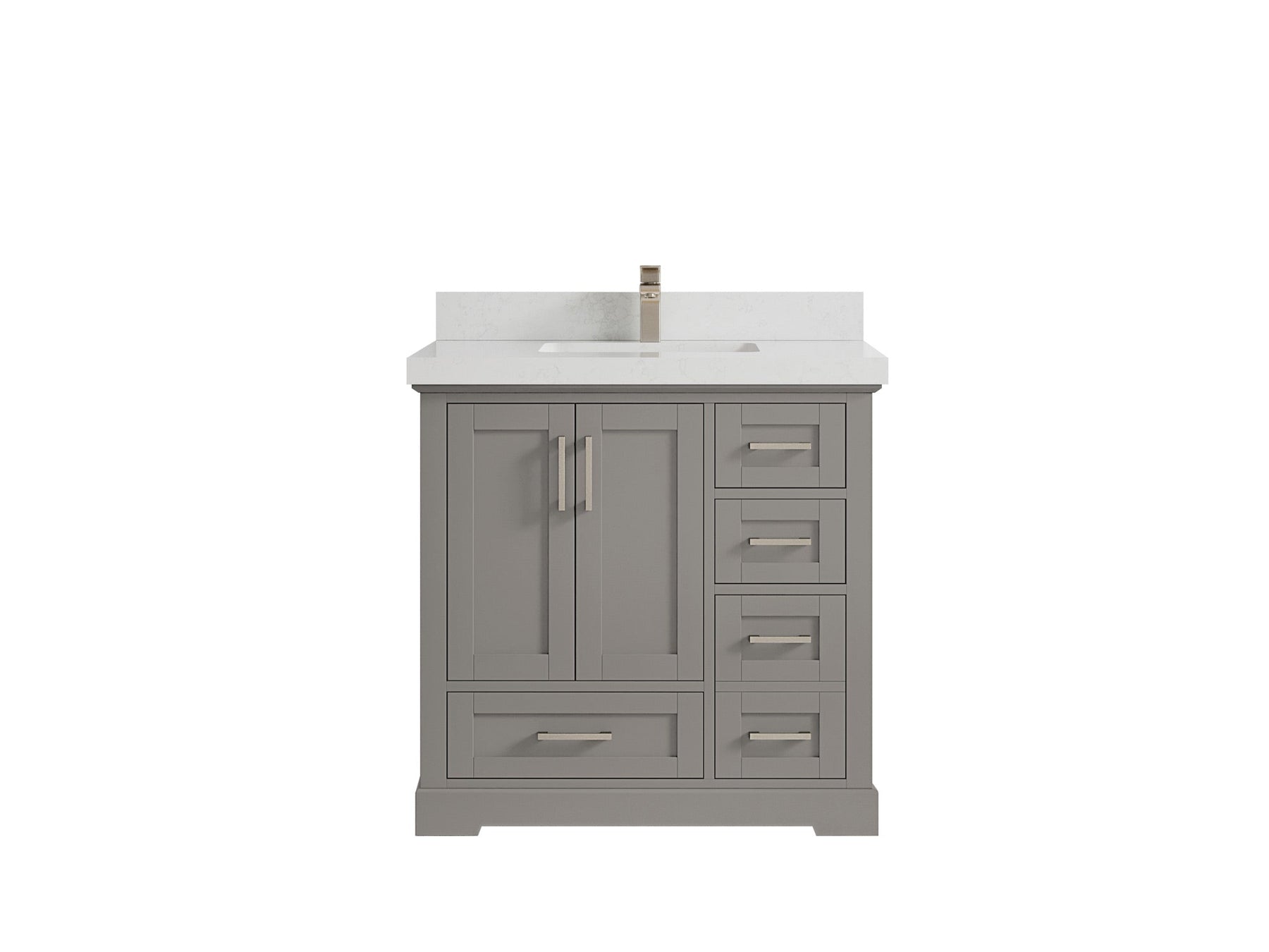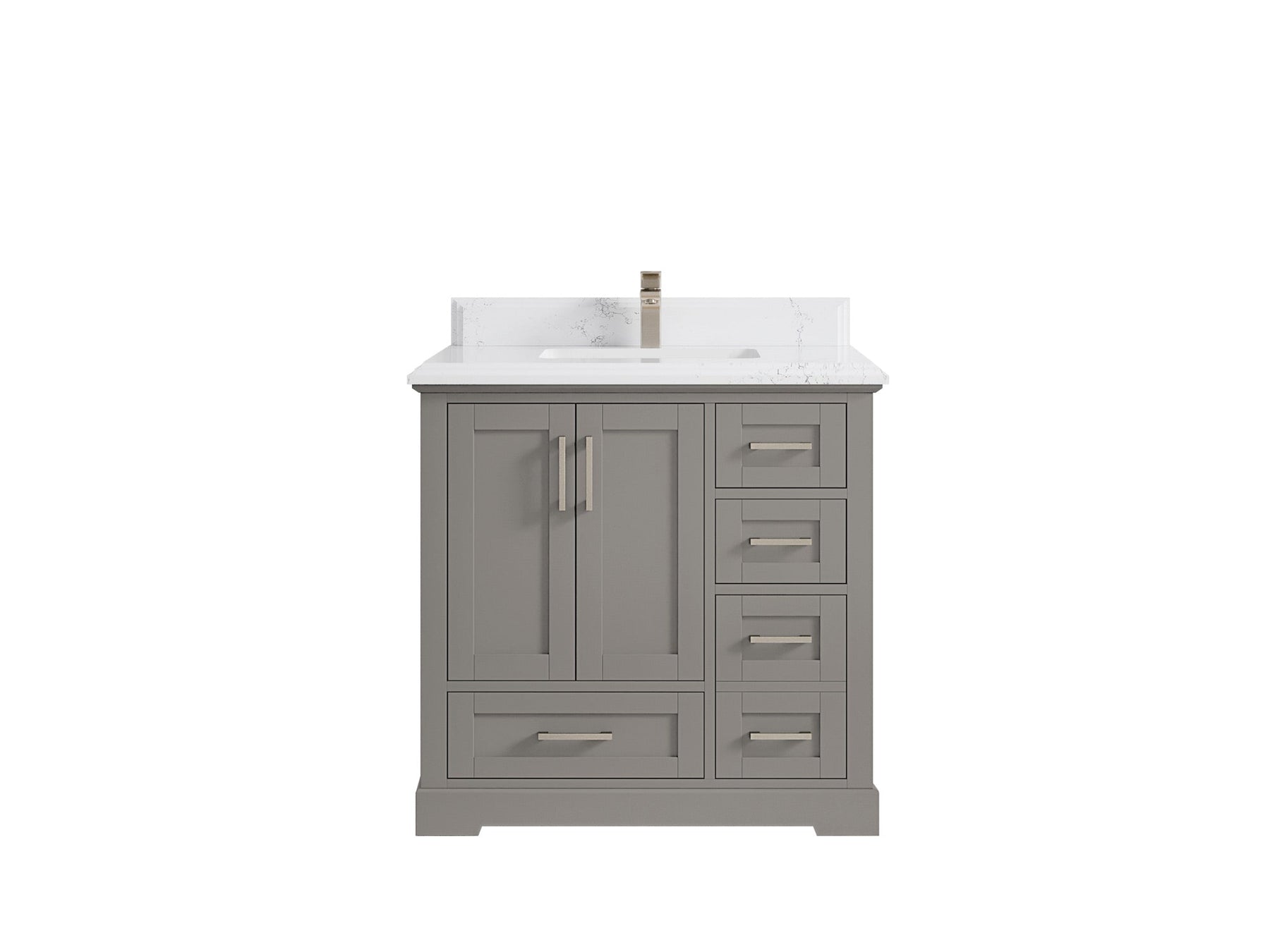 Boston 36 in. W x 22 in. D Single Sink Bathroom Vanity in Elephant Skin Gray with 1.5 in Double Cove Edge Empira White Quartz Countertop - Top View