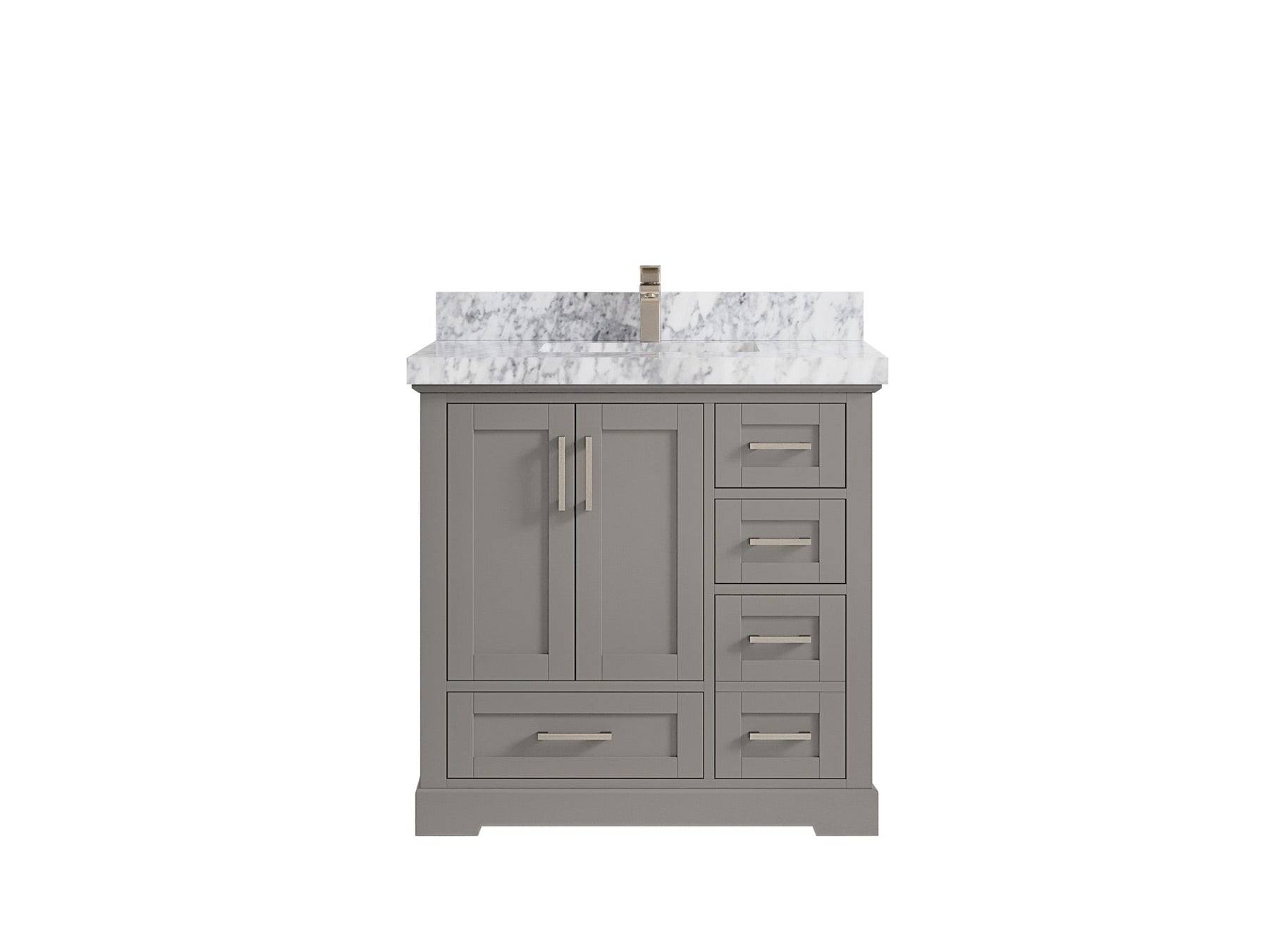 Boston 36 in. W x 22 in. D Single Sink Bathroom Vanity in Elephant Skin Gray with 2 in Carrara Marble Countertop - Top View