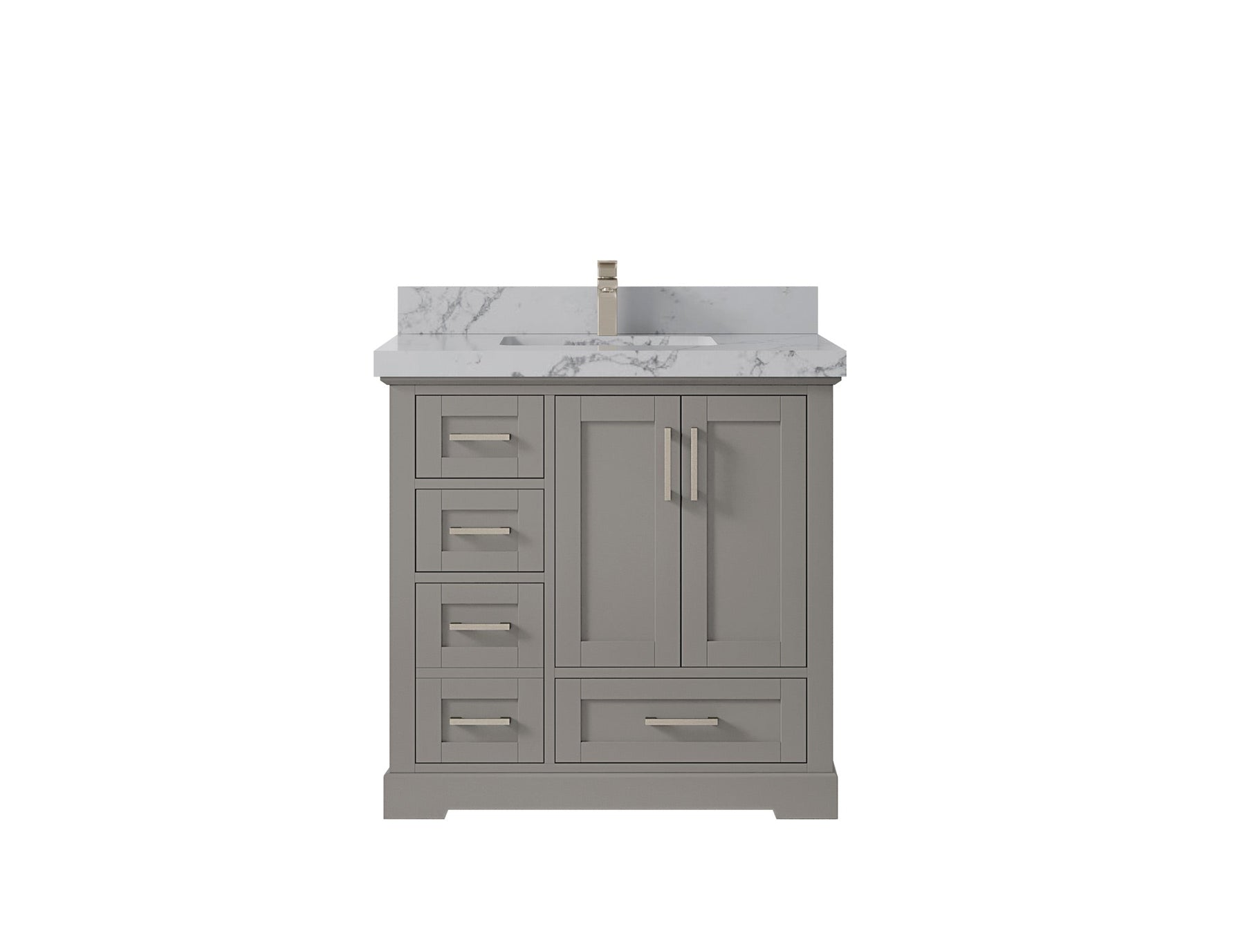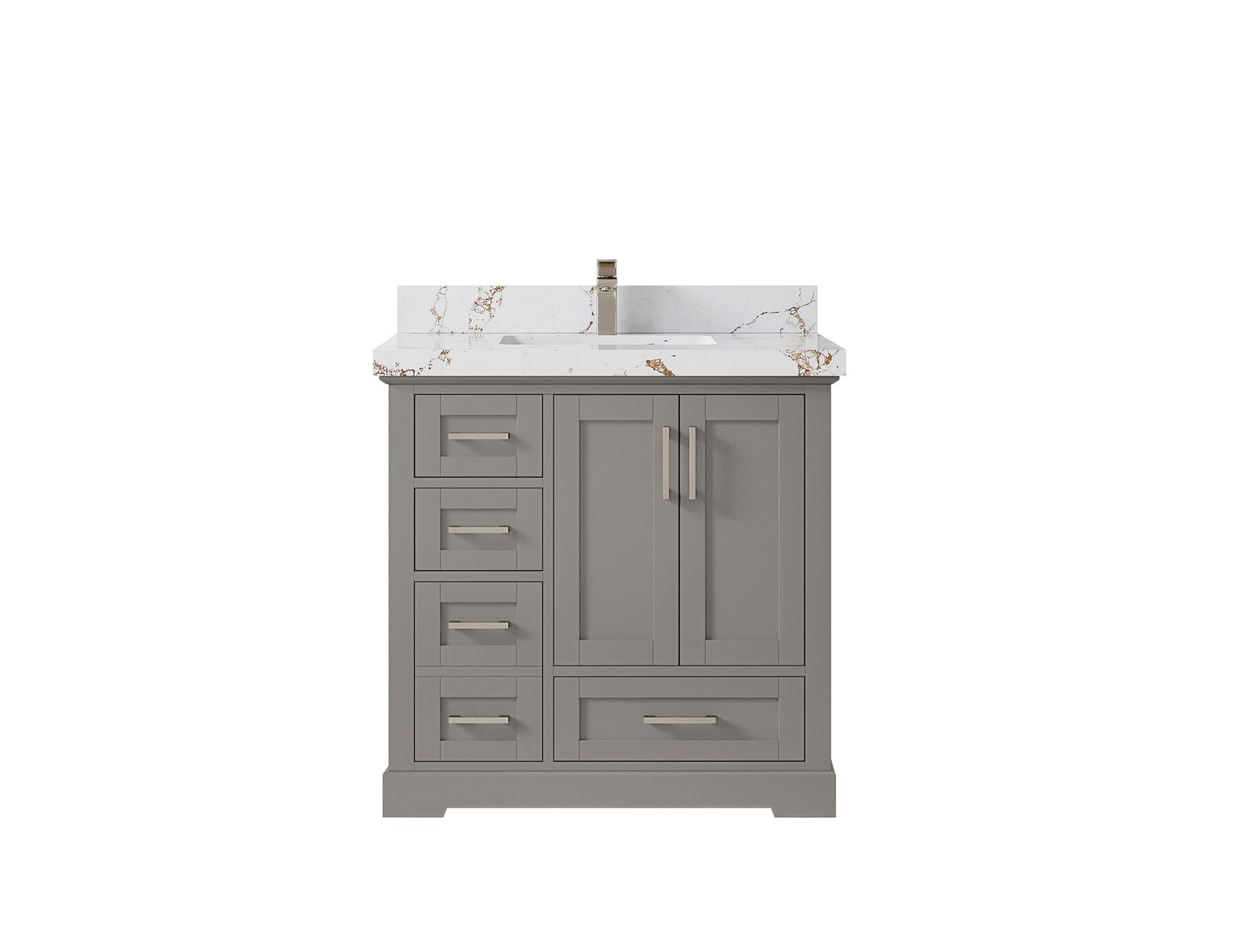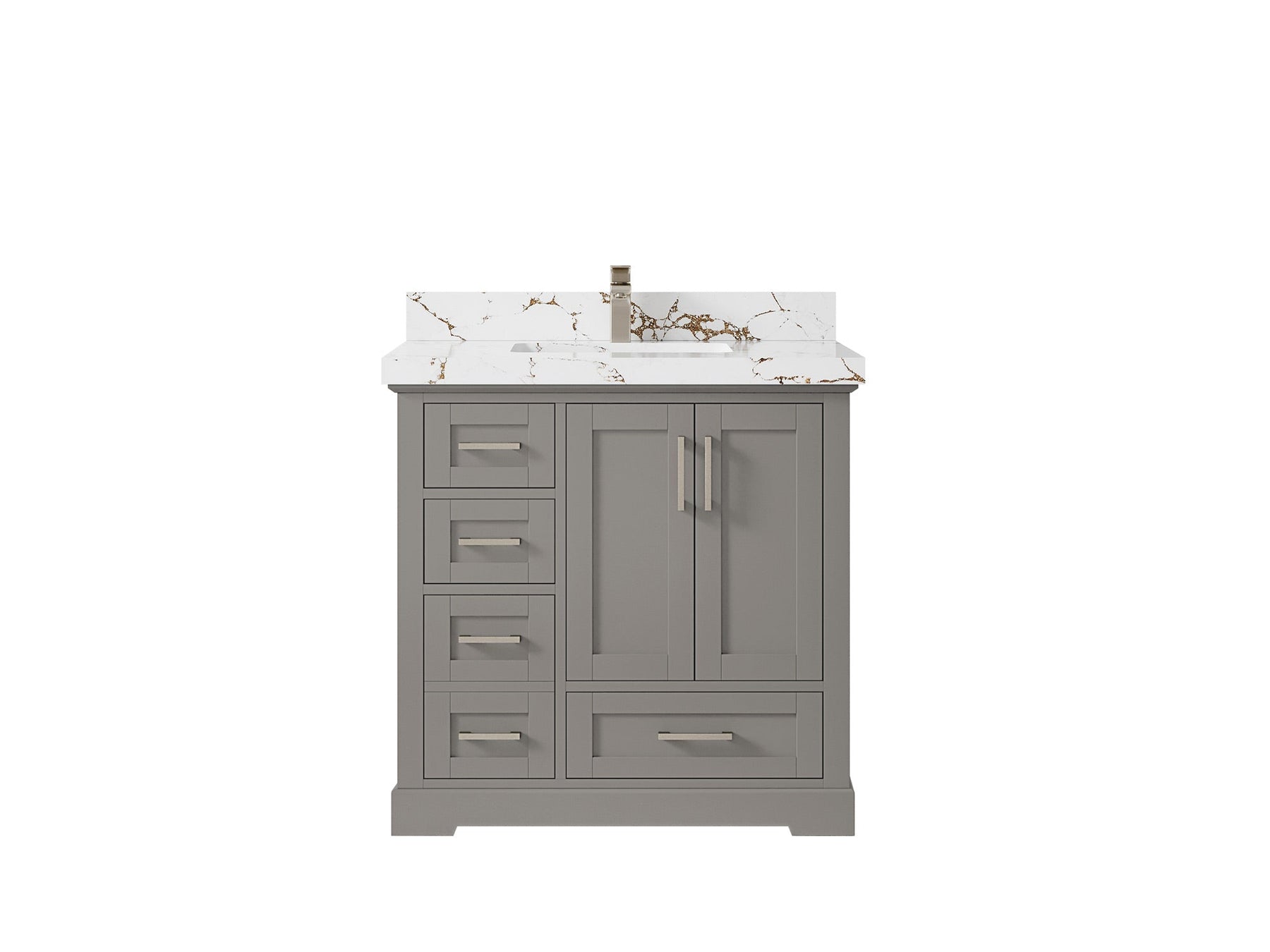 Boston 36 in. W x 22 in. D Single Sink Bathroom Vanity in Elephant Skin Gray with 1.5 in Double Cove Edge Calacatta Laza Quartz Countertop - Top View
