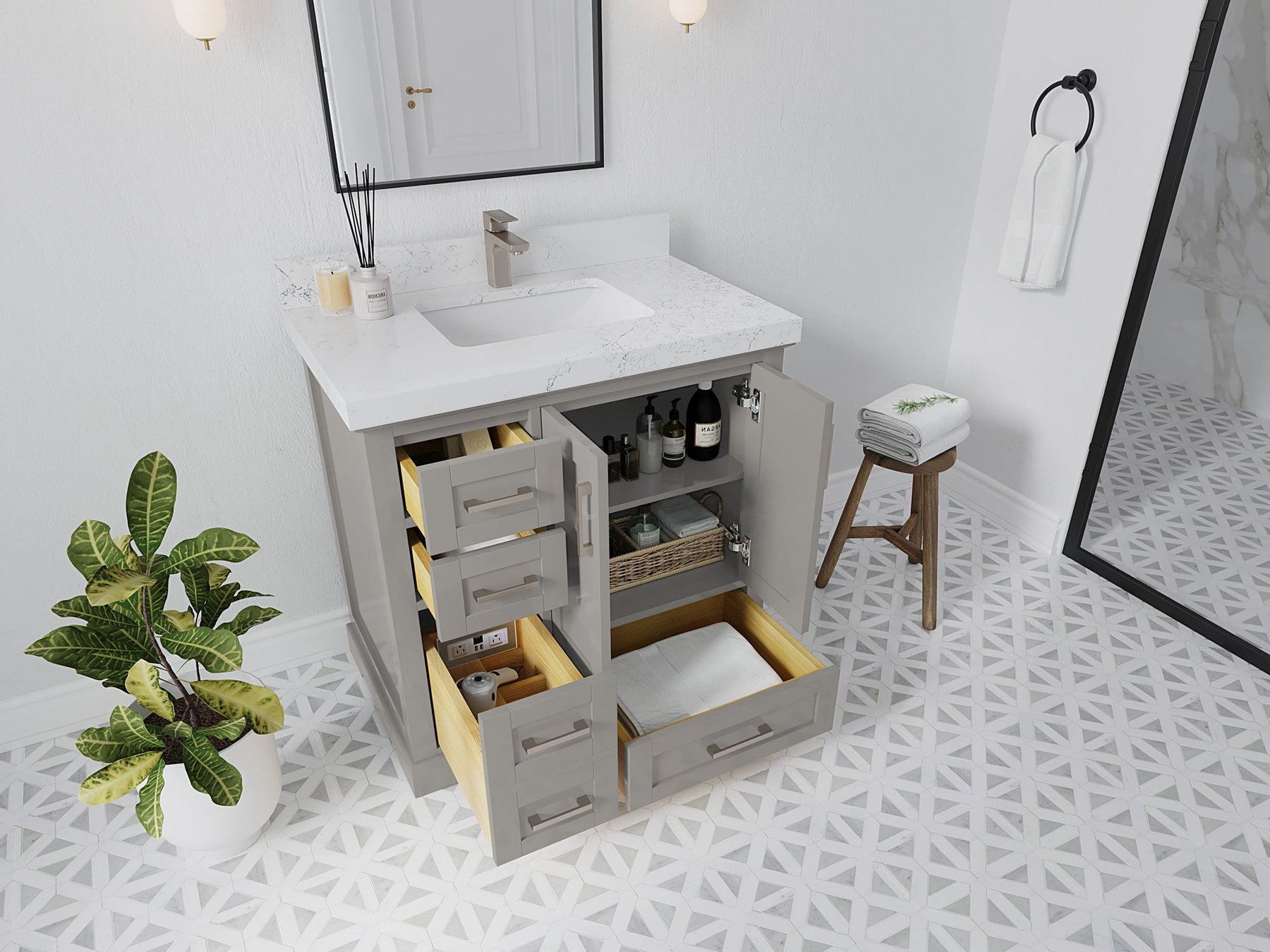 Boston 36 in. W x 22 in. D Single Sink Bathroom Vanity in Elephant Skin Gray with 1.5 in Double Cove Edge White Quartz Countertop - Top View