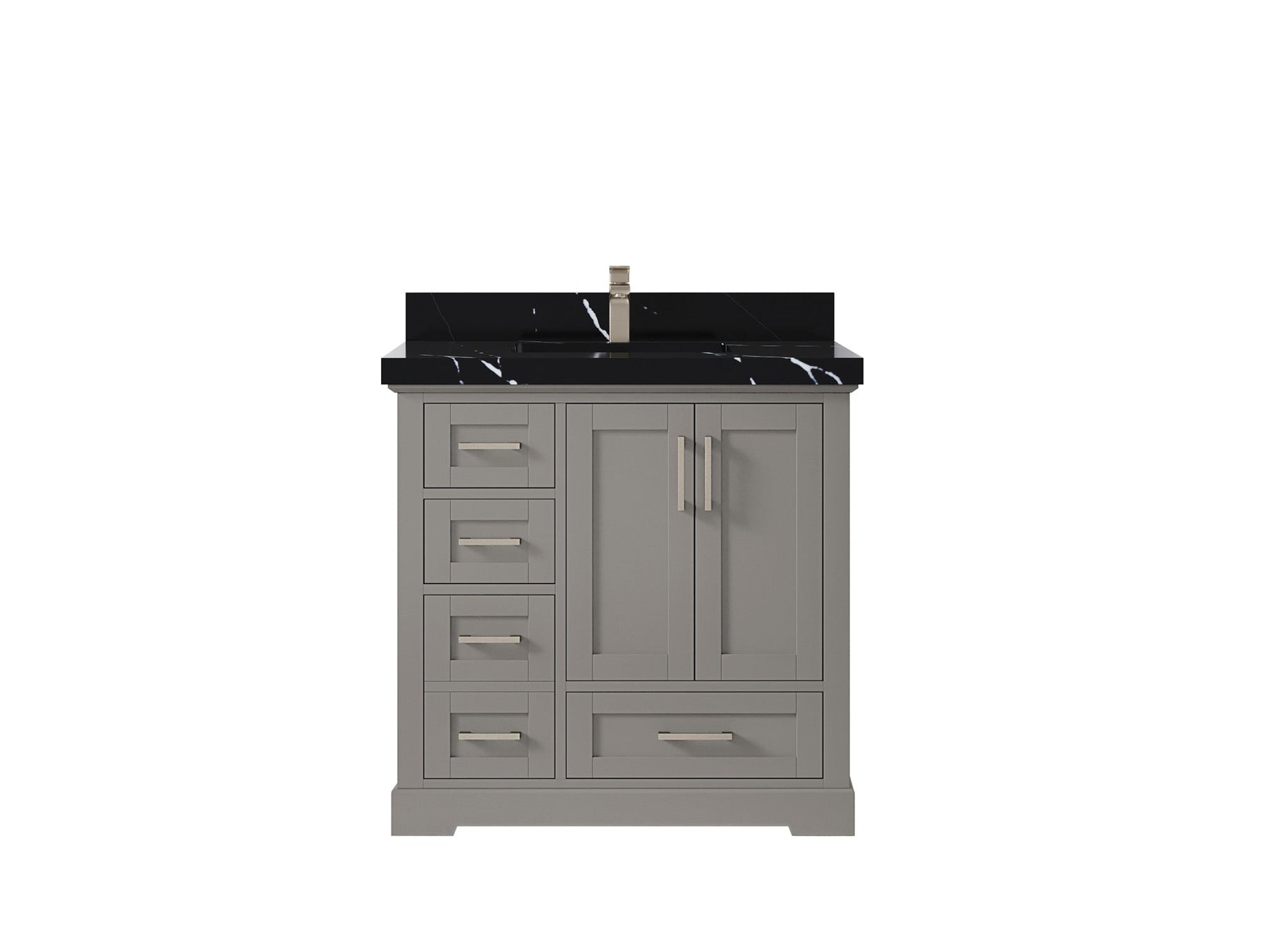 Boston 36 in. W x 22 in. D Single Sink Bathroom Vanity in Elephant Skin Gray with 2 in Calacatta Black Quartz Countertop - Top View
