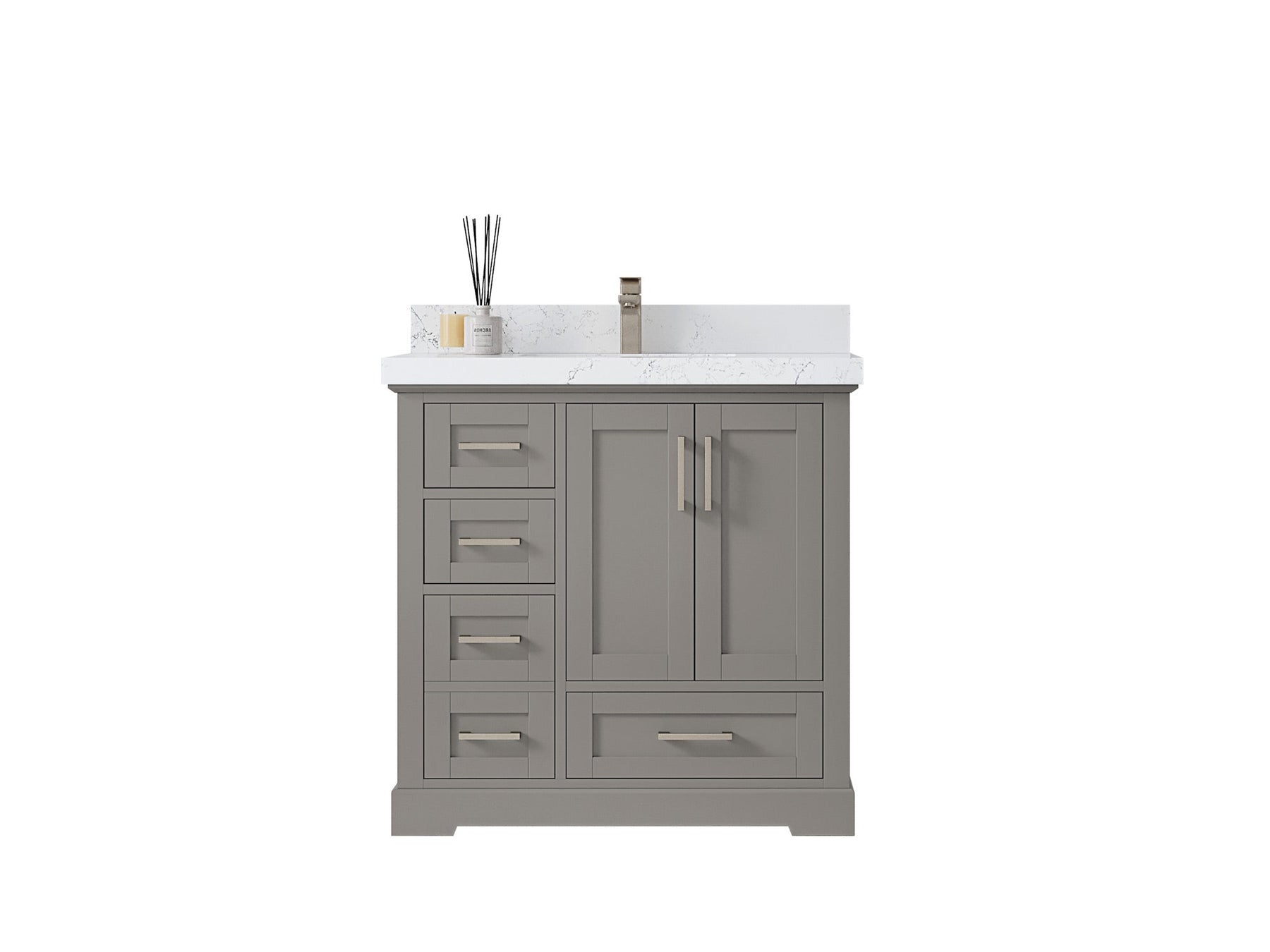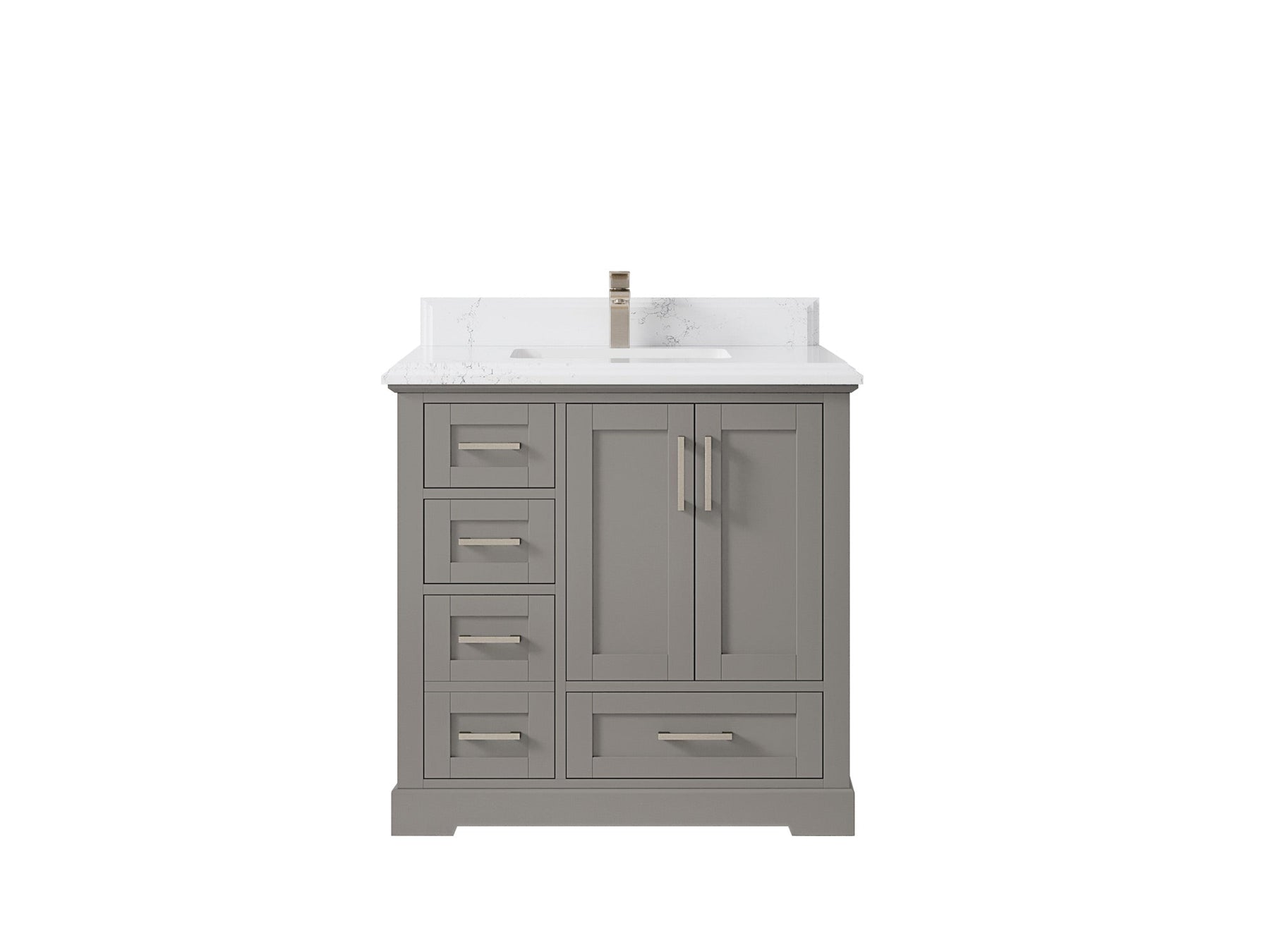 Boston 36 in. W x 22 in. D Single Sink Bathroom Vanity in Elephant Skin Gray with 2 in Empira White Quartz Countertop - Top View