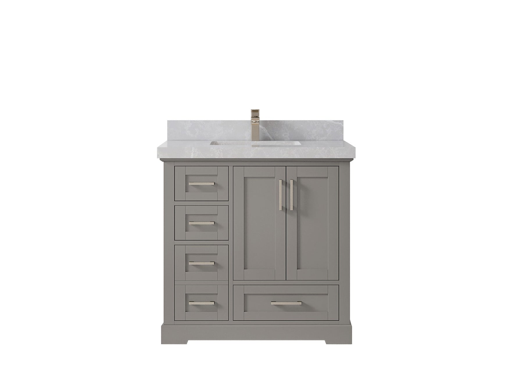 Boston 36 in. W x 22 in. D Single Sink Bathroom Vanity in Elephant Skin Gray with 1.5 in Double Cove Edge Empira White Quartz Countertop - Top View