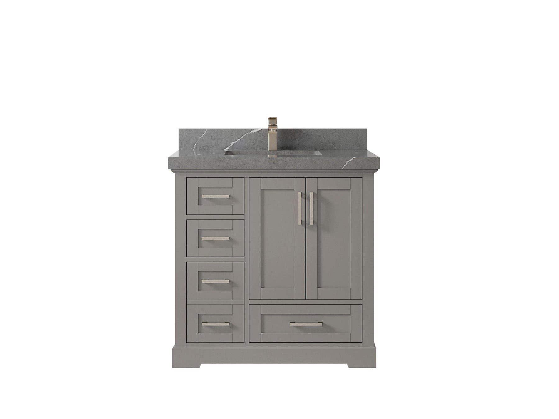 Boston 36 in. W x 22 in. D Single Sink Bathroom Vanity in Elephant Skin Gray with Countertop - Dimensions
