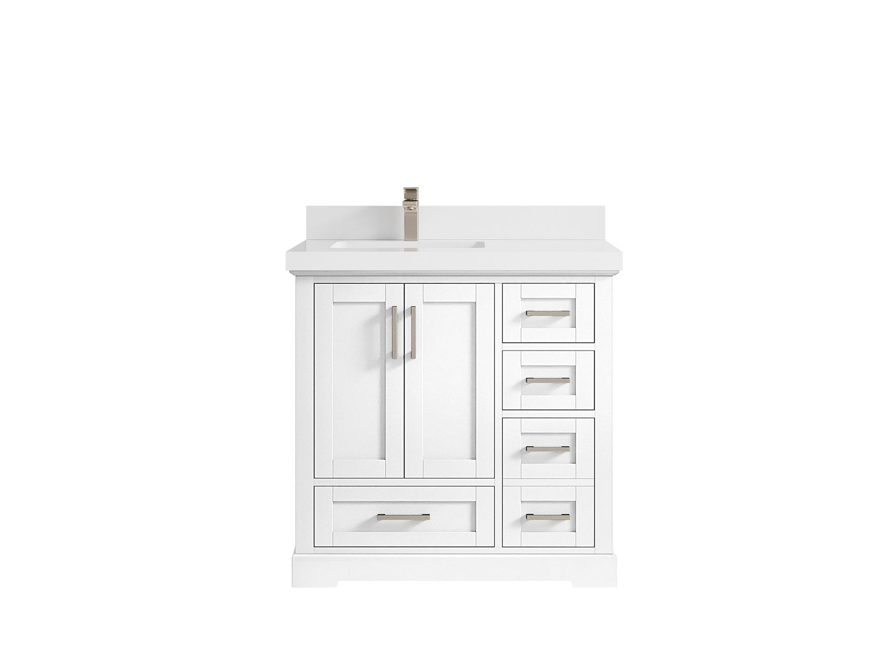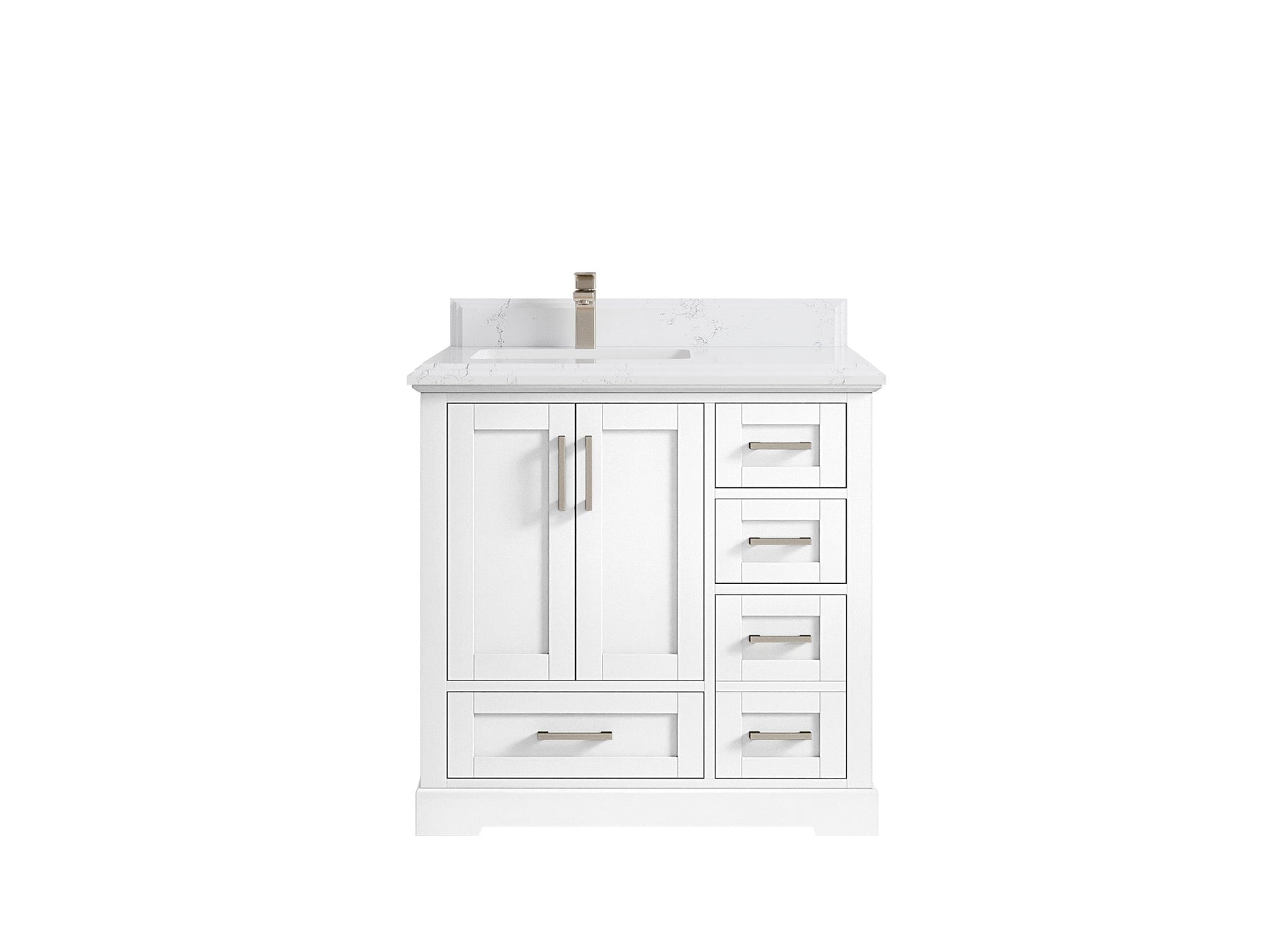 Boston 36 in. W x 22 in. D Single Sink Bathroom Vanity in White with 2 in Empira White Quartz Countertop - Top View
