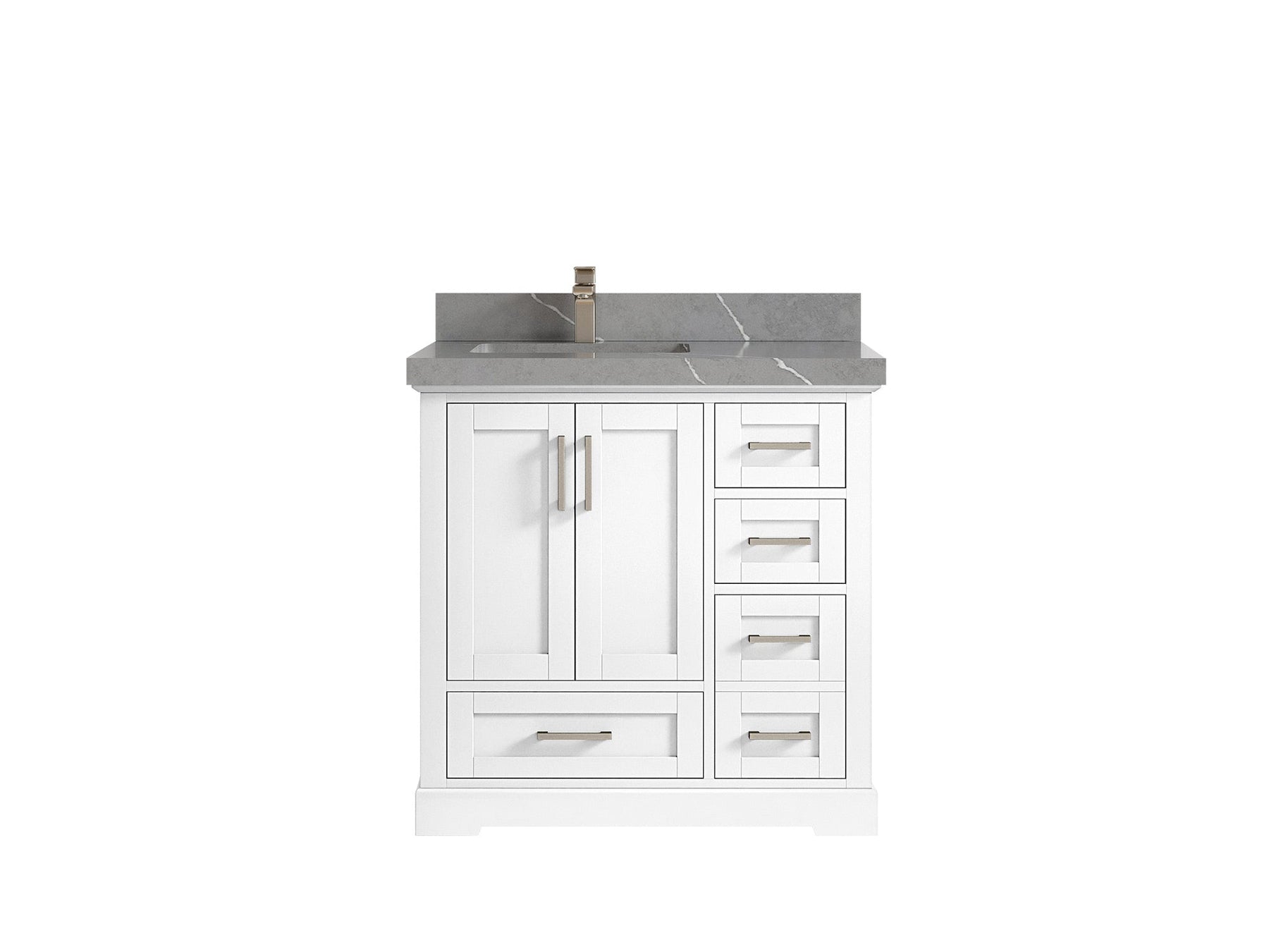 Boston 36 in. W x 22 in. D Single Sink Bathroom Vanity in White with 2 in Piatra Gray Quartz Countertop - Top View