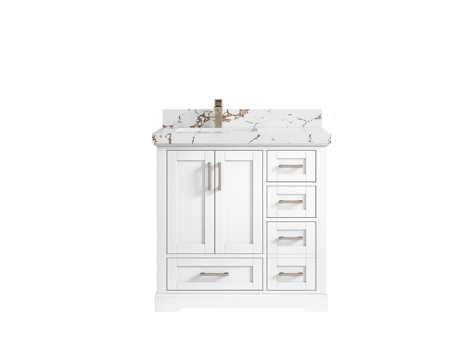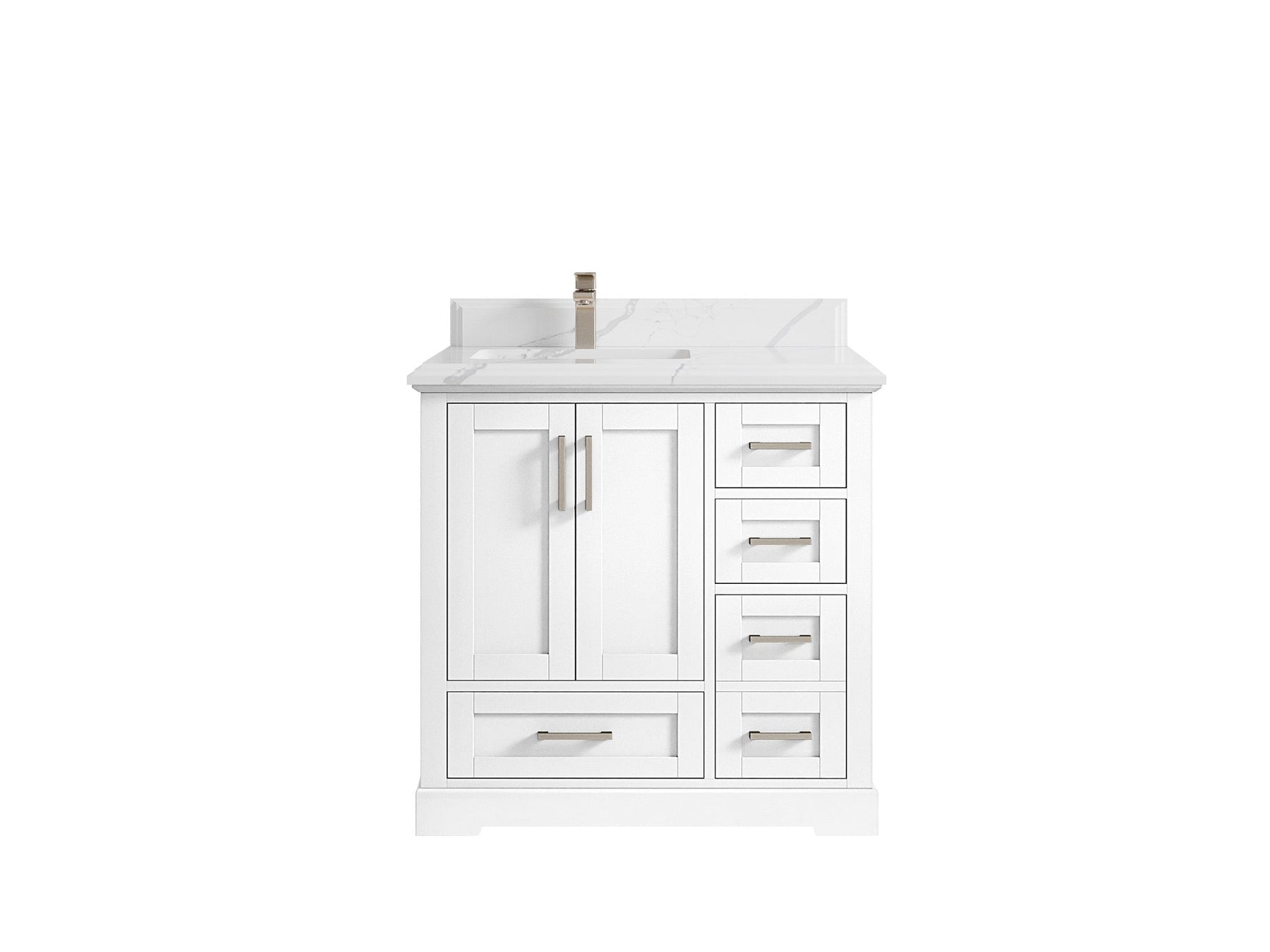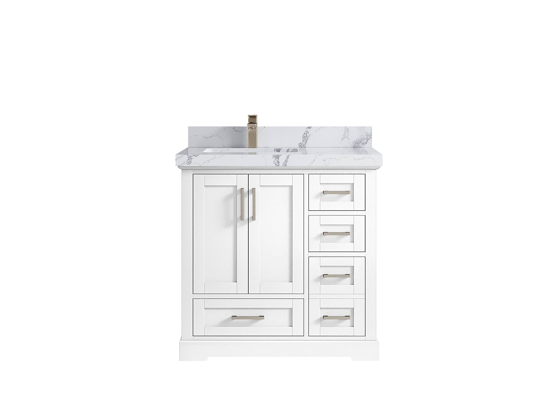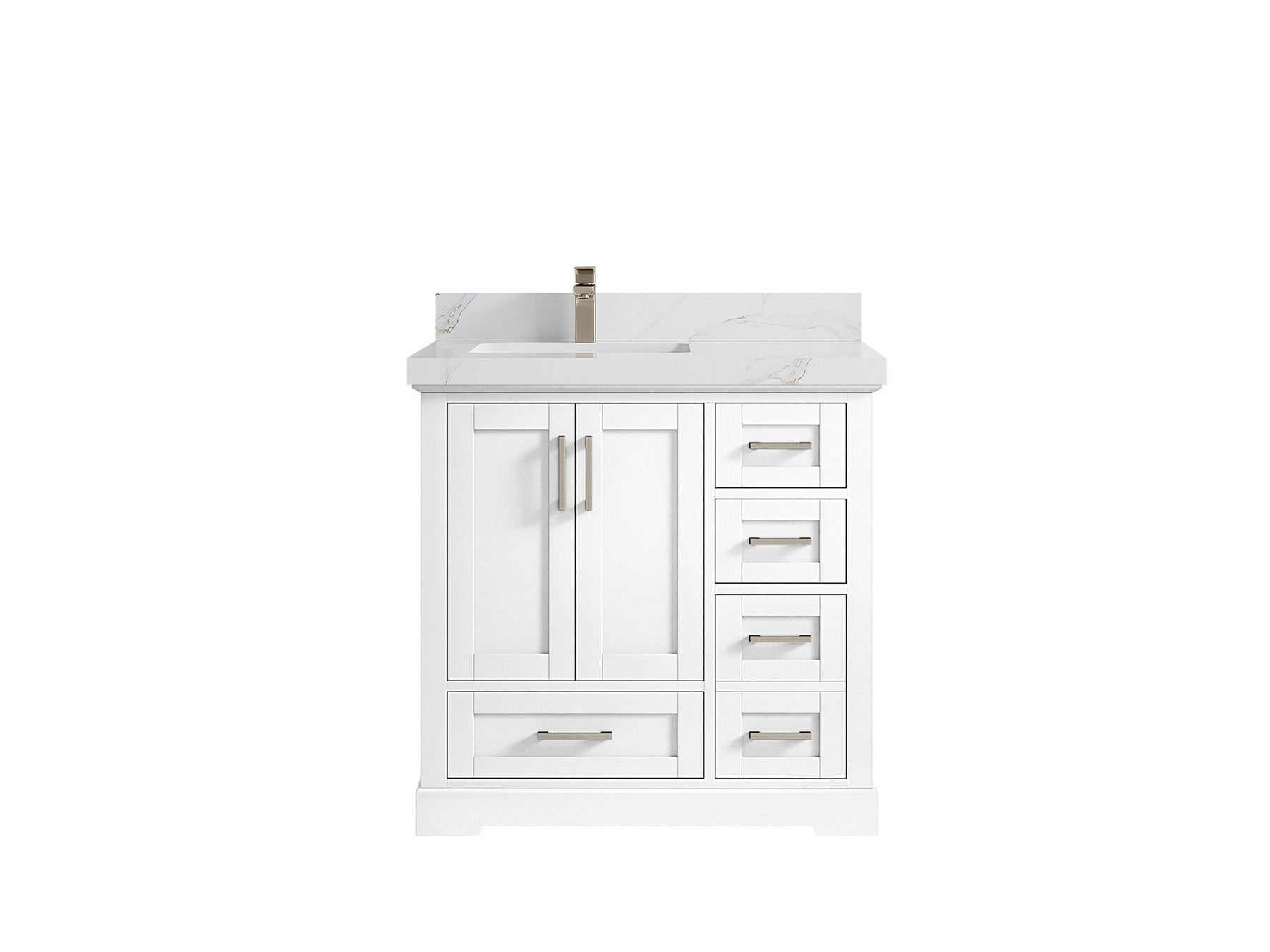 Boston 36 in. W x 22 in. D Single Sink Bathroom Vanity in White with 2 in Calacatta Nuvo Quartz Countertop - Top View