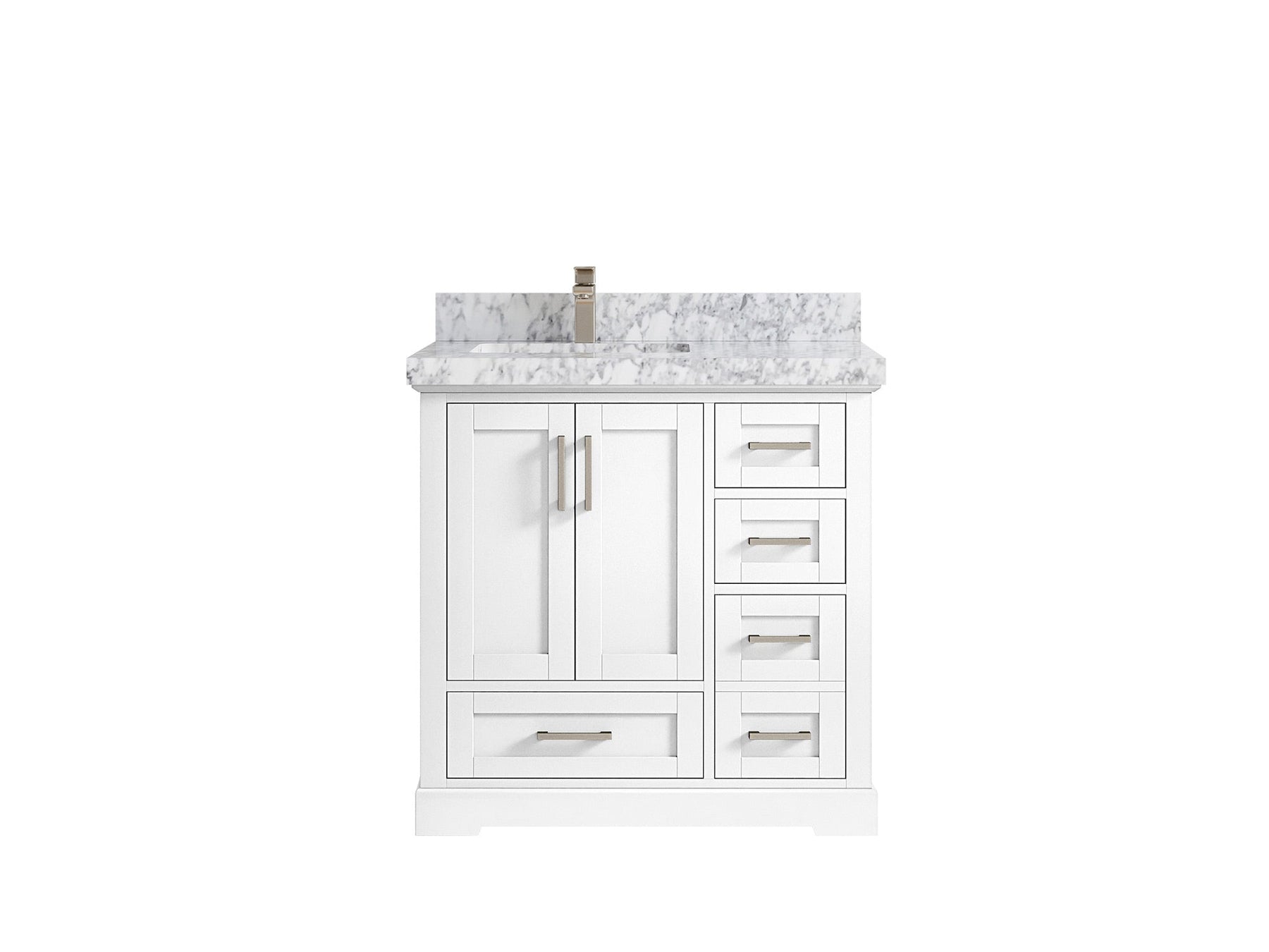 Boston 36 in. W x 22 in. D Single Sink Bathroom Vanity in White with 2 in Carrara Marble Countertop - Top View