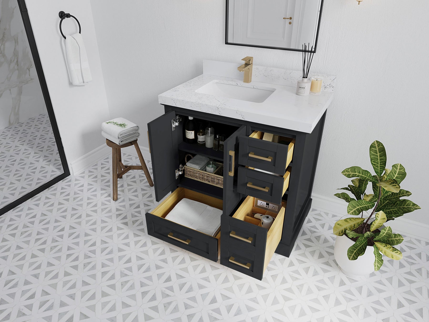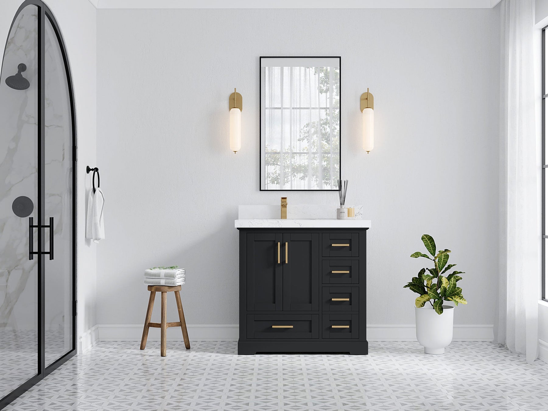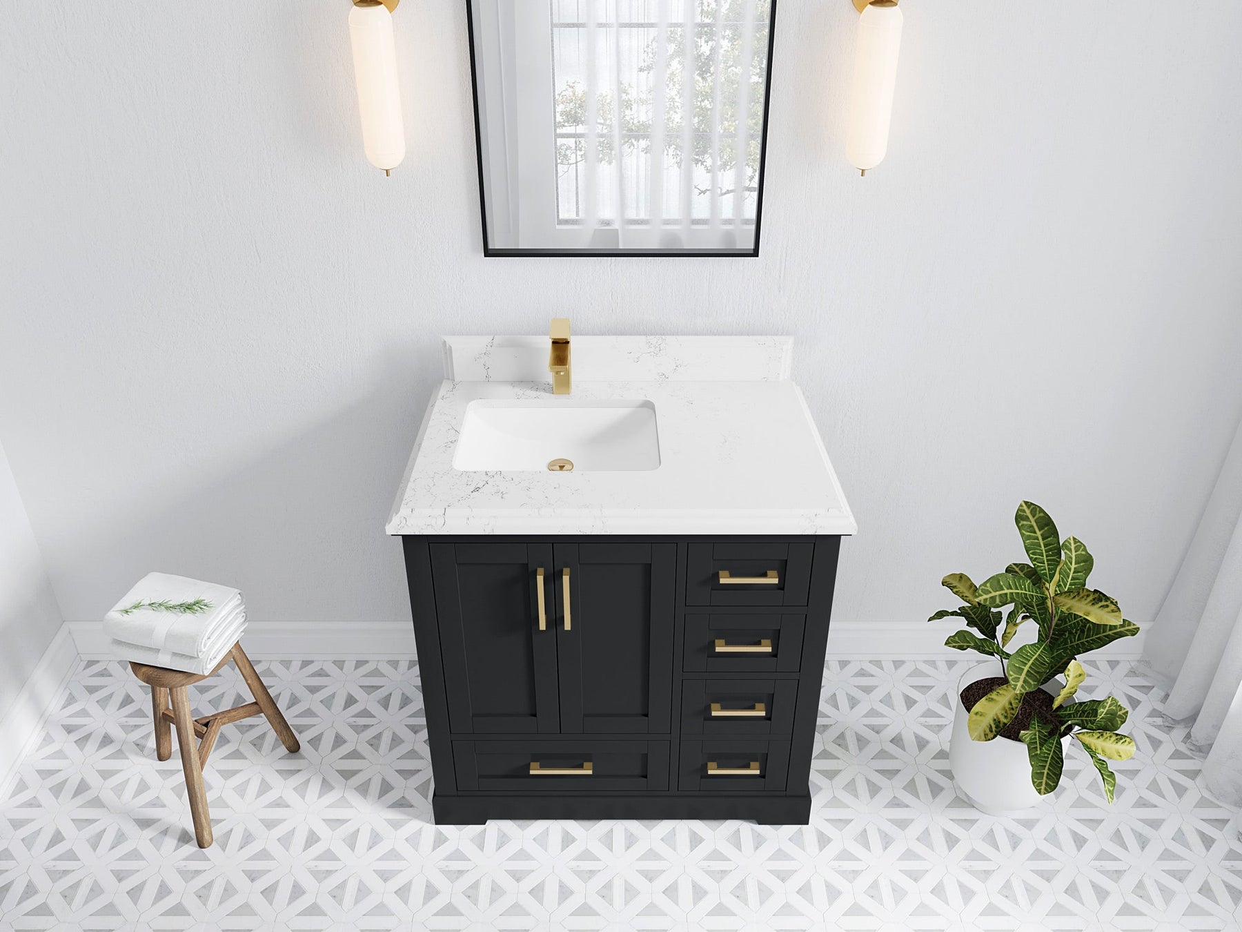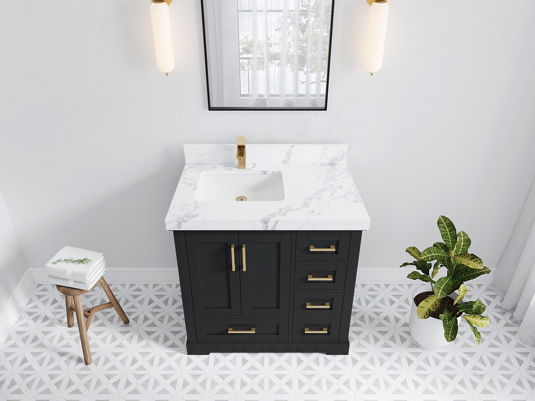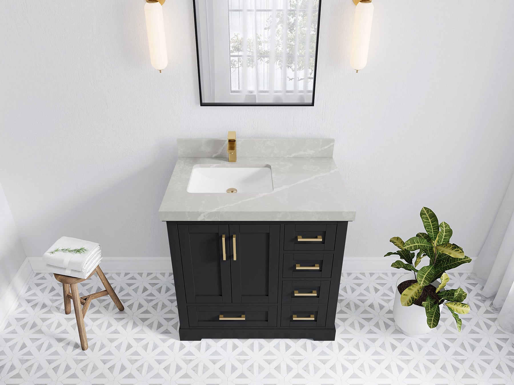 Bathroom Vanity - Frosty Carrara Quartz Countertop
