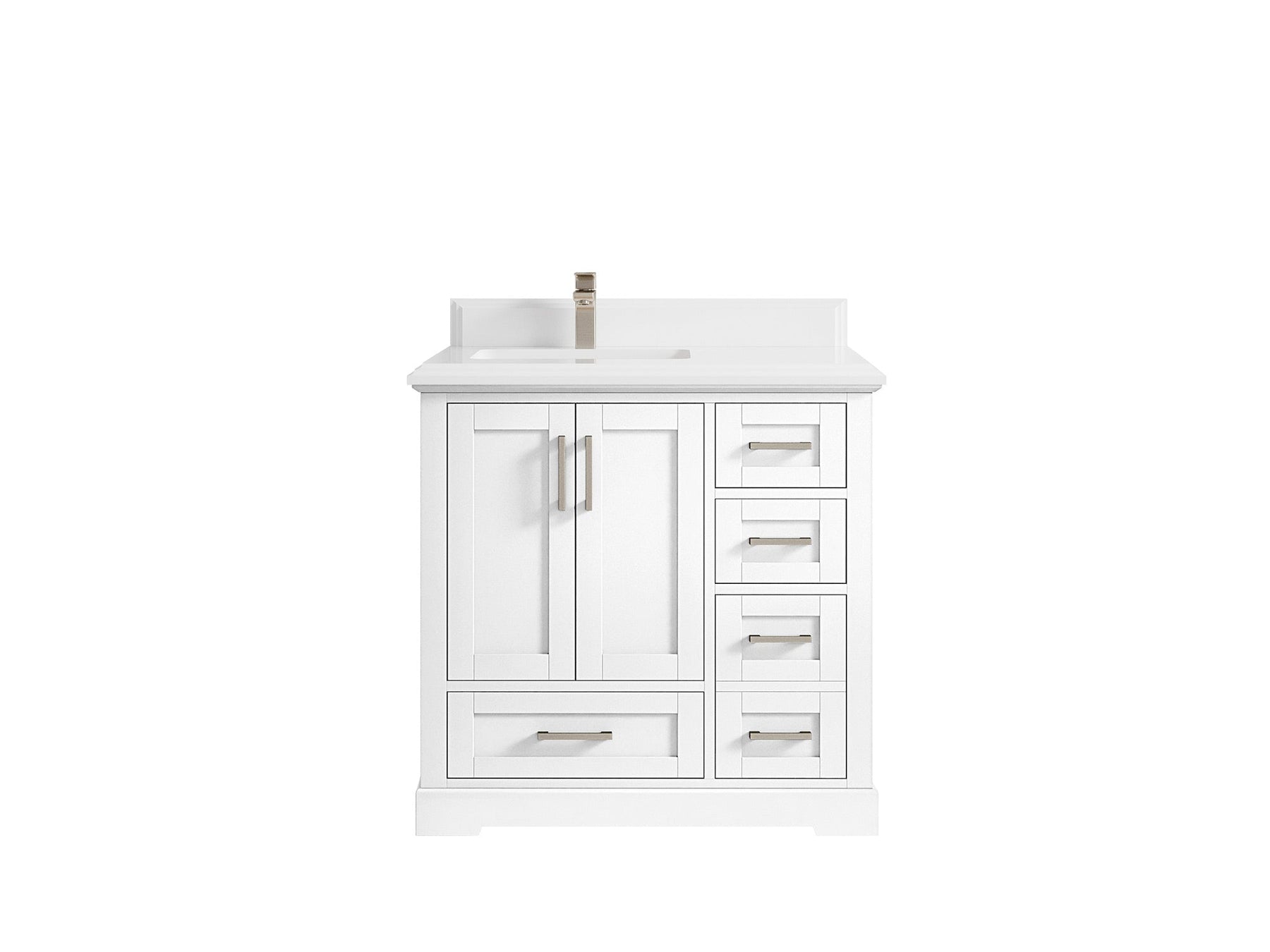 Boston 36 in. W x 22 in. D Single Sink Bathroom Vanity in White with 1.5 in Double Cove Edge White Quartz - Top View
