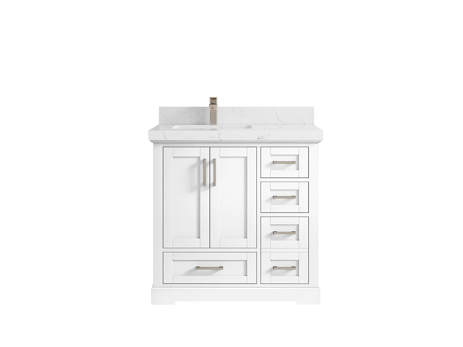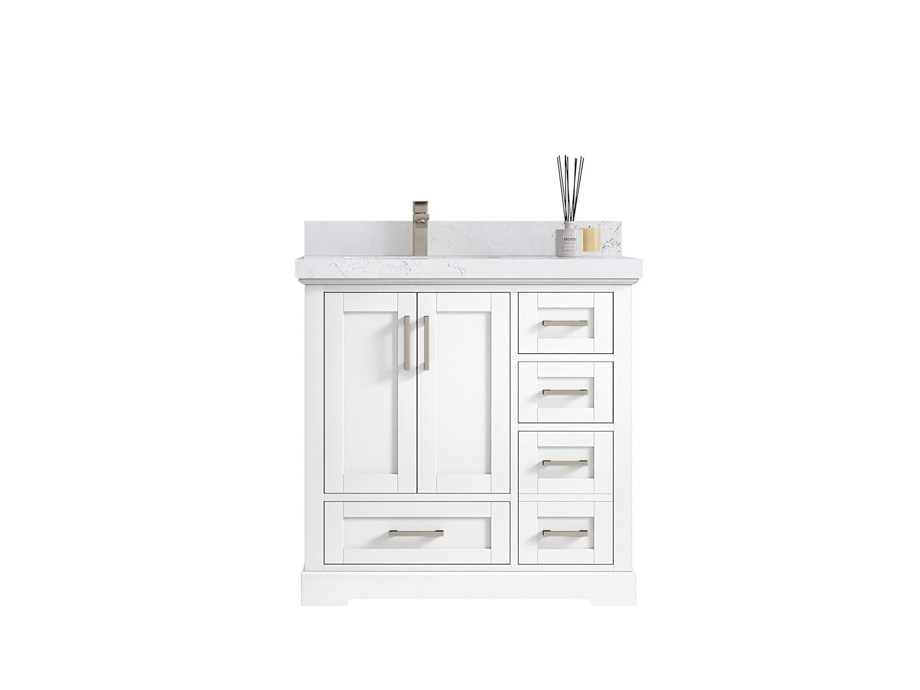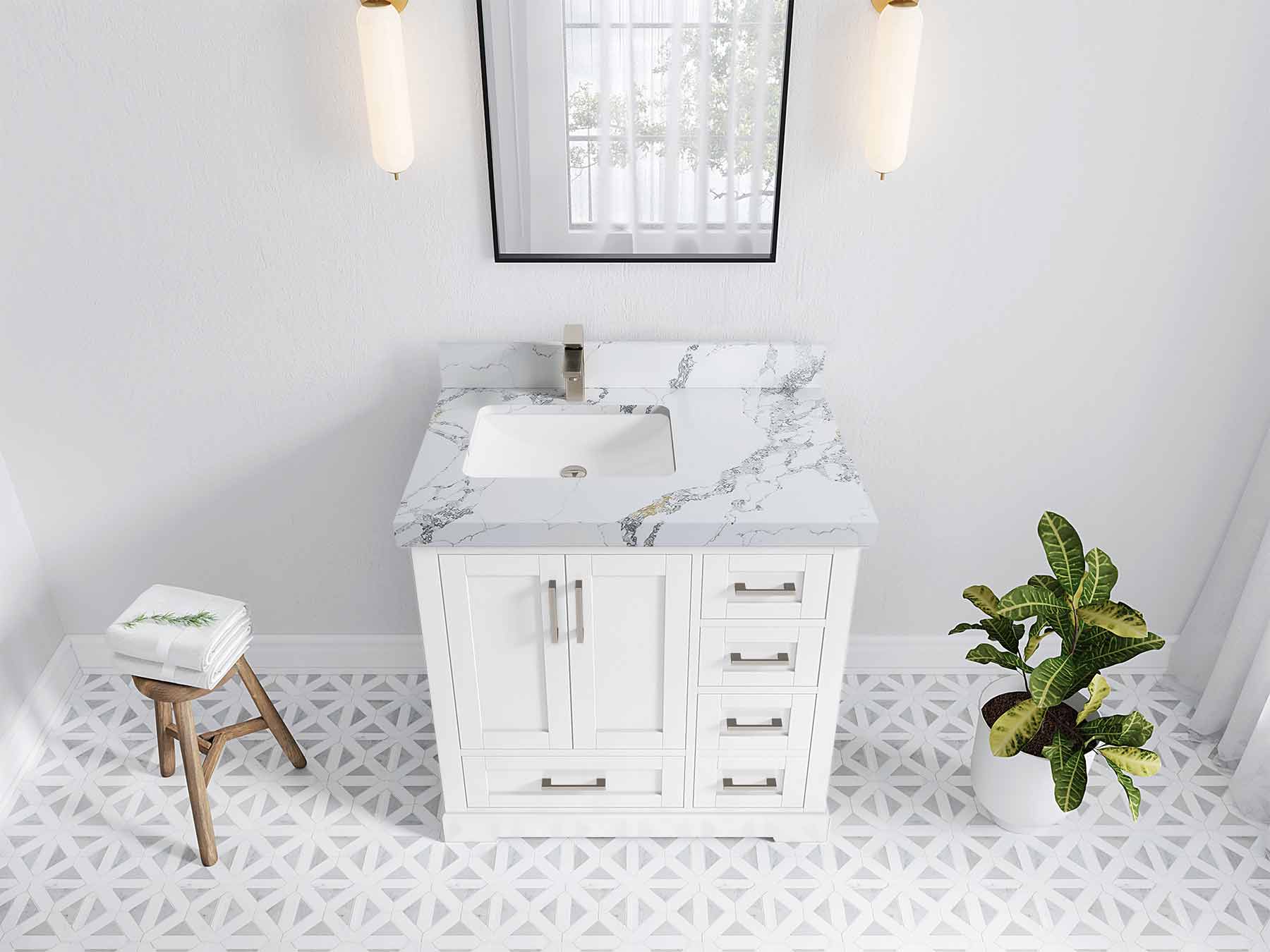 Boston 36 in. W x 22 in. D Single Sink Bathroom Vanity in White with 2 in Calacatta Nuvo Quartz Countertop - Top View