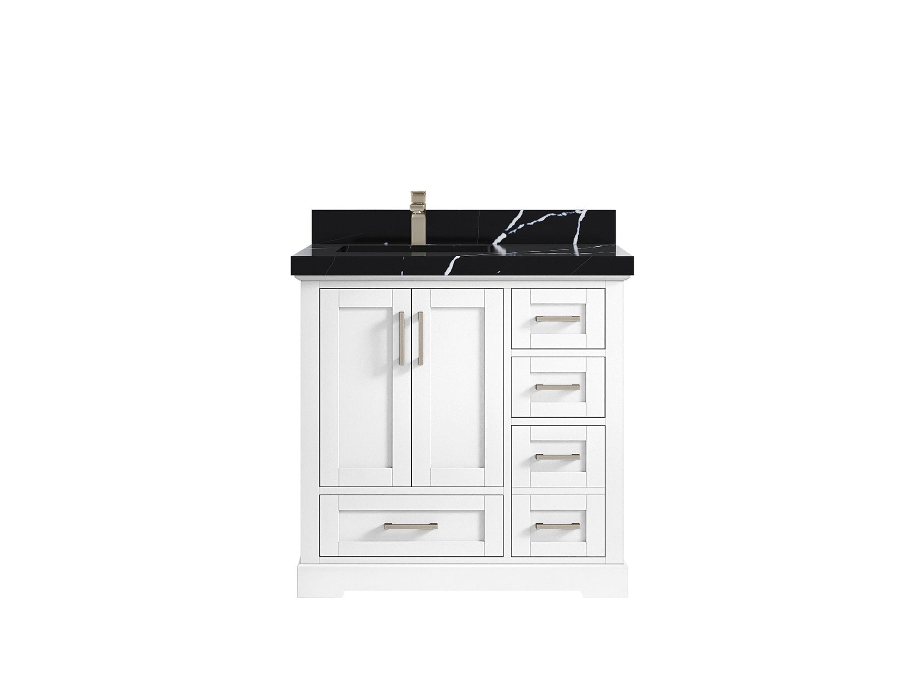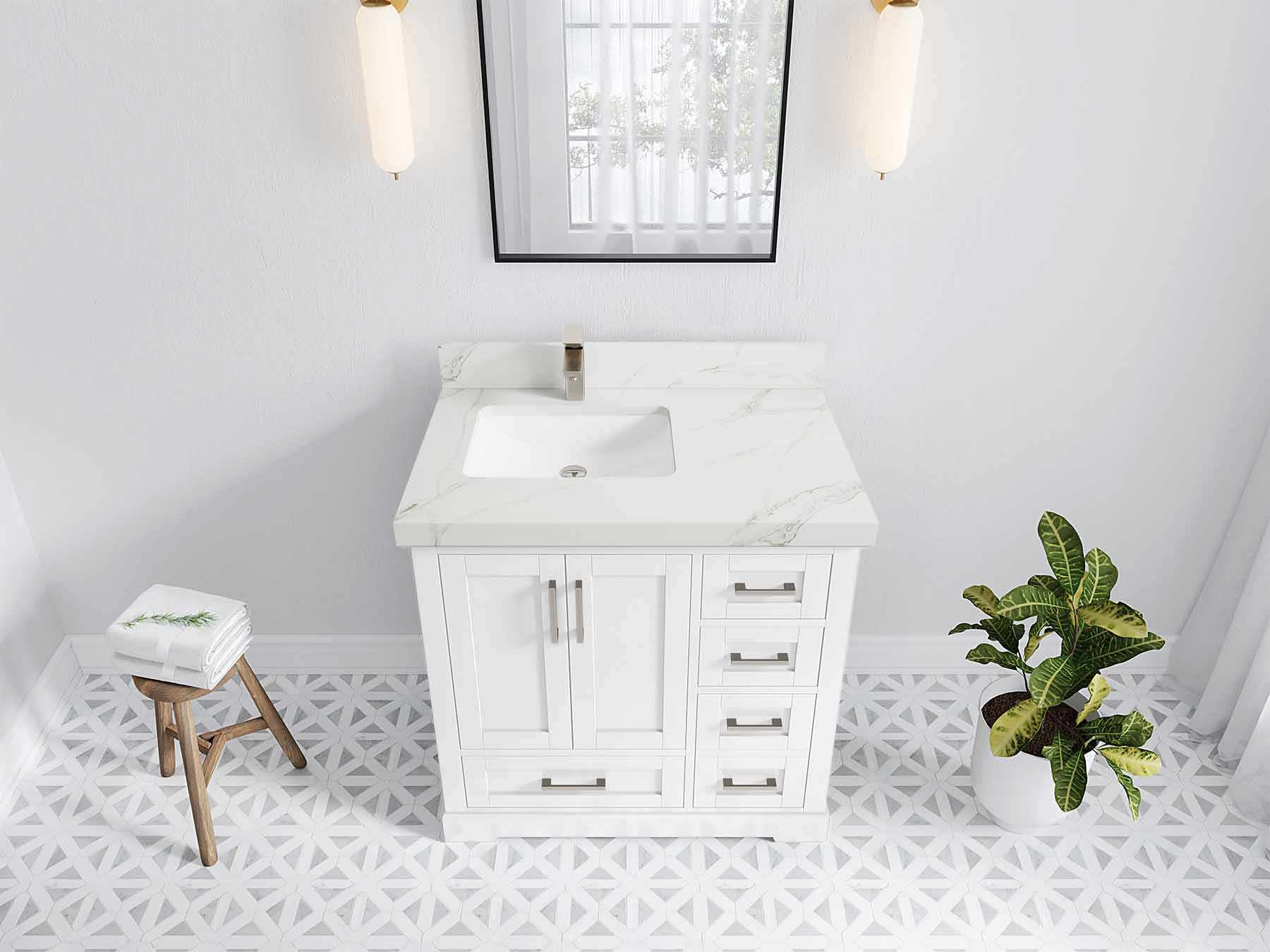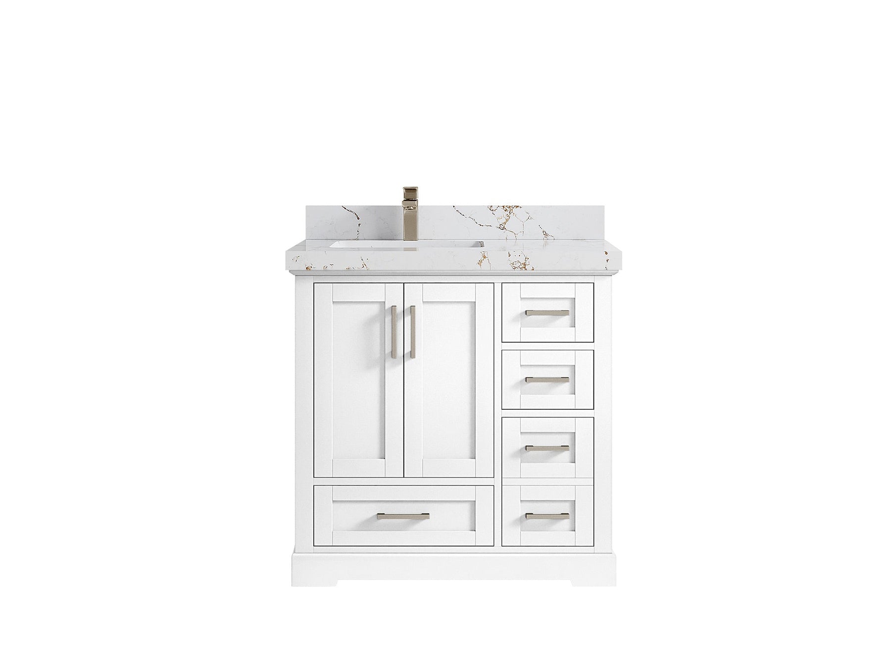 Boston 36 in. W x 22 in. D Single Sink Bathroom Vanity in White with 2 in Calacatta Nuvo Quartz Countertop - Top View