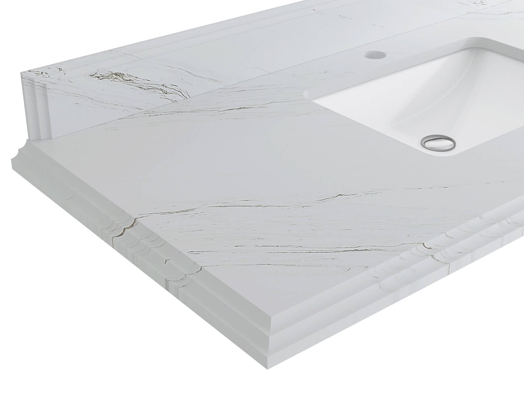 Faucet Hole(S): Comes with Single Faucet, 8 (in.) Widespread Faucet, Wall mount Faucets - Only Available for White Quartz and Carrara Quartz. (PLEASE ADD THIS CONFIGURATION UNDER COUNTERTOPS SECTION )
