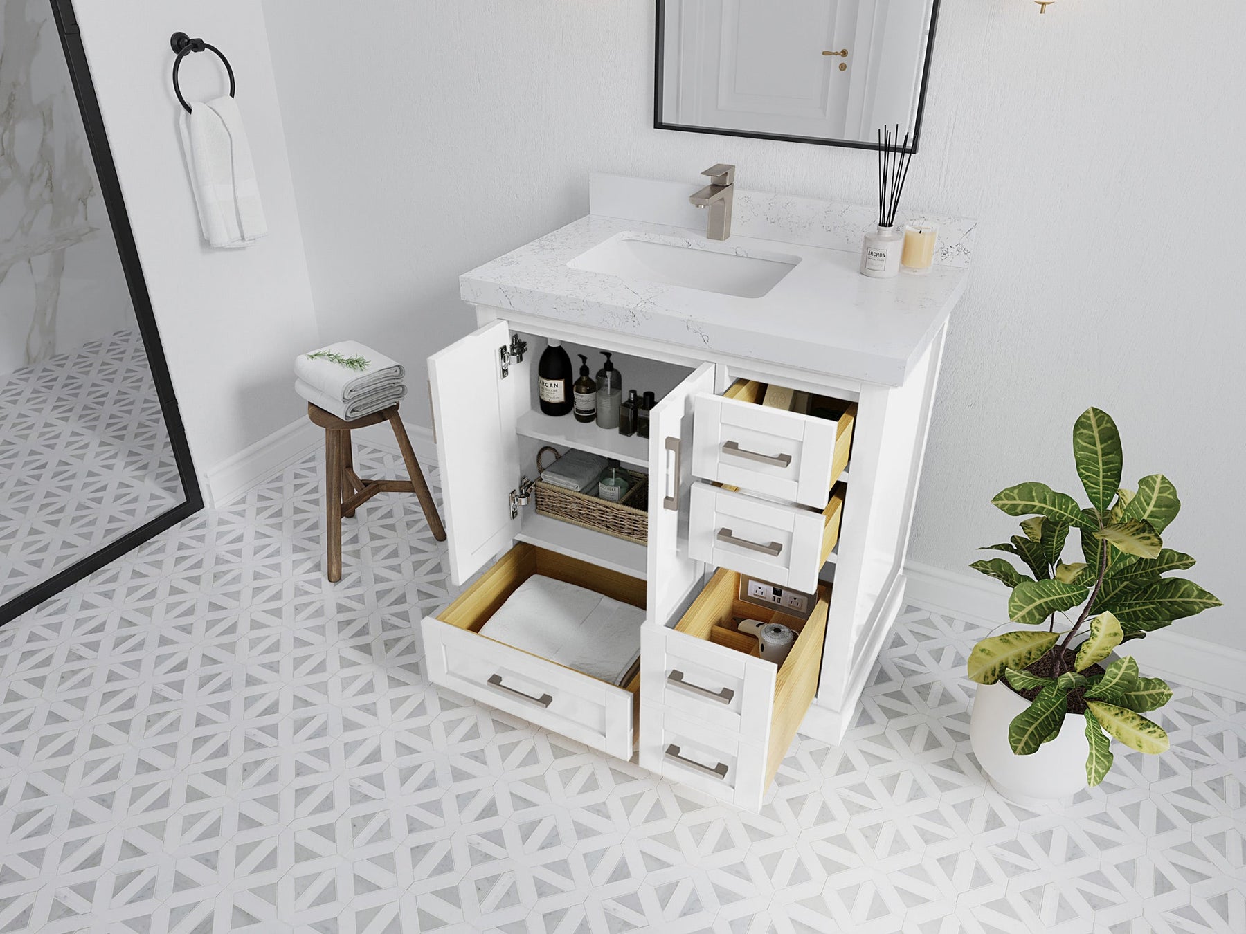 4. Plenty of storage space - this vanity comes with plenty of cabinet space to store all your bathroom essentials.