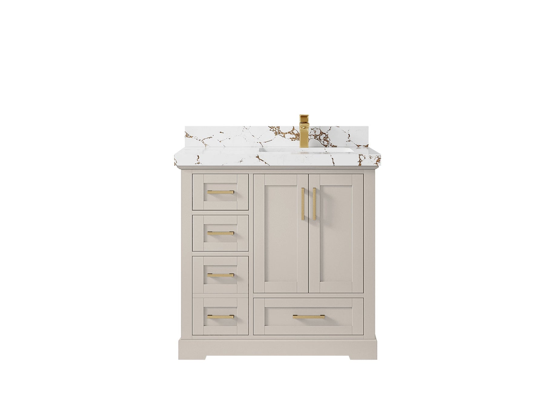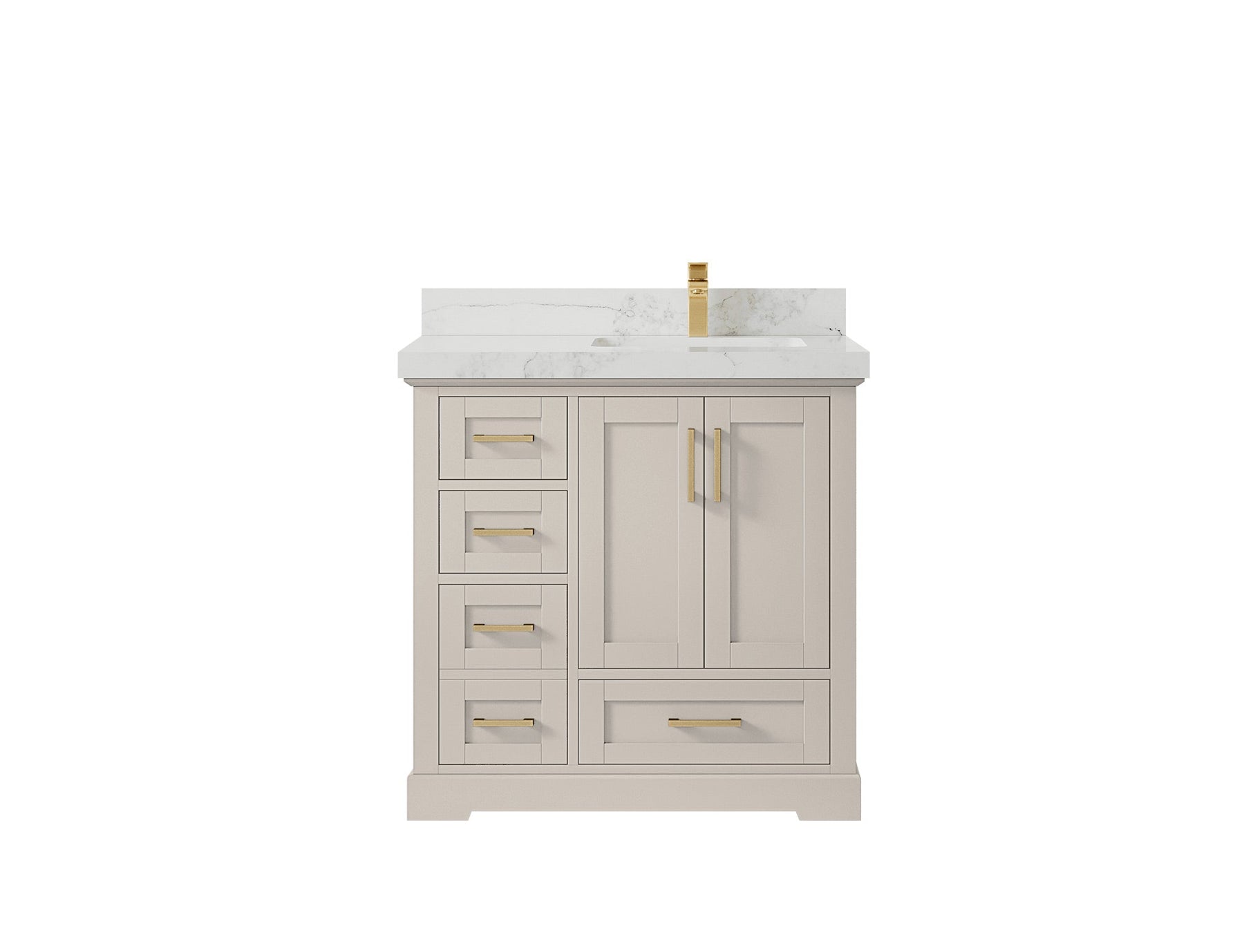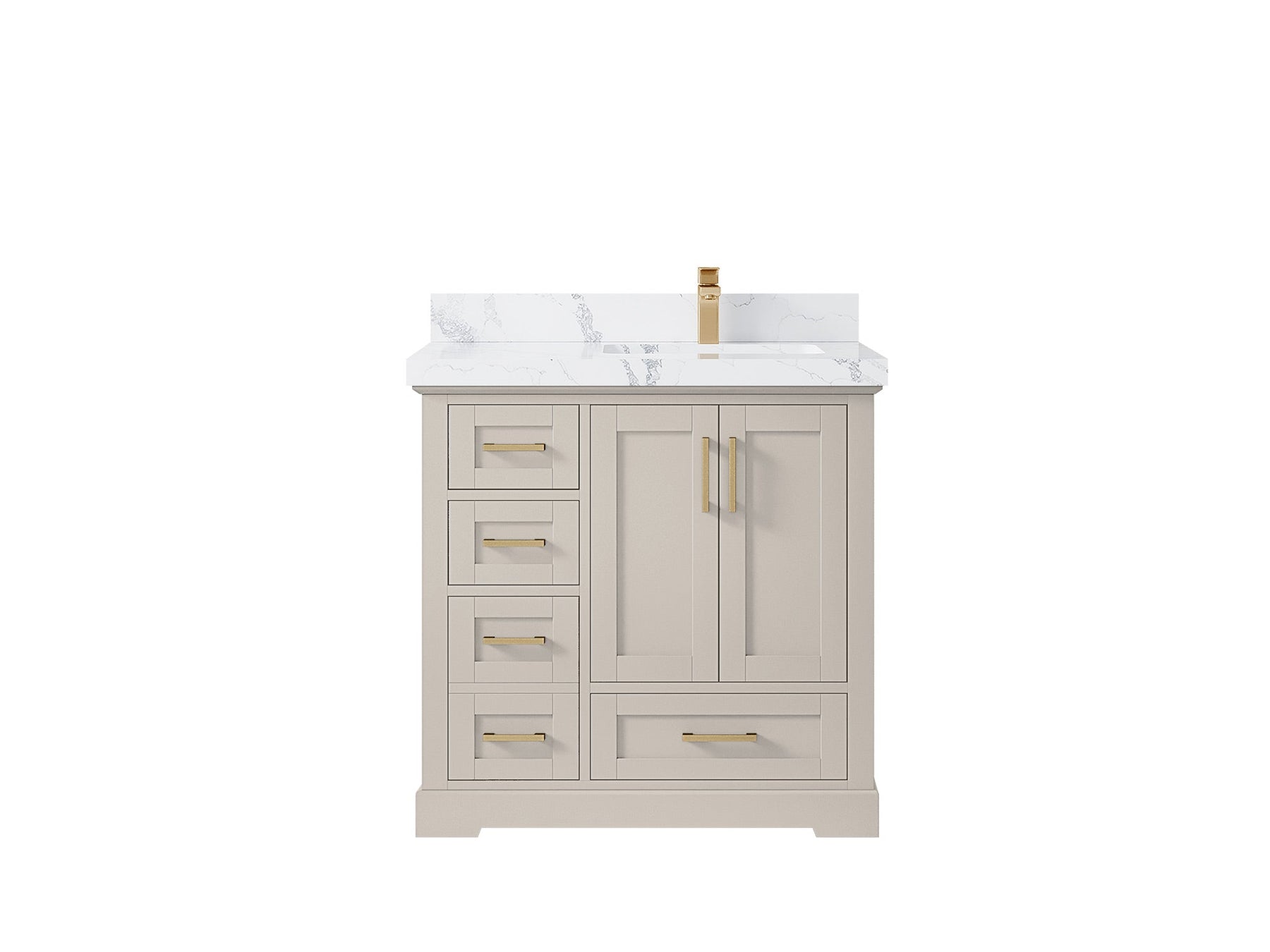 Boston 36 in. W x 22 in. D Single Sink Bathroom Vanity in Fine Grain with 1.5 in Double Cove Edge Calacatta Laza Quartz Countertop - Top View