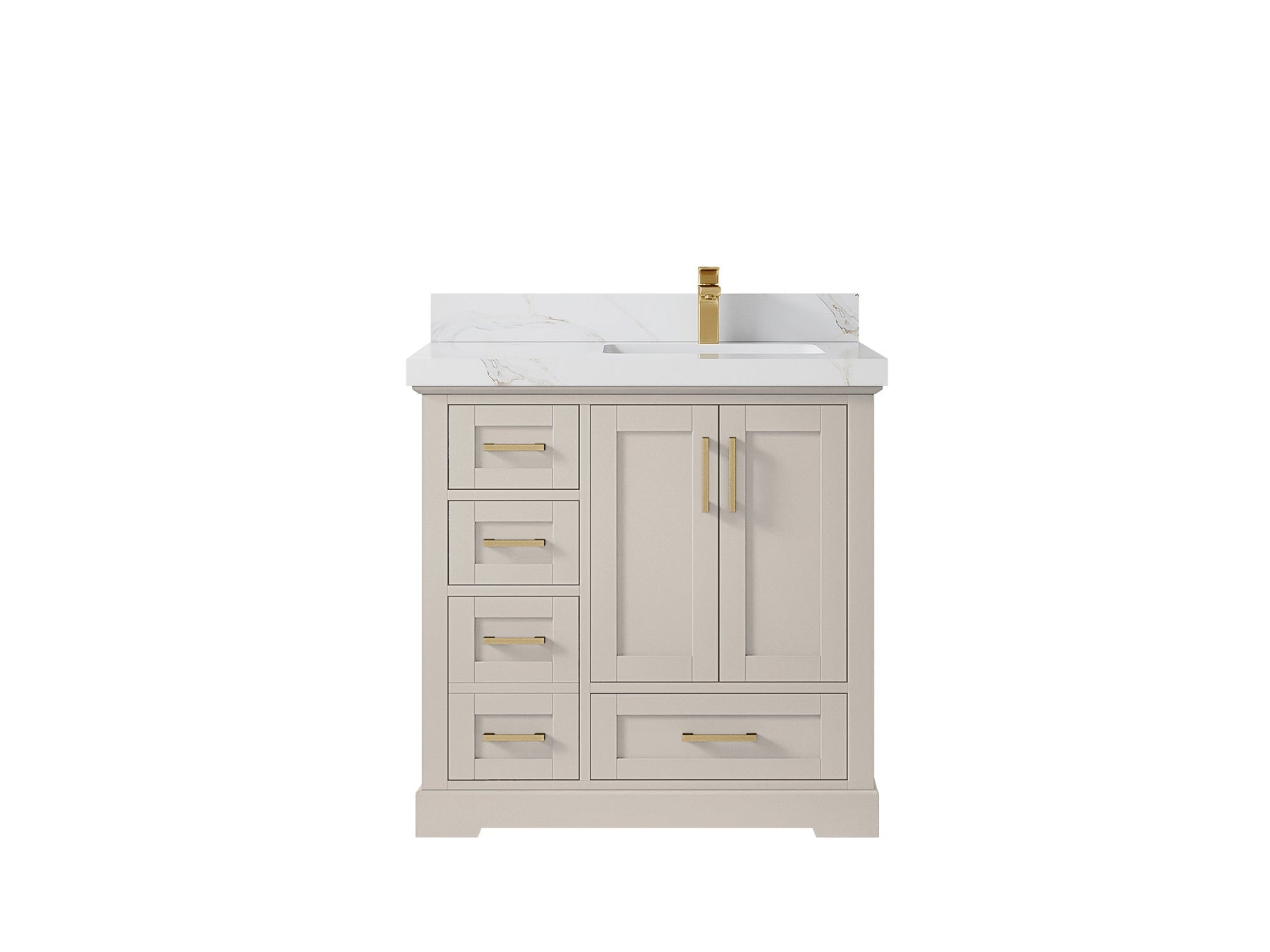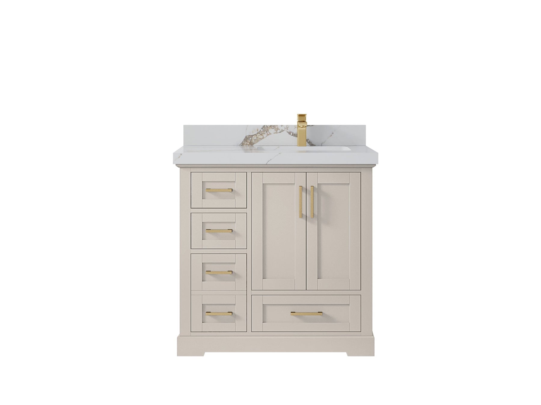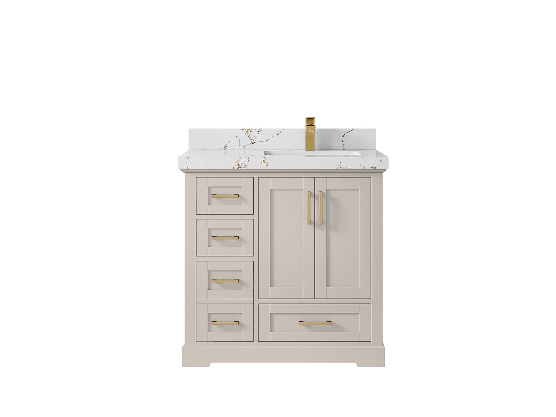 Boston 36 in. W x 22 in. D Single Sink Bathroom Vanity in Fine Grain with 1.5 in Double Cove Edge Calacatta Laza Quartz Countertop - Top View