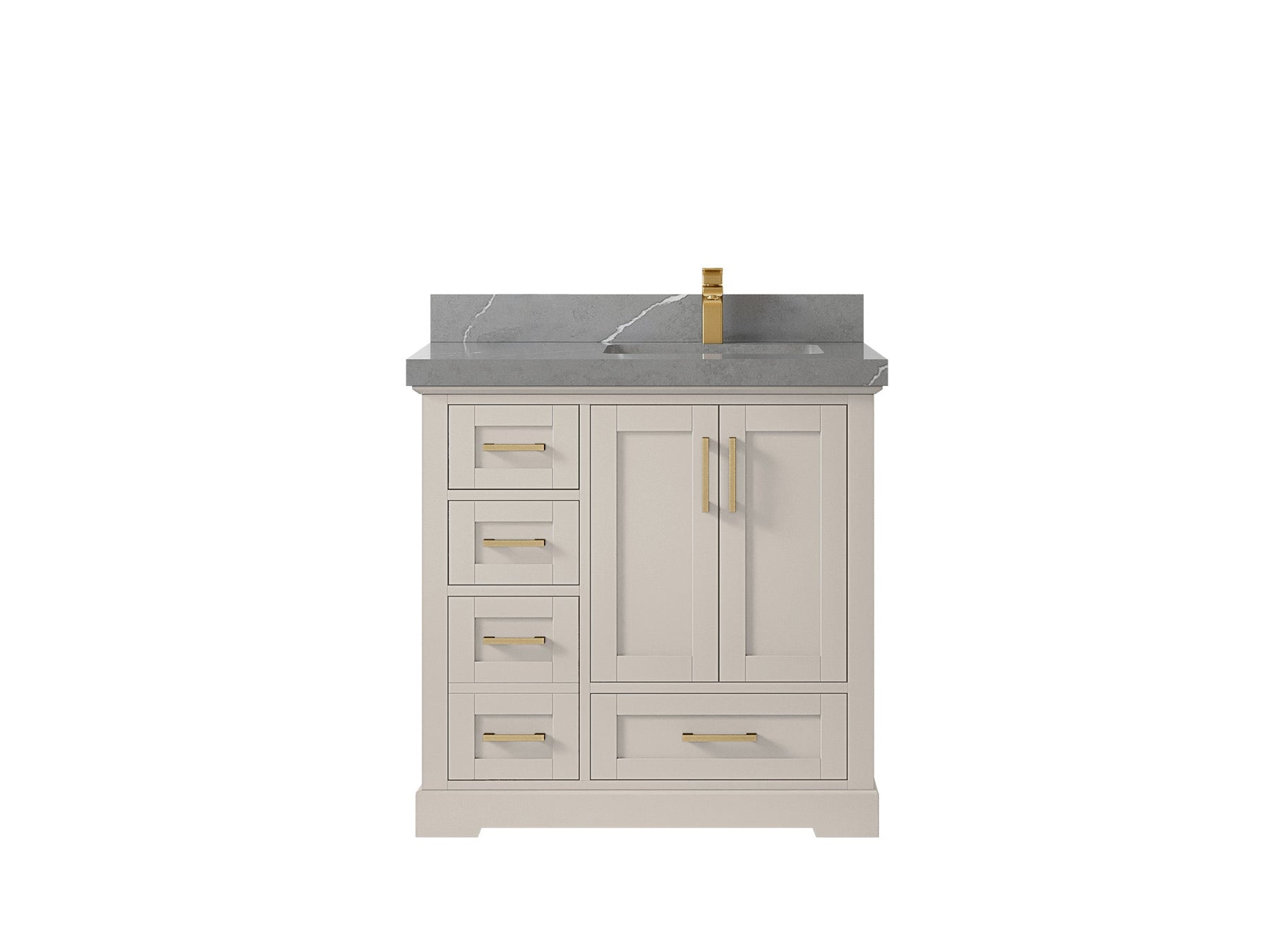 Boston 36 in. W x 22 in. D Right Offset Sink Bathroom Vanity | Fine Grain