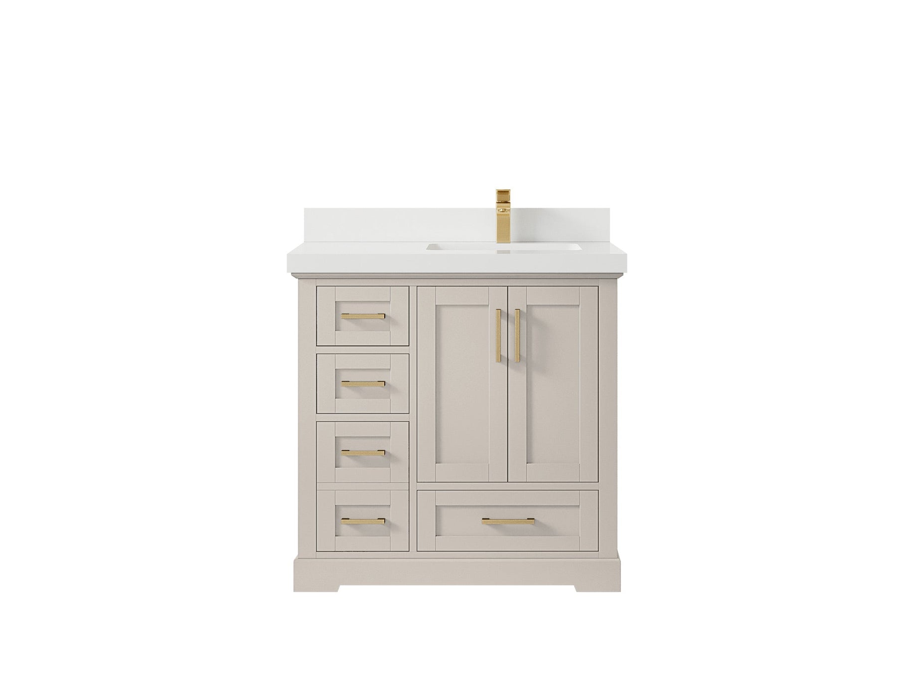 Boston 36 in. W x 22 in. D Single Sink Bathroom Vanity in Fine Grain with 1.5 in Double Cove Edge White Quartz Countertop - Top View