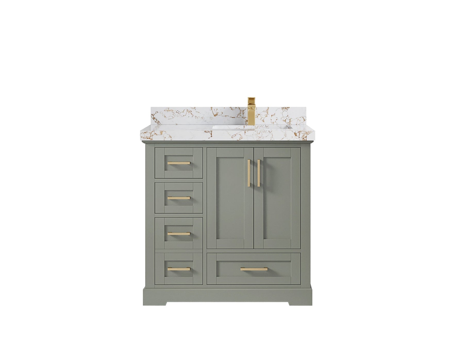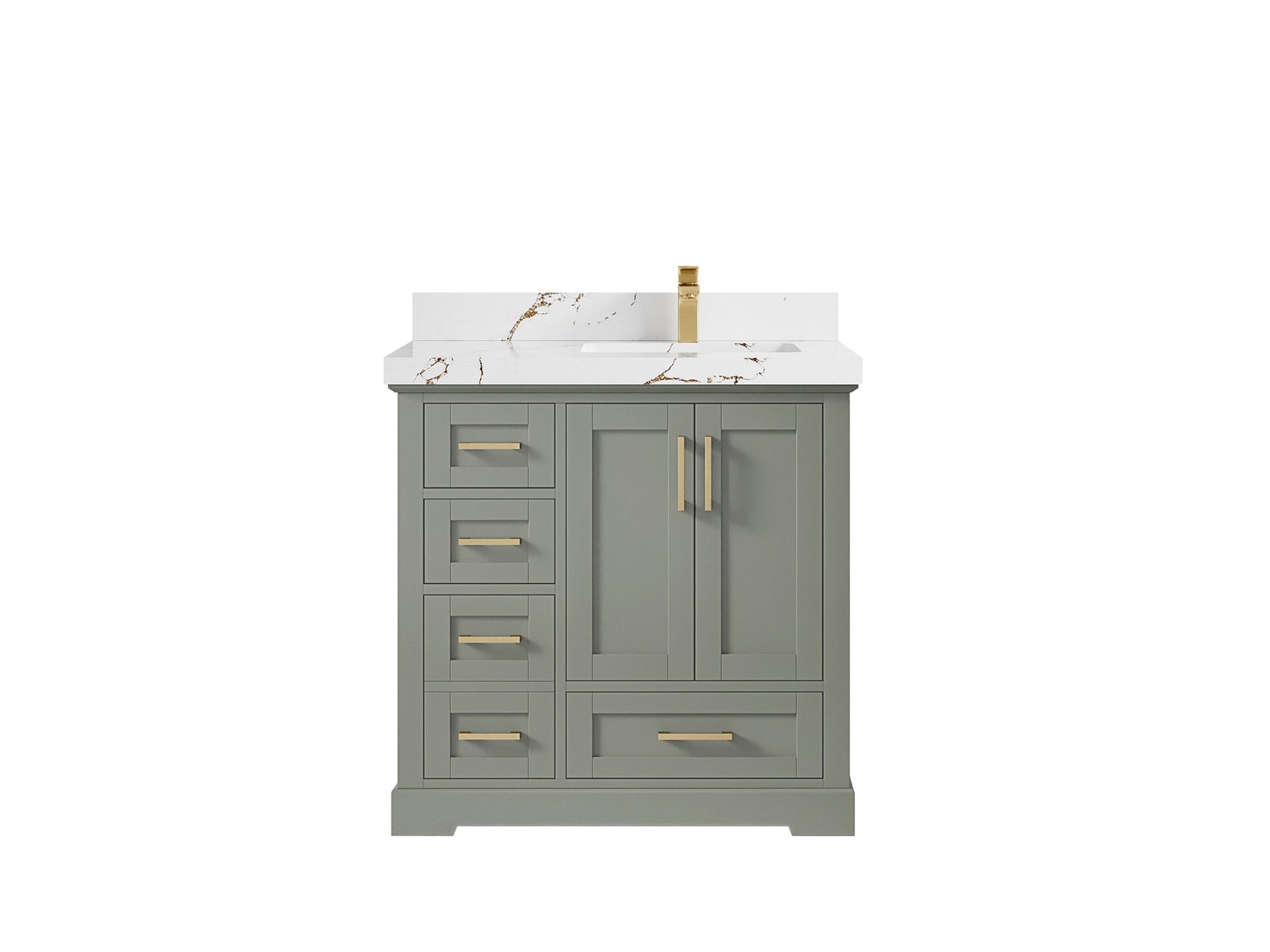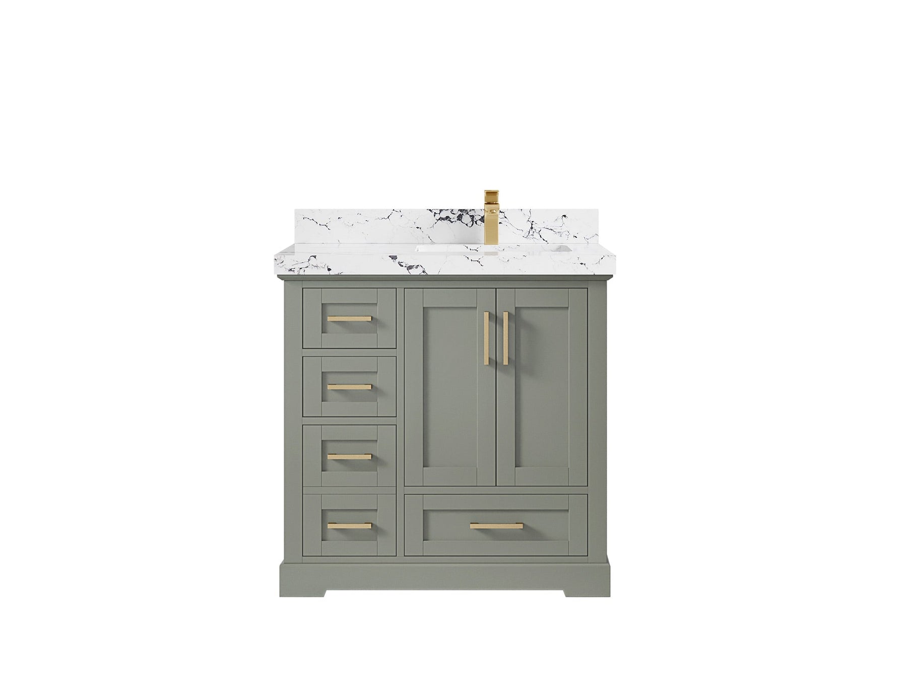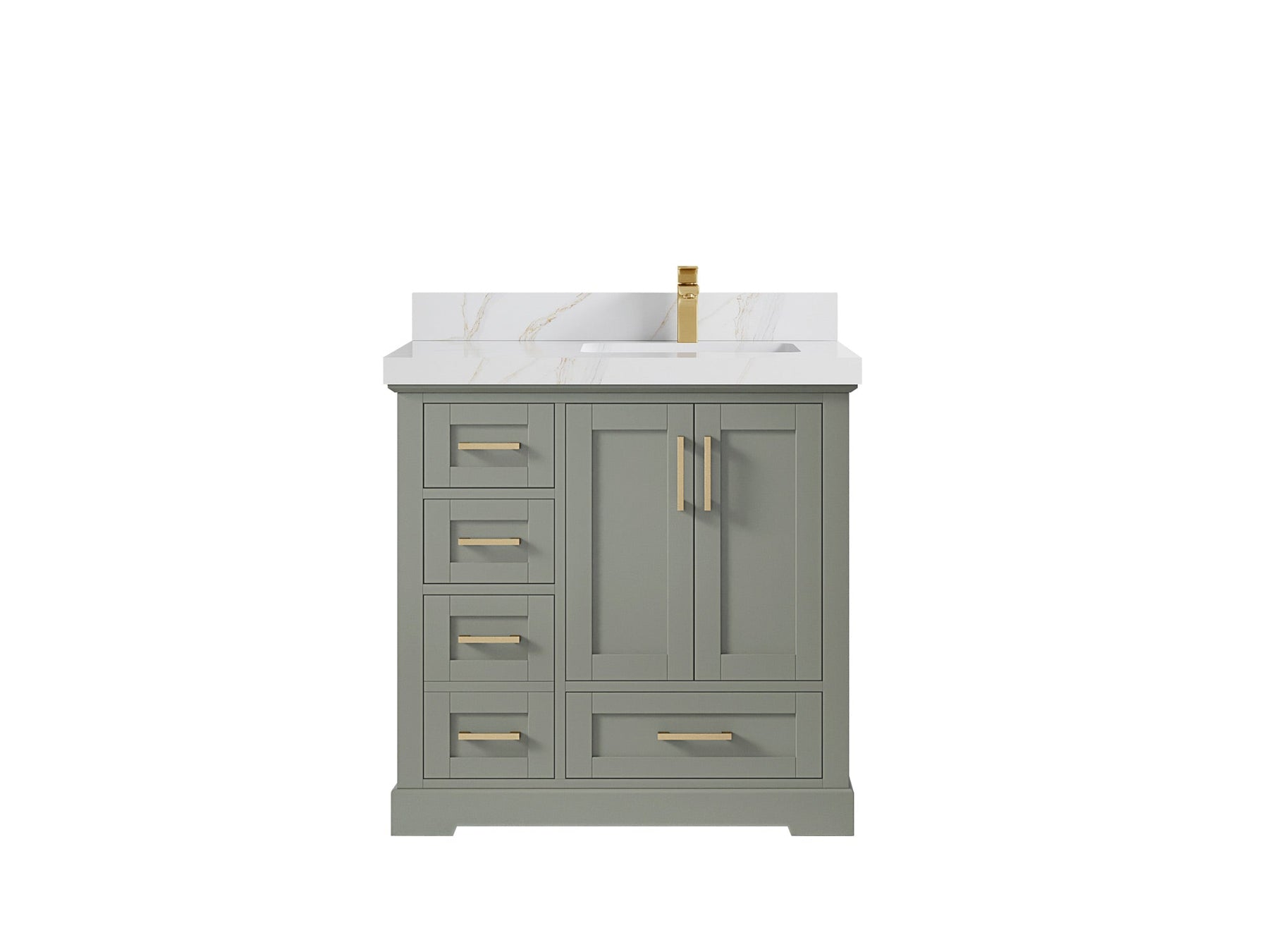 Boston 36 in. W x 22 in. D Single Sink Bathroom Vanity in Evergreen with 2 in Calacatta Sienna Quartz Countertop - Top View