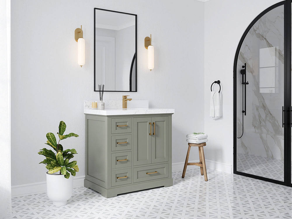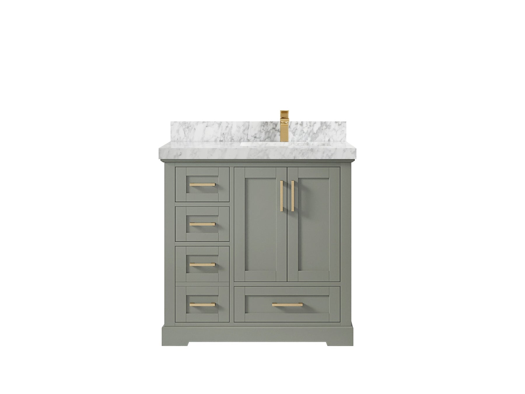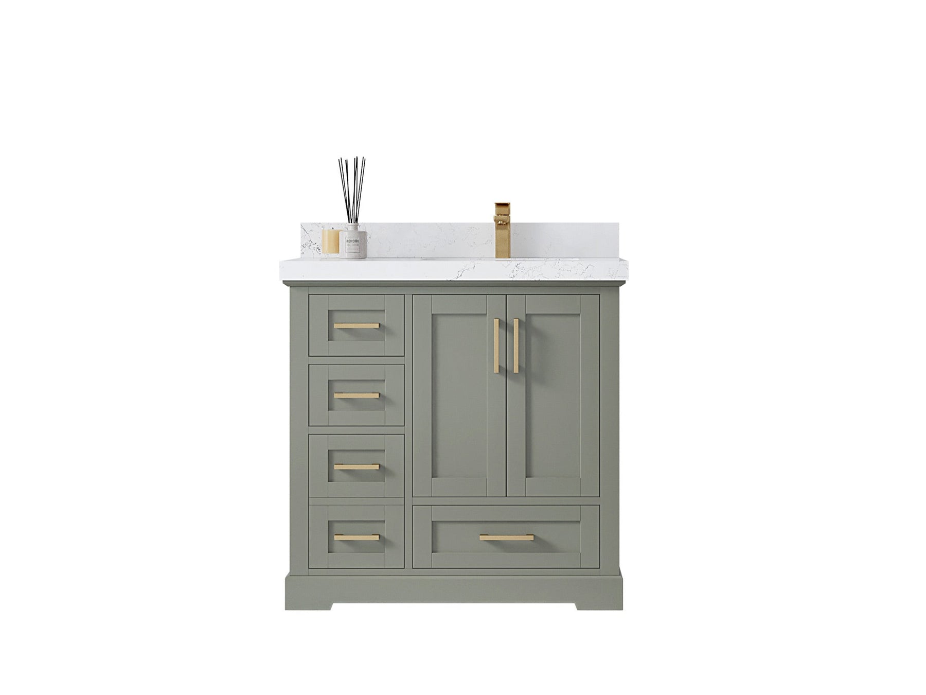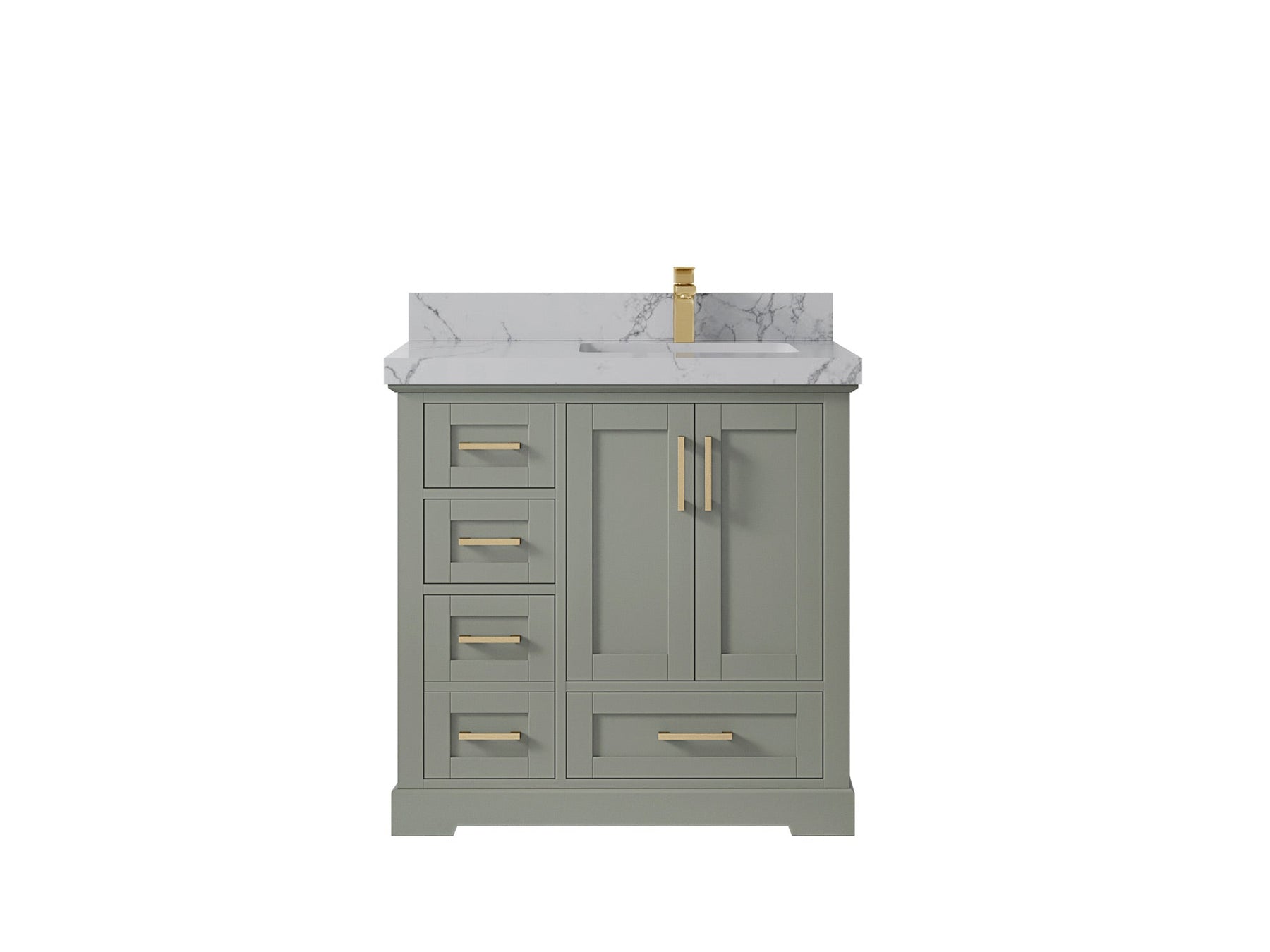 Boston 36 in. W x 22 in. D Single Sink Bathroom Vanity in Evergreen with 2 in Calacatta Sienna Quartz Countertop - Top View