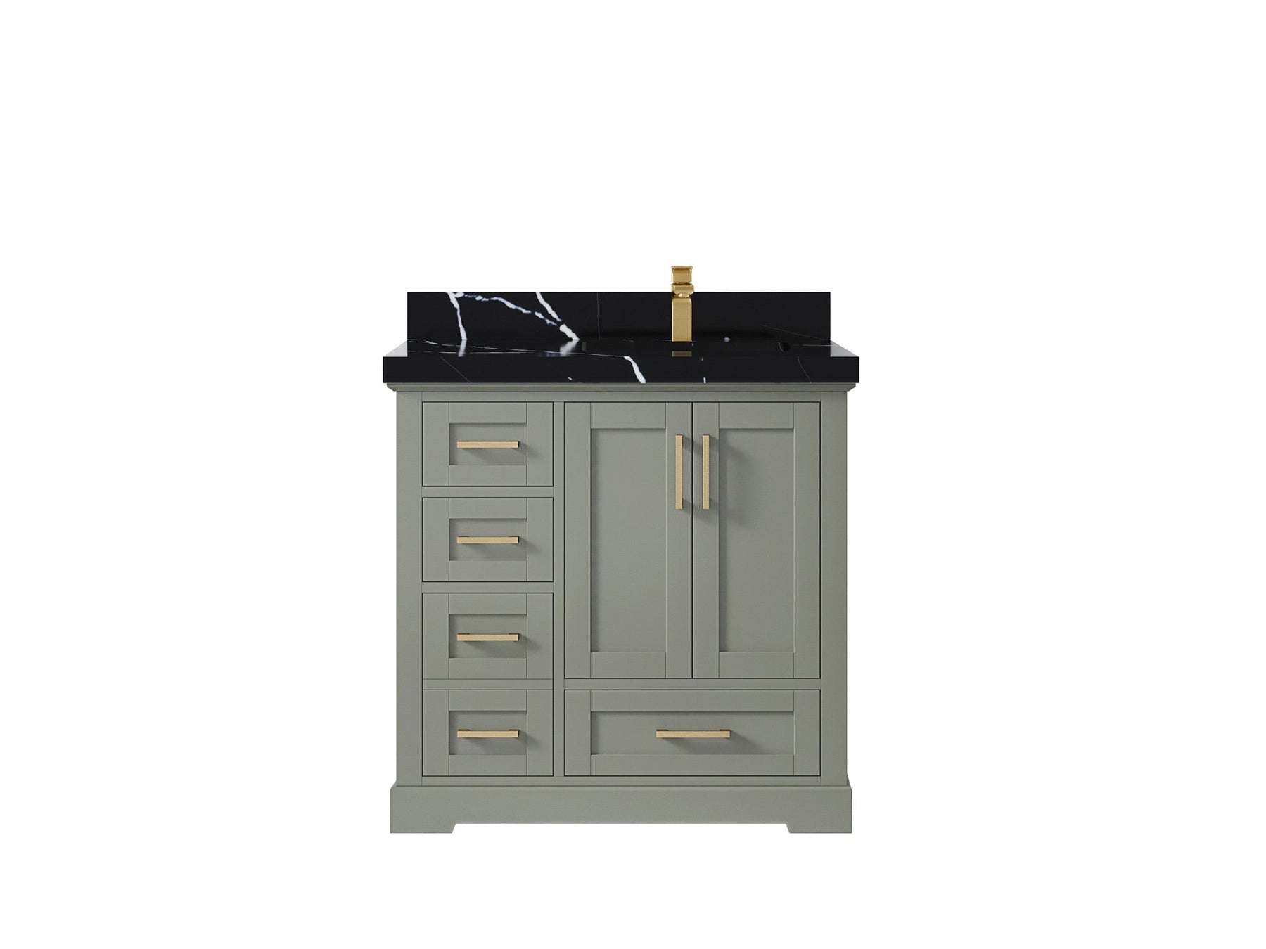 Boston 36 in. W x 22 in. D Single Sink Bathroom Vanity in Evergreen with 2 in Calacatta Black Quartz Countertop - Top View
