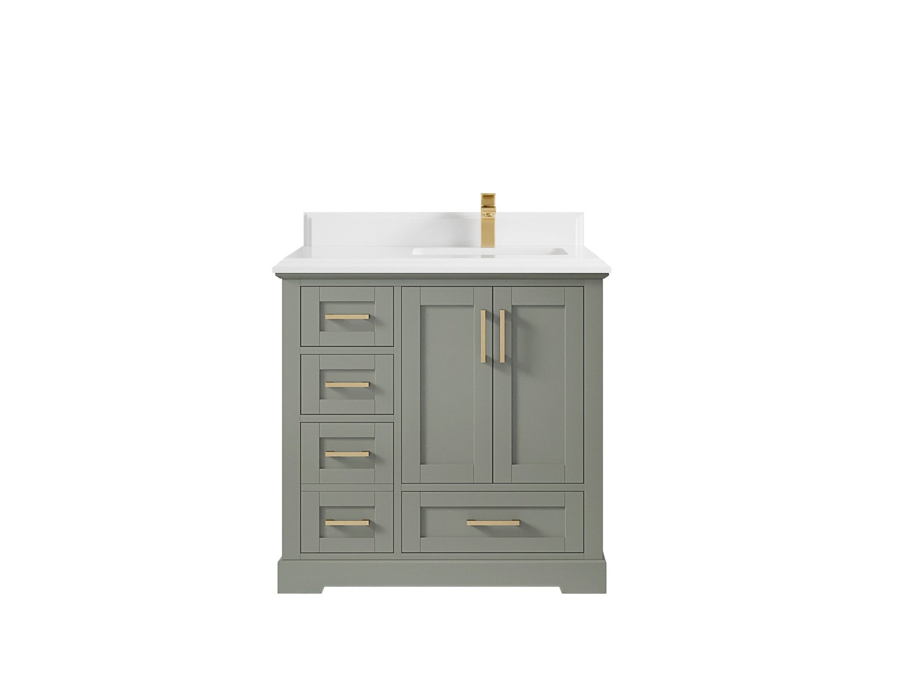 Boston 36 in. W x 22 in. D Single Sink Bathroom Vanity in Evergreen with 1.5 in Double Cove Edge Empira White Quartz Countertop - Top View