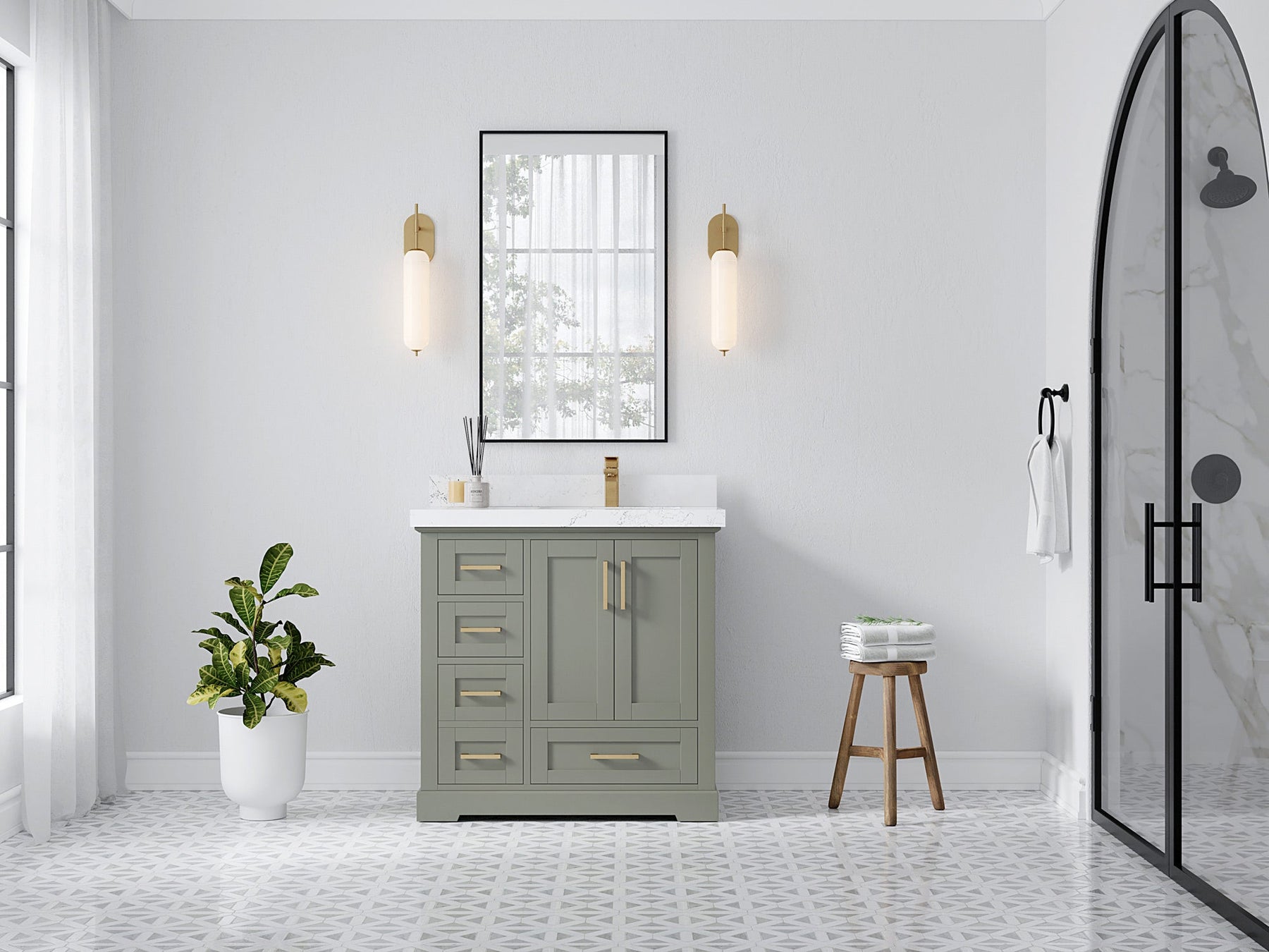 Boston 36 in. W x 22 in. D Right Offset Sink Bathroom Vanity | Evergreen