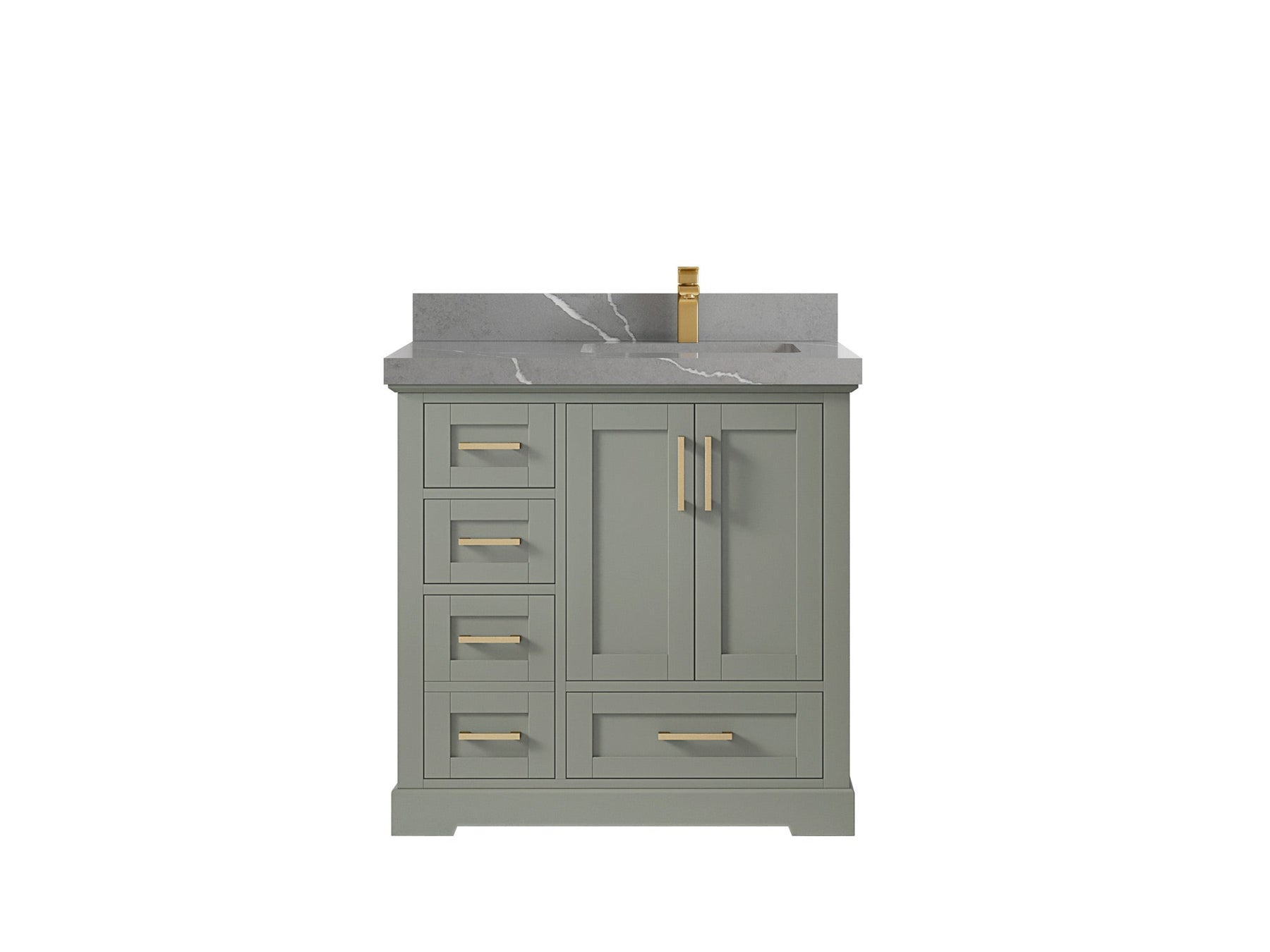 Boston 36 in. W x 22 in. D Single Sink Bathroom Vanity in Evergreen with 2 in Piatra Gray Quartz Countertop - Top View