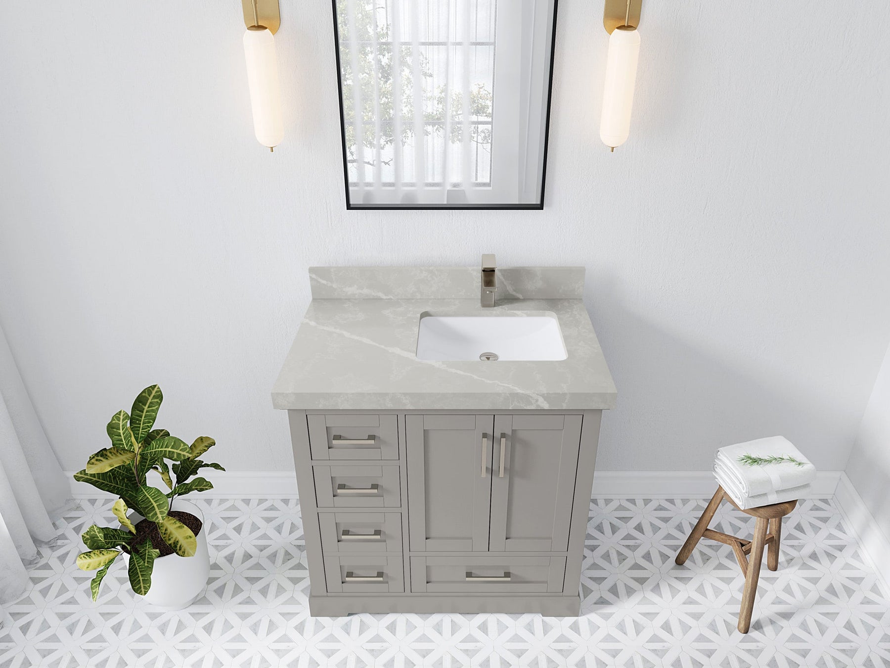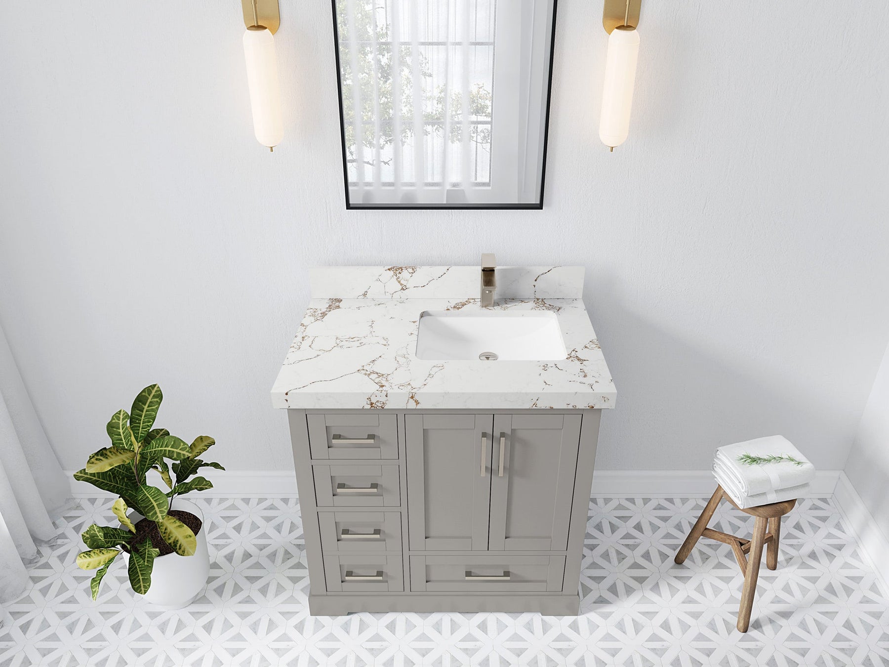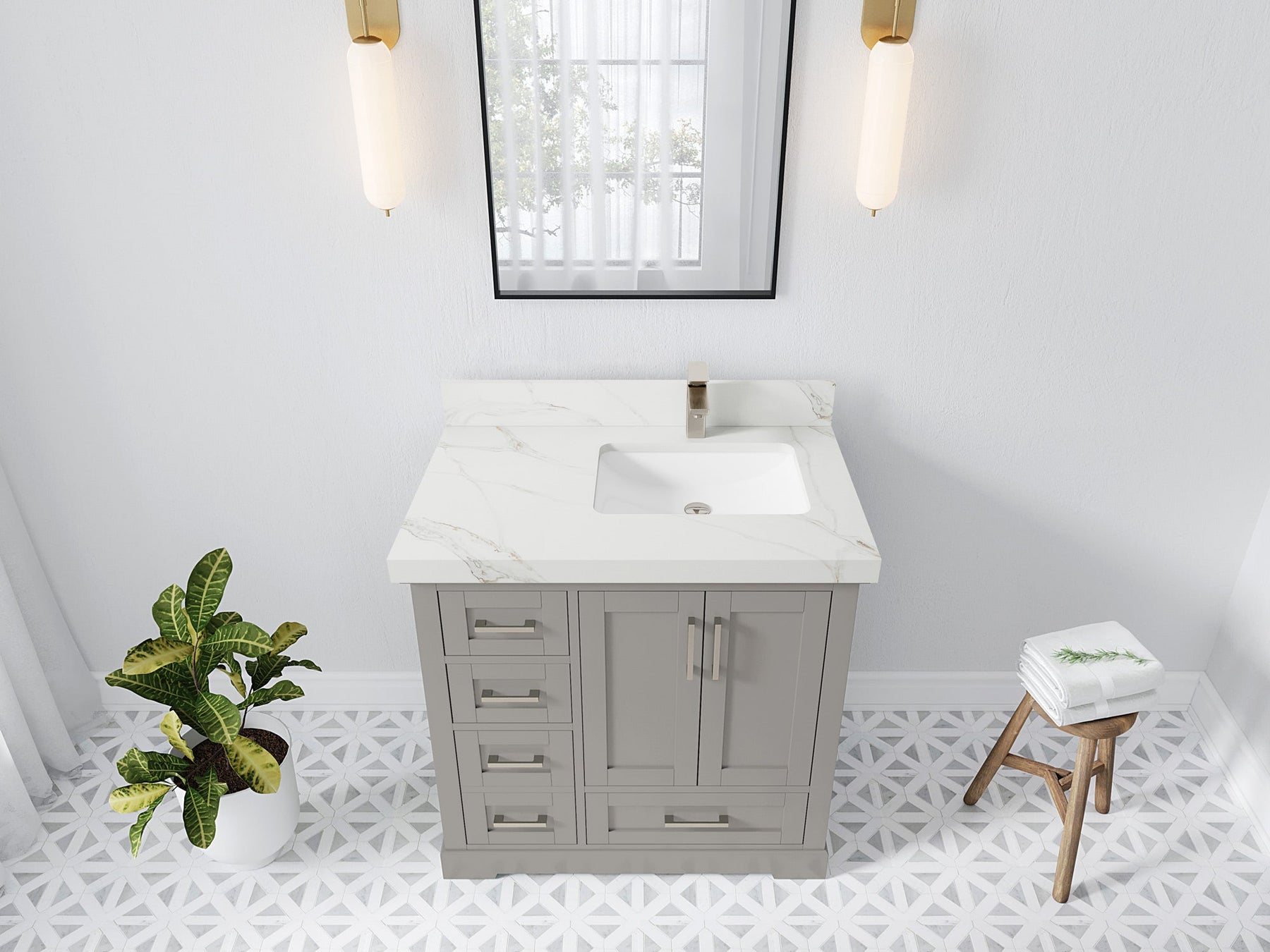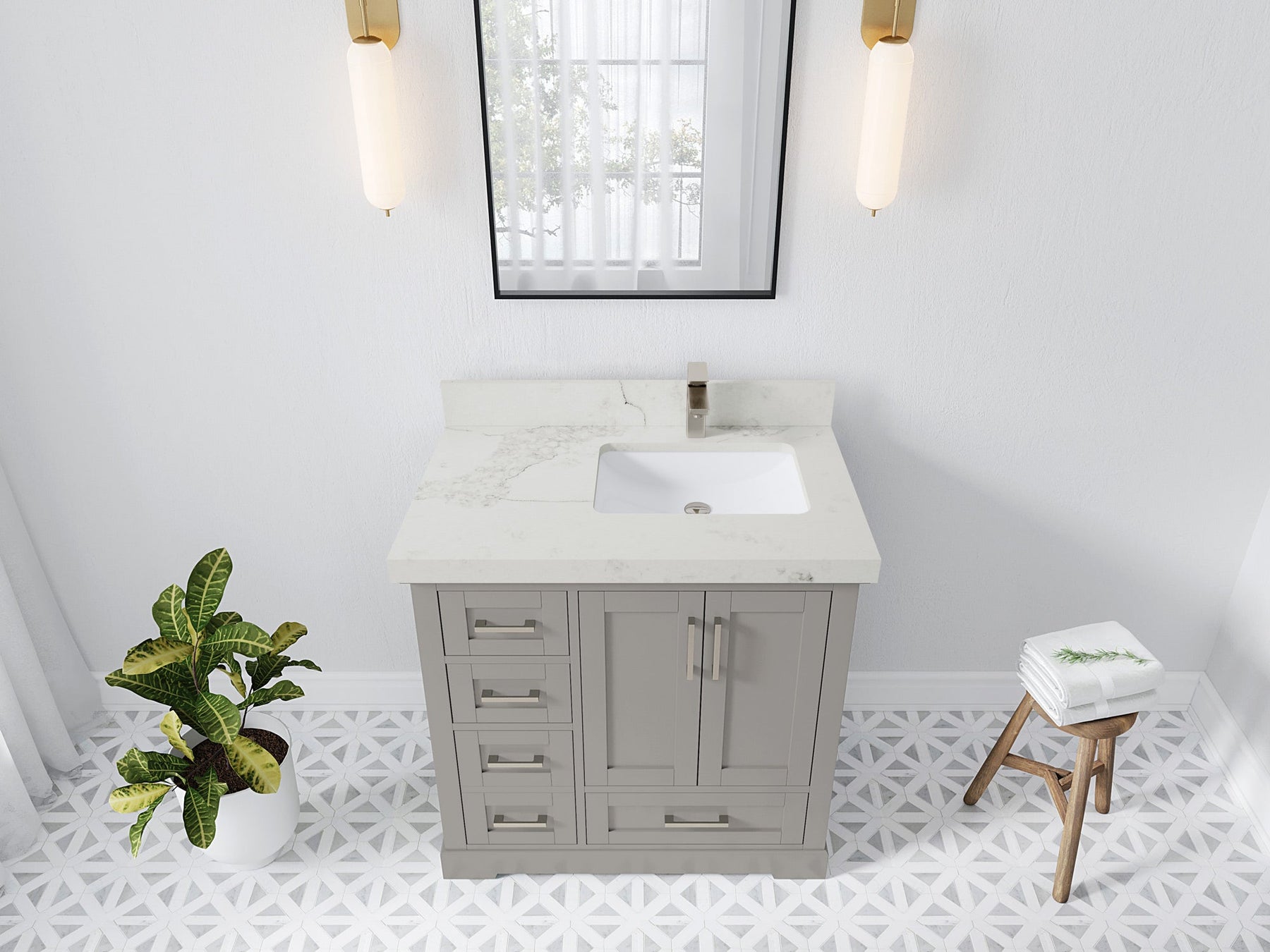 Bathroom Vanity - Frosty Carrara Quartz Countertop