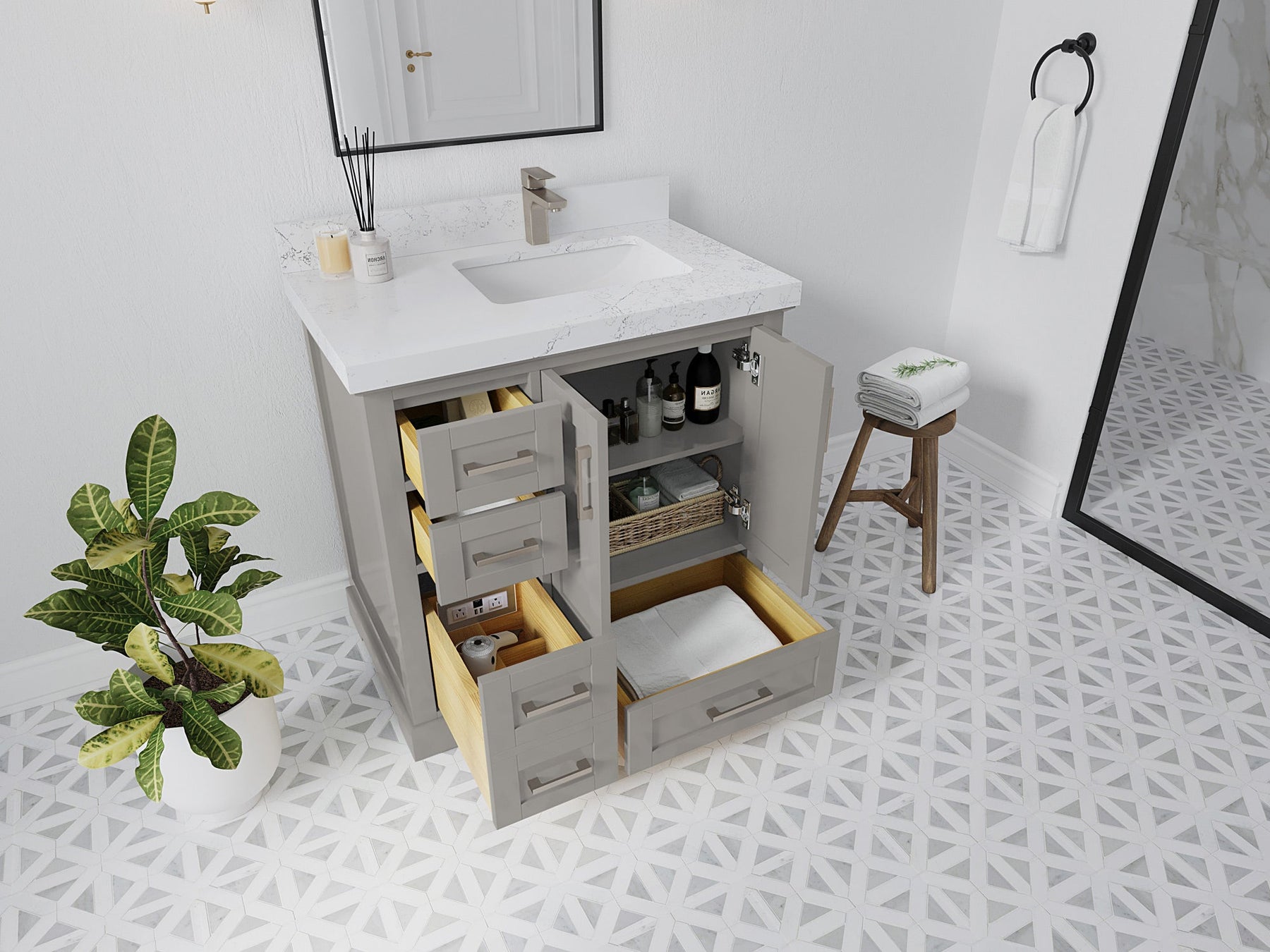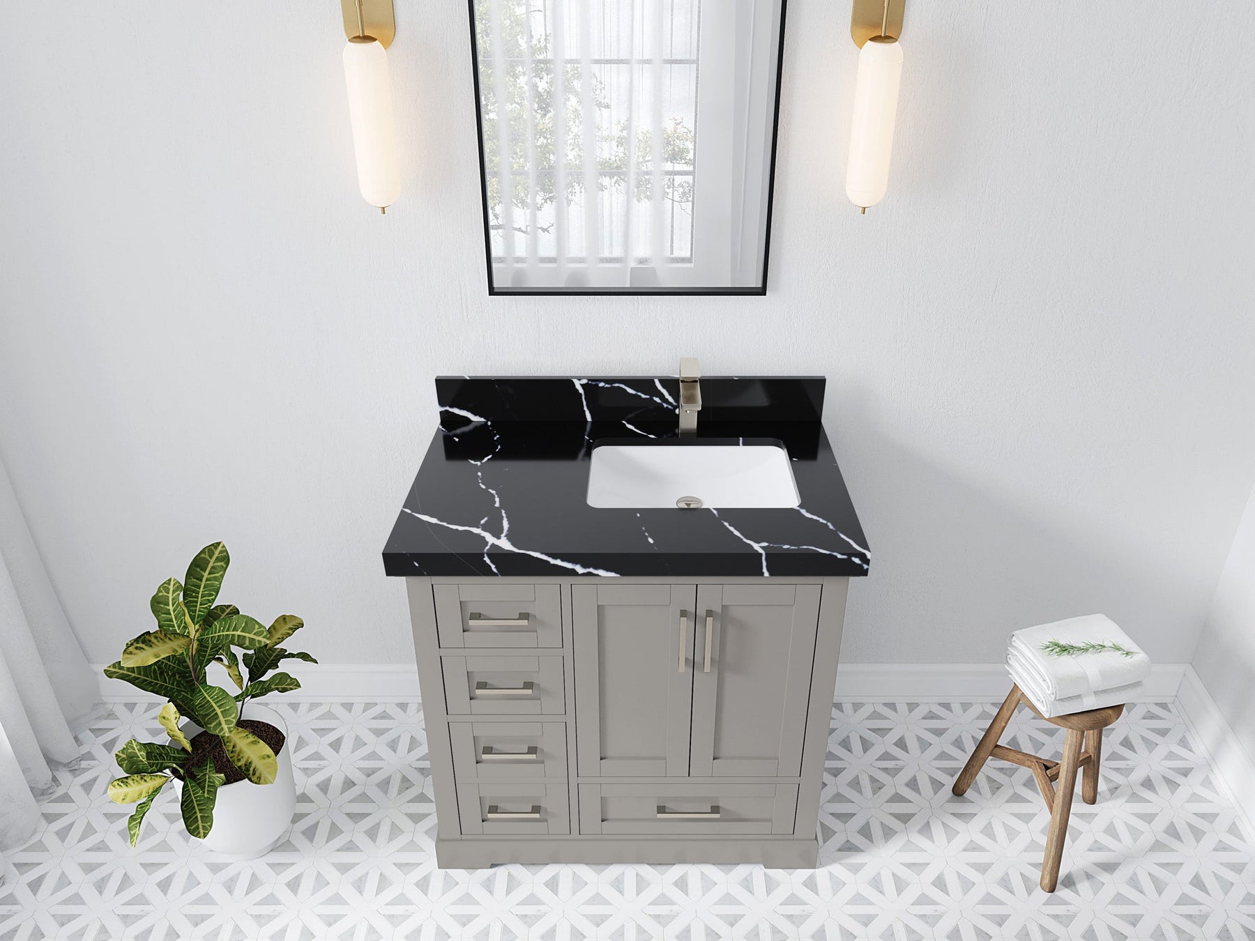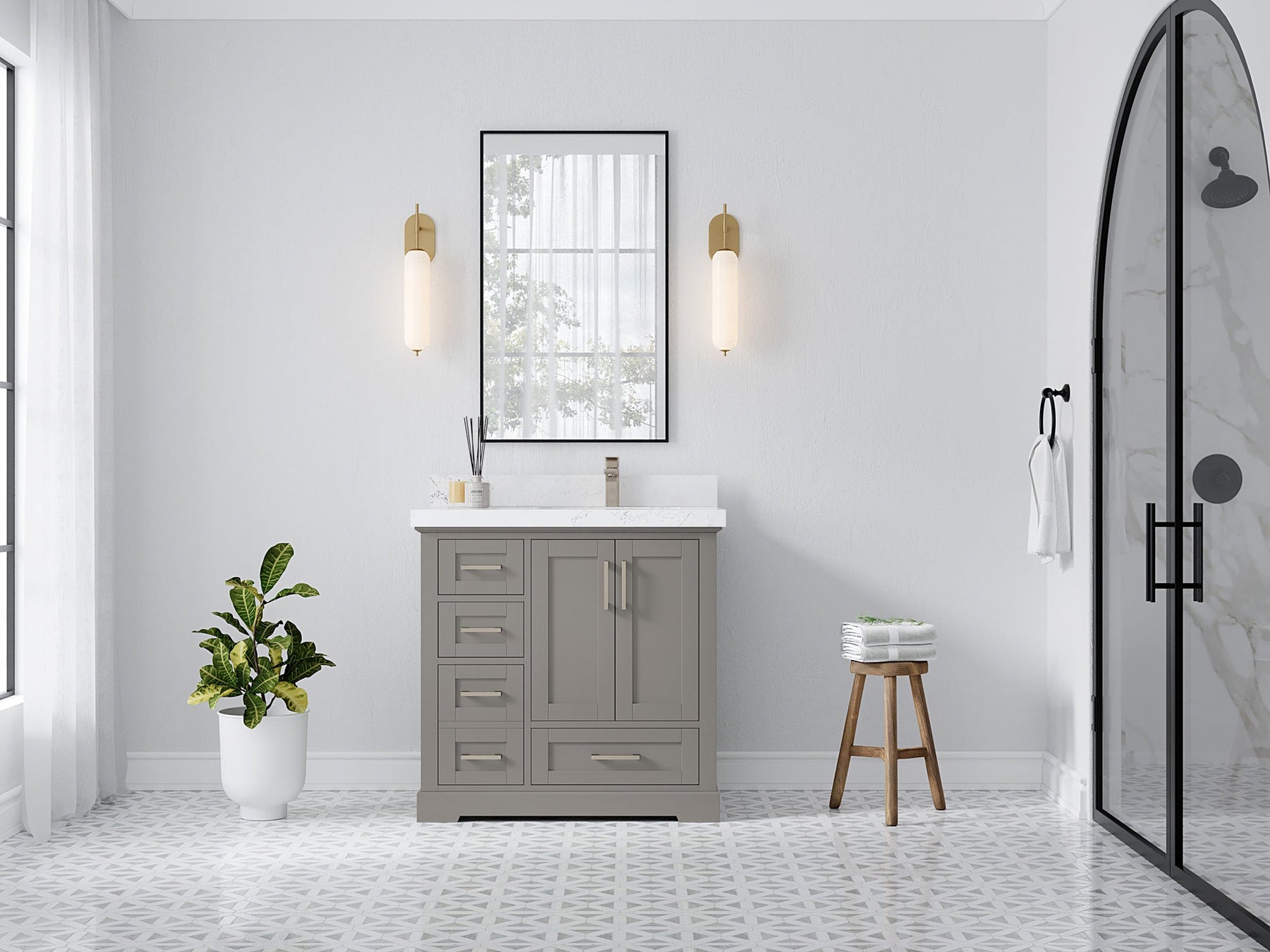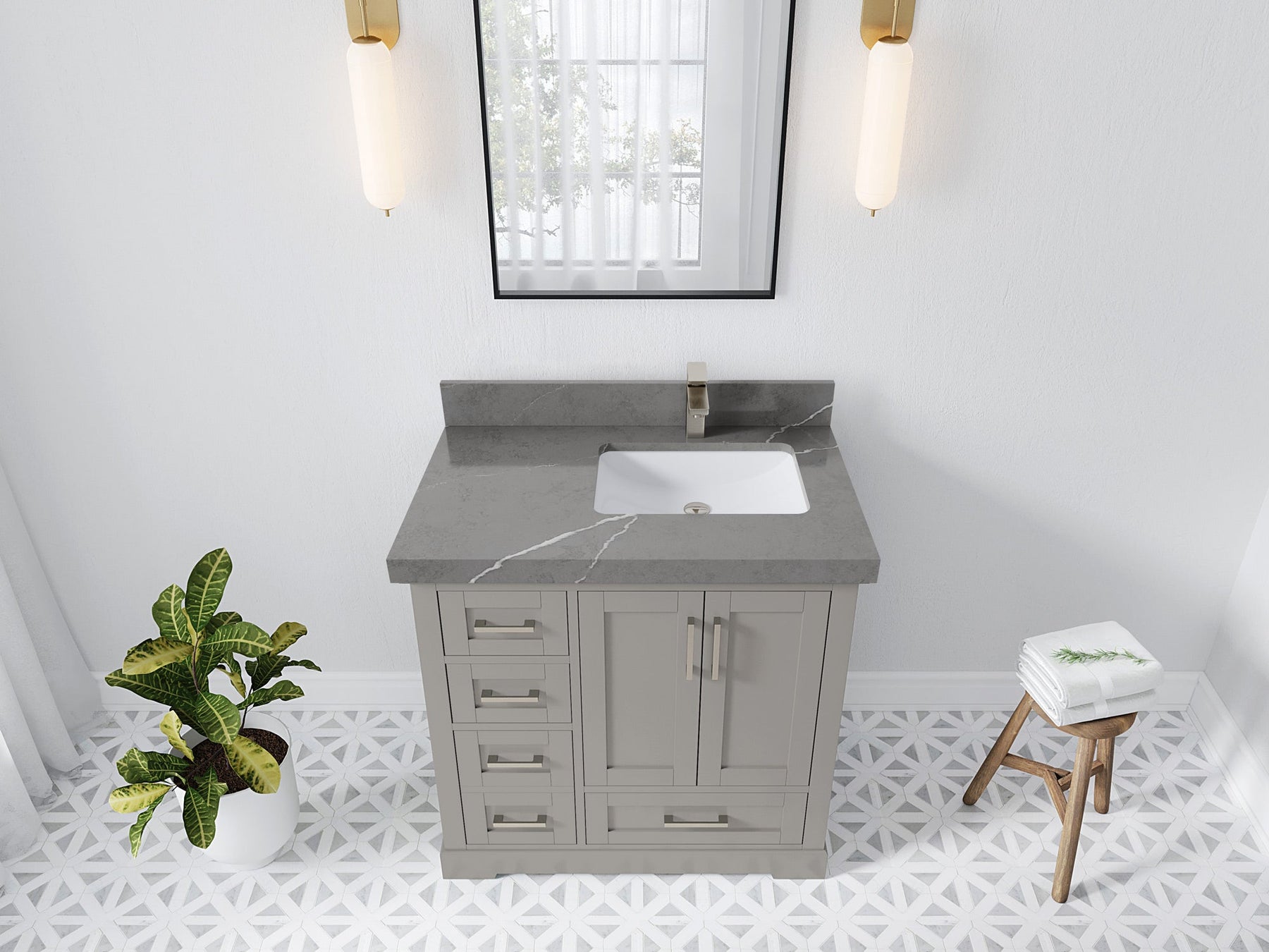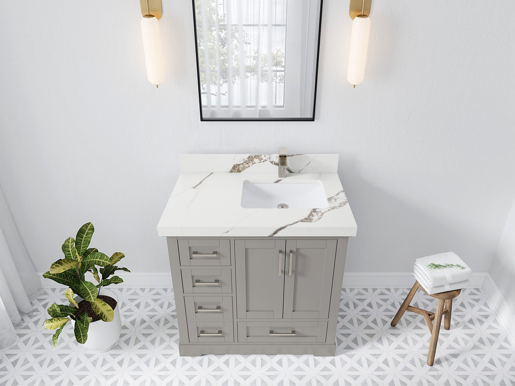 Bathroom Vanity - Frosty Carrara Quartz Countertop
