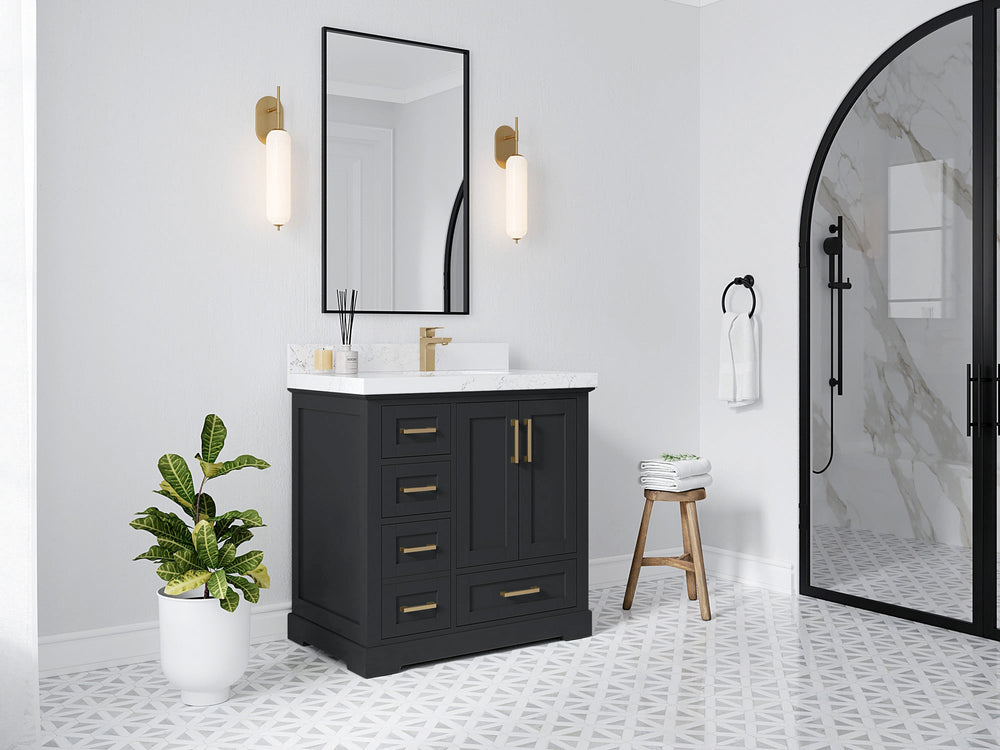 Vanity Countertops options: For Calacatta Laza Quartz, Empira White Quartz, Pure White Quartz, Palissandro Quartz we have 2 options Straight-Mitered Edge and Double Cove Edge; For Calacatta Nuvo Quartz, Carrara Marble, Carrara Quartz, Piatra Gray Quartz, Pearl Light Gray Quartz, Calacatta Black Quartz, Calacatta Gold Quartz, Calacatta Sienna Quartz, Calacatta Poanazzo Quartz, Venatino Quartz, Viola Brown Quartz, Viola Gold Quartz, Viola Night Quartz, Viola Biagio Quartz, Berkshire Brass Quartz, Frosty Carrara Quartz, Onyx Quartz we have Straight - Mitered Edge option.