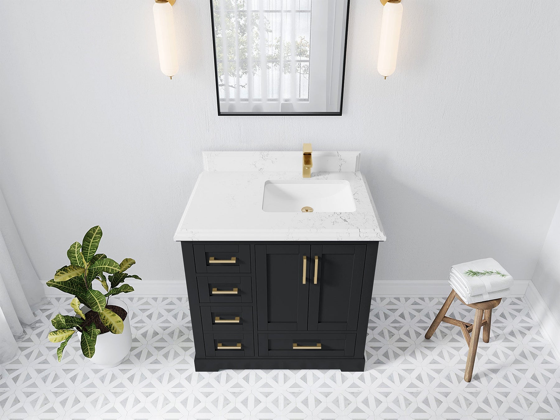 Faucet Hole(S): Comes with Single Faucet, 8 (in.) Widespread Faucet, Wall mount Faucets - Only Available for White Quartz and Carrara Quartz. (PLEASE ADD THIS CONFIGURATION UNDER COUNTERTOPS SECTION )