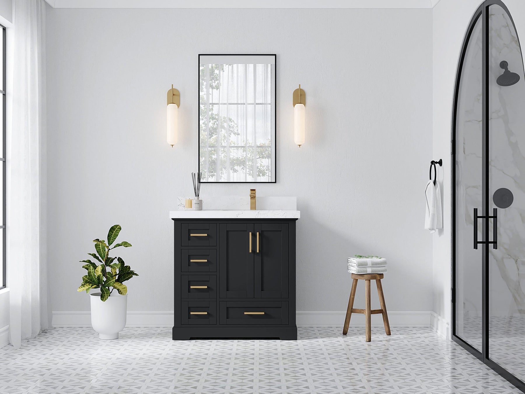 Hardware Finish: White, Elephant Skin Gray comes with Brushed Nickel Finish; Alabaster, Evergreen, Fine Grain, Navy Blue, Wrought Iron comes with Brushed Gold Finish