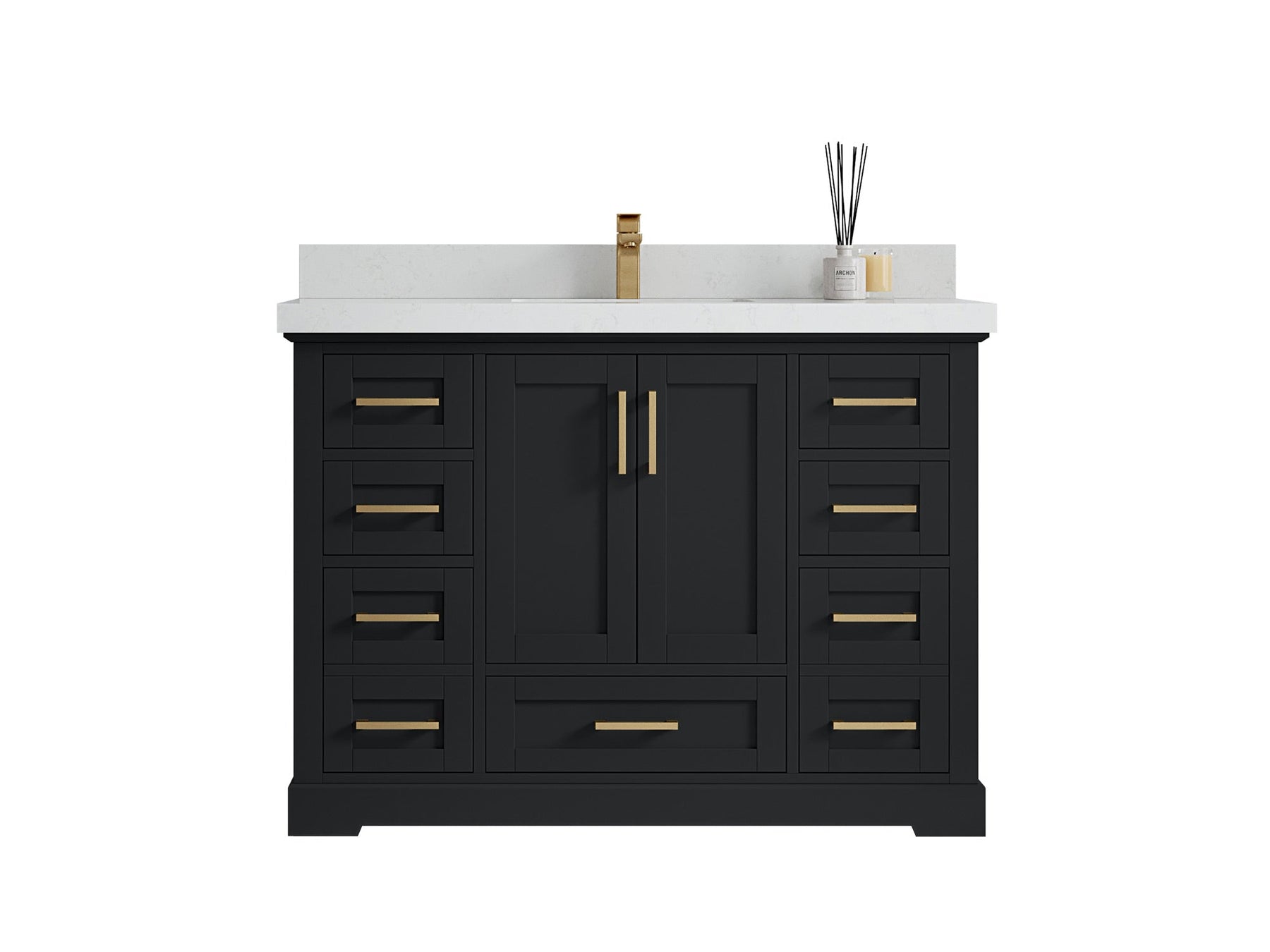 Includes cabinet base only. Countertop, sink, and faucet are not included.