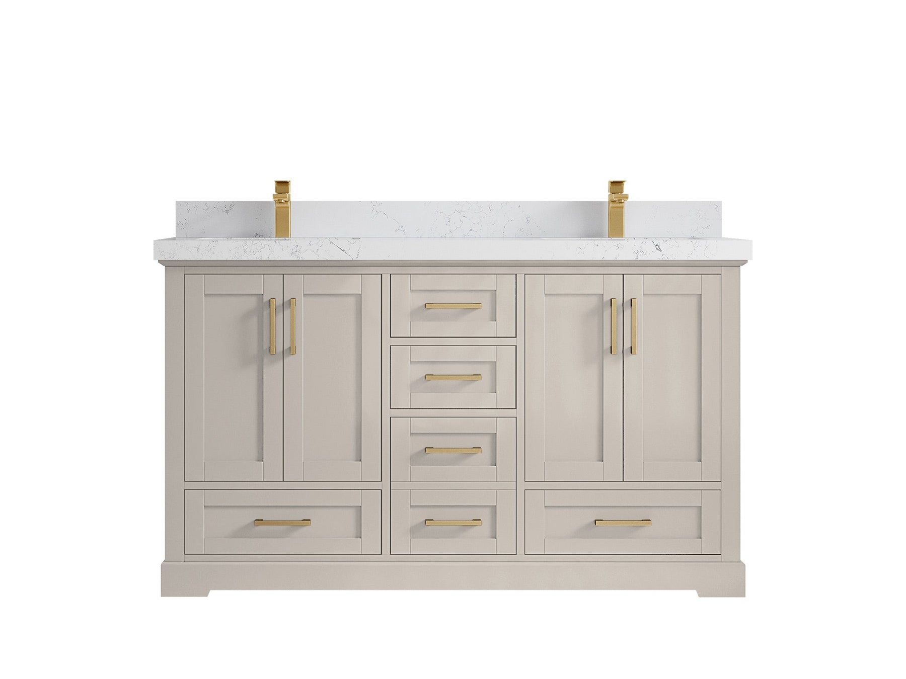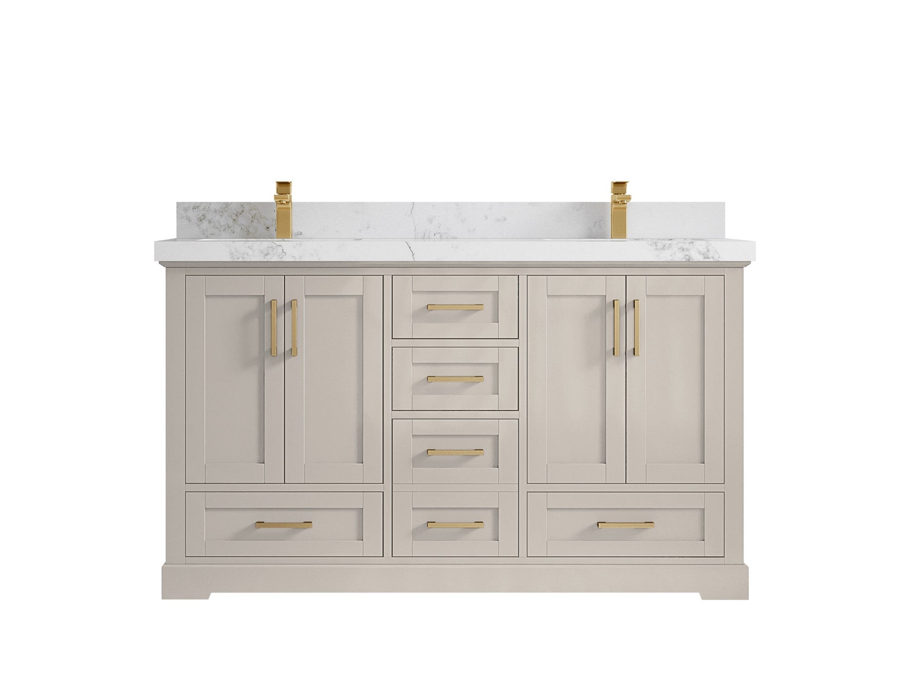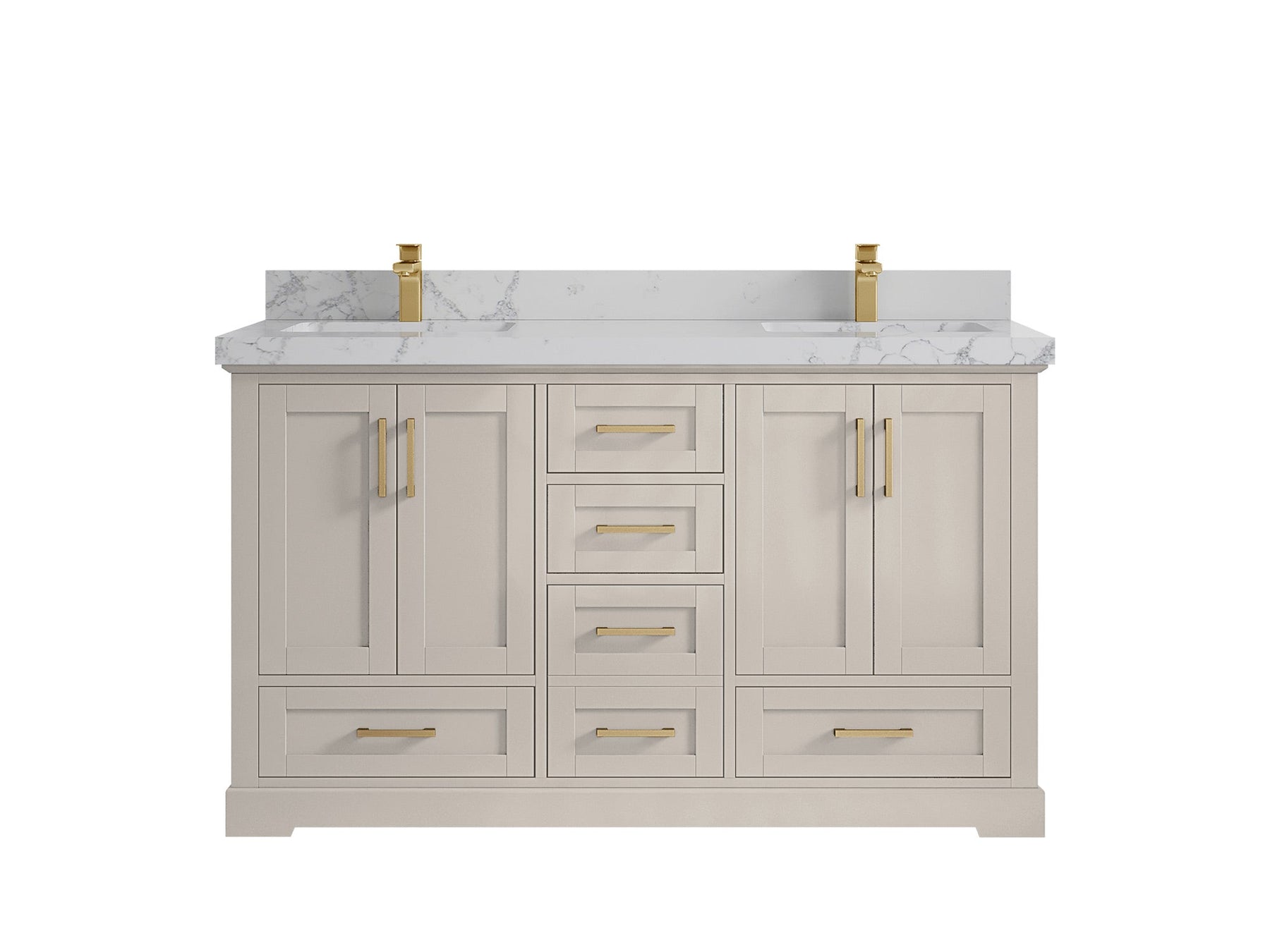 Boston 60 in. W x 22 in. D Double Sink Bathroom Vanity in Fine Grain with 2 in Calacatta Gold Quartz Countertop - Top View