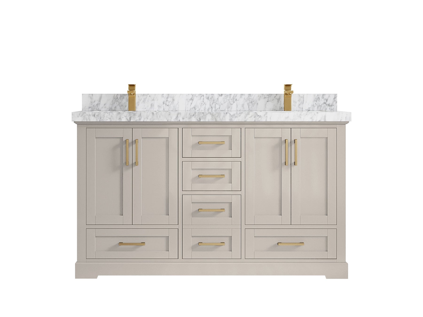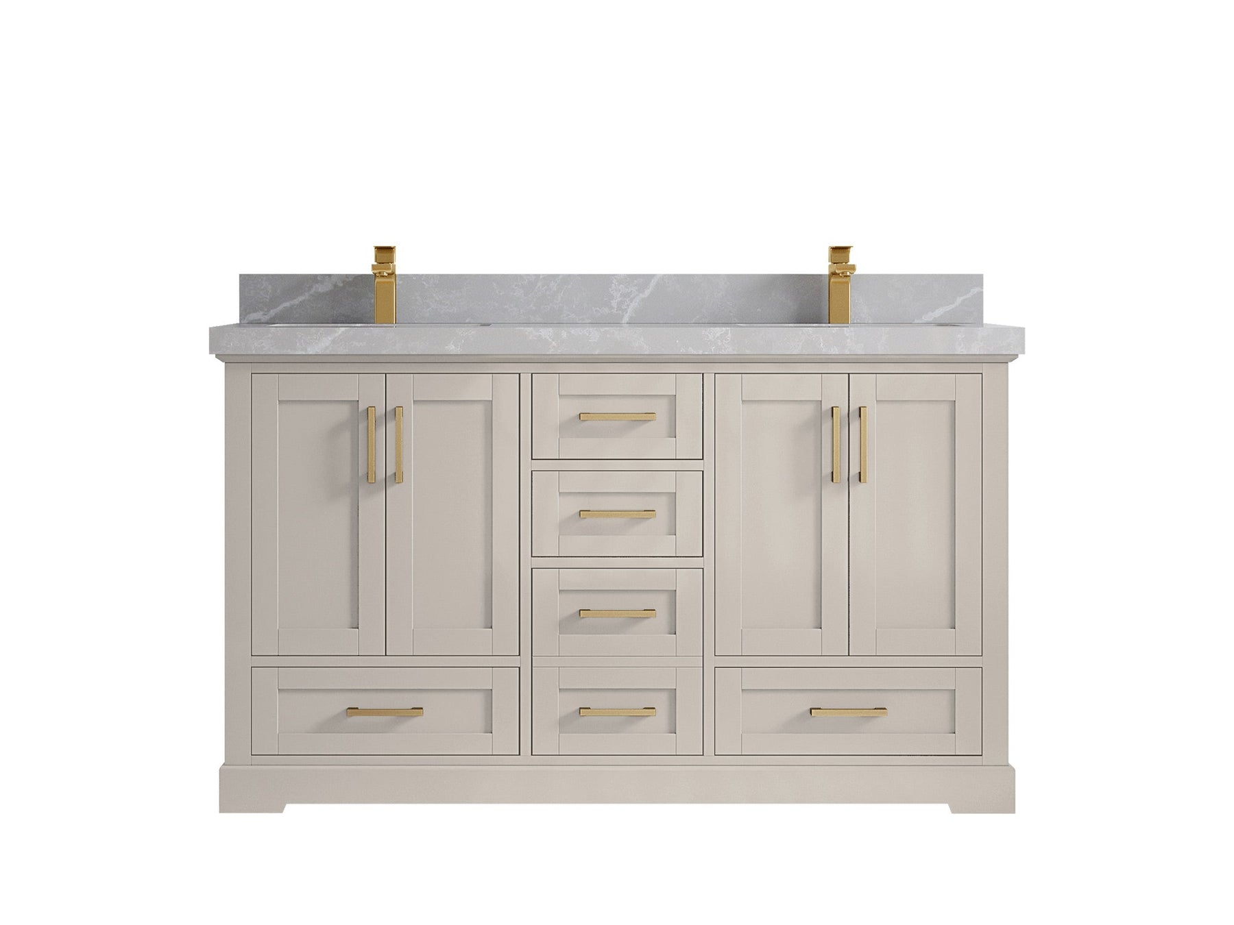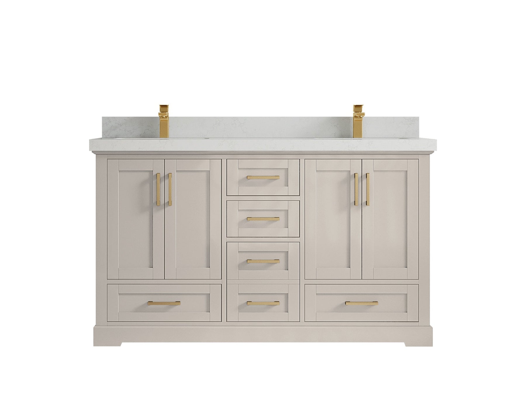 Boston 60 in. W x 22 in. D Double Sink Bathroom Vanity in Fine Grain with 2 in Calacatta Gold Quartz Countertop - Top View