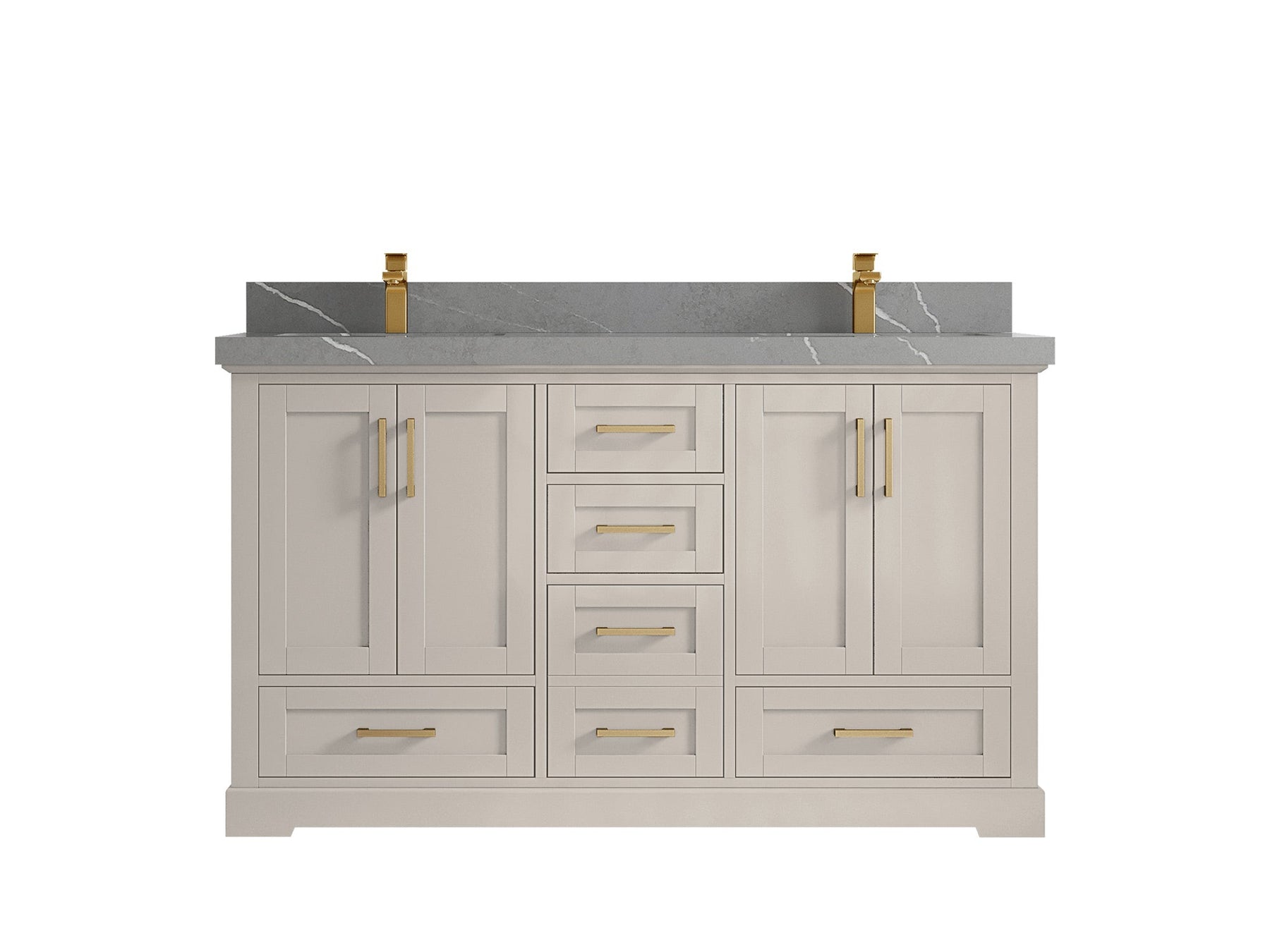 Boston 60 in. W x 22 in. D Double Sink Bathroom Vanity in Fine Grain with 1.5 in Double Cove Edge Calacatta Laza Quartz Countertop - Top View