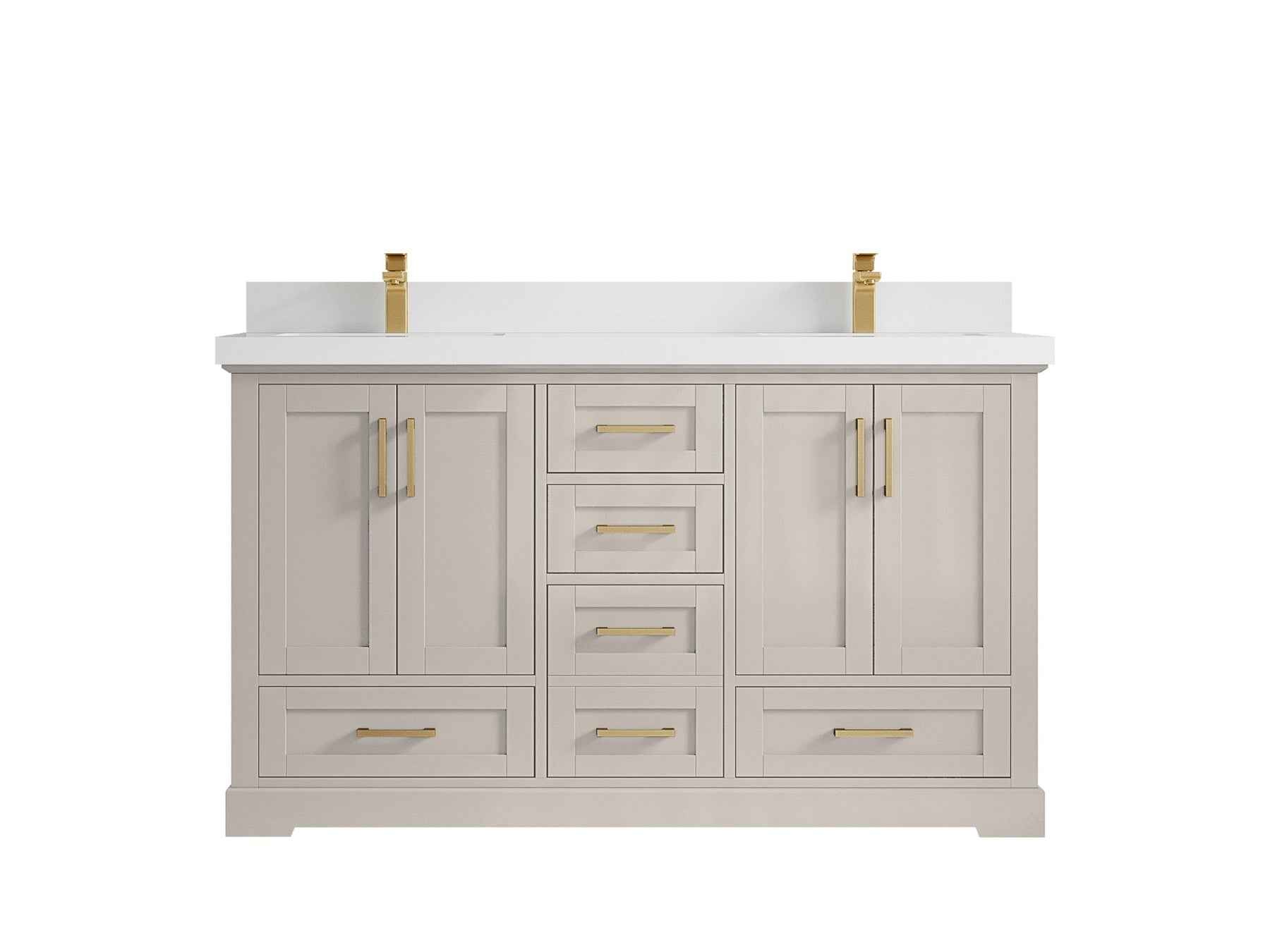 Boston 60 in. W x 22 in. D Double Sink Bathroom Vanity in Fine Grain with 1.5 in Double Cove Edge White Quartz Countertop - Top View